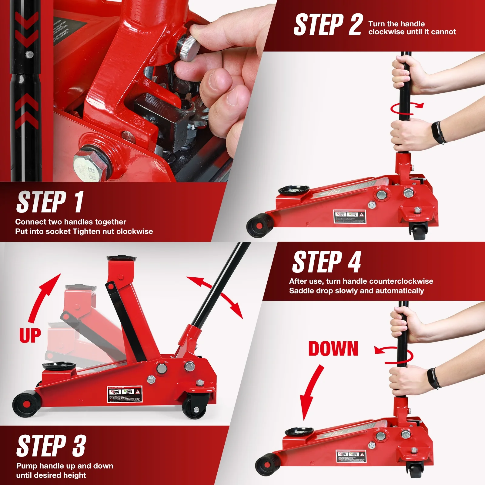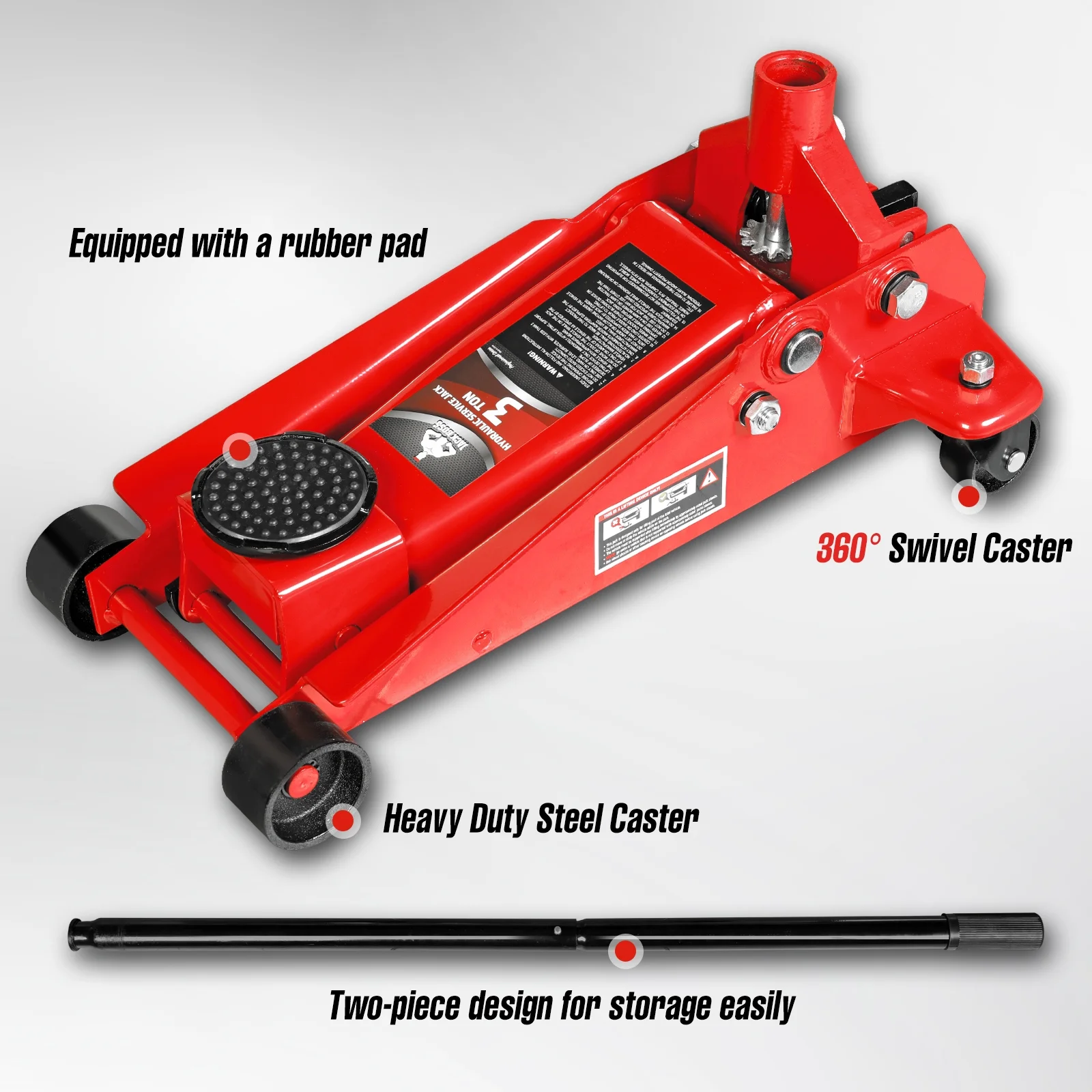 - Car jack comes with built-in internal safety valve and vent plug ensures safe operation.Padded handle provides vehicle protection when jack is lifting.