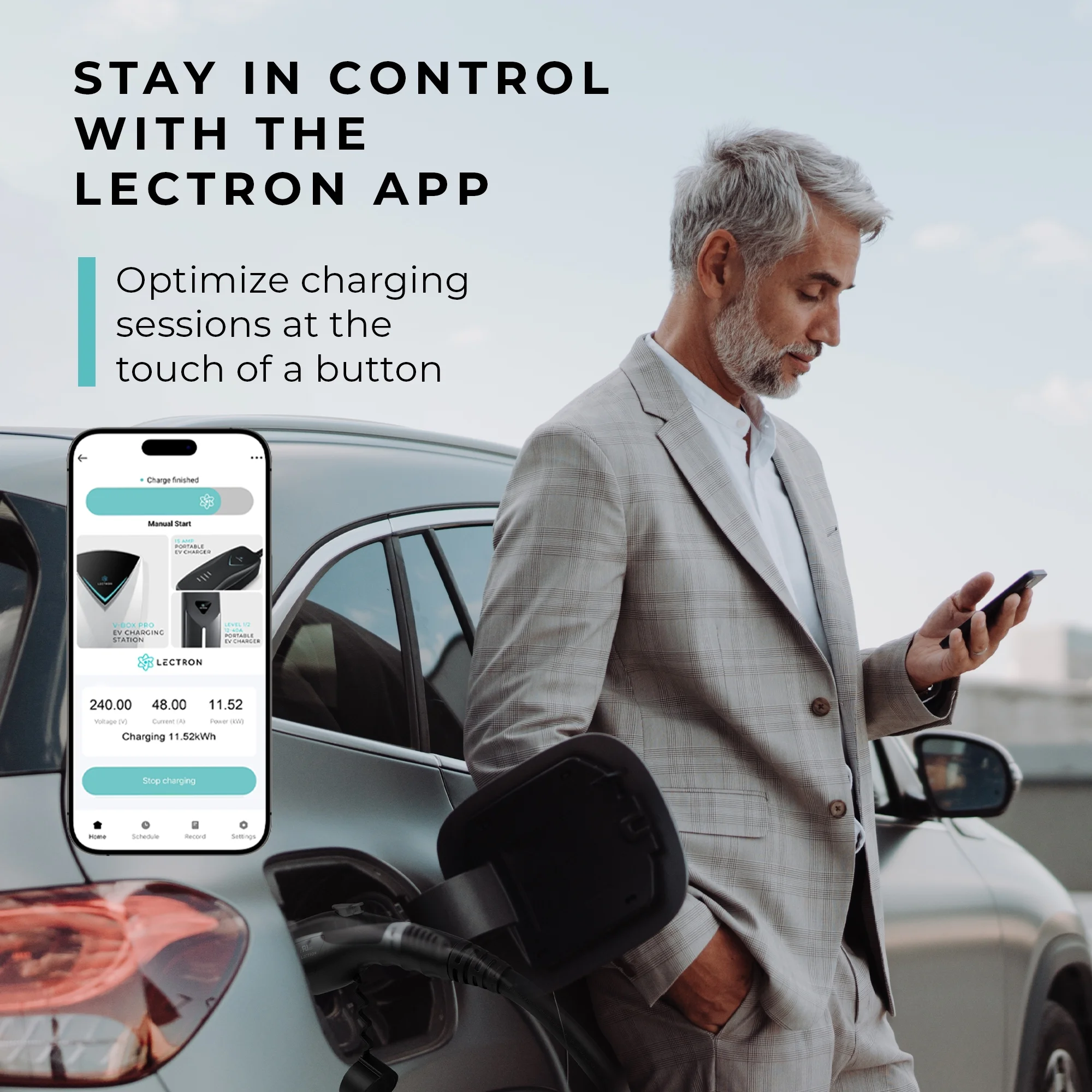 - SMART WIFI & APP CONTROL - This portable Wifi-enabled EV charger allows you to keep tabs on your charging status in real-time, schedule your charging sessions, and even control how many kWh you want to charge your EV via the Lectron App