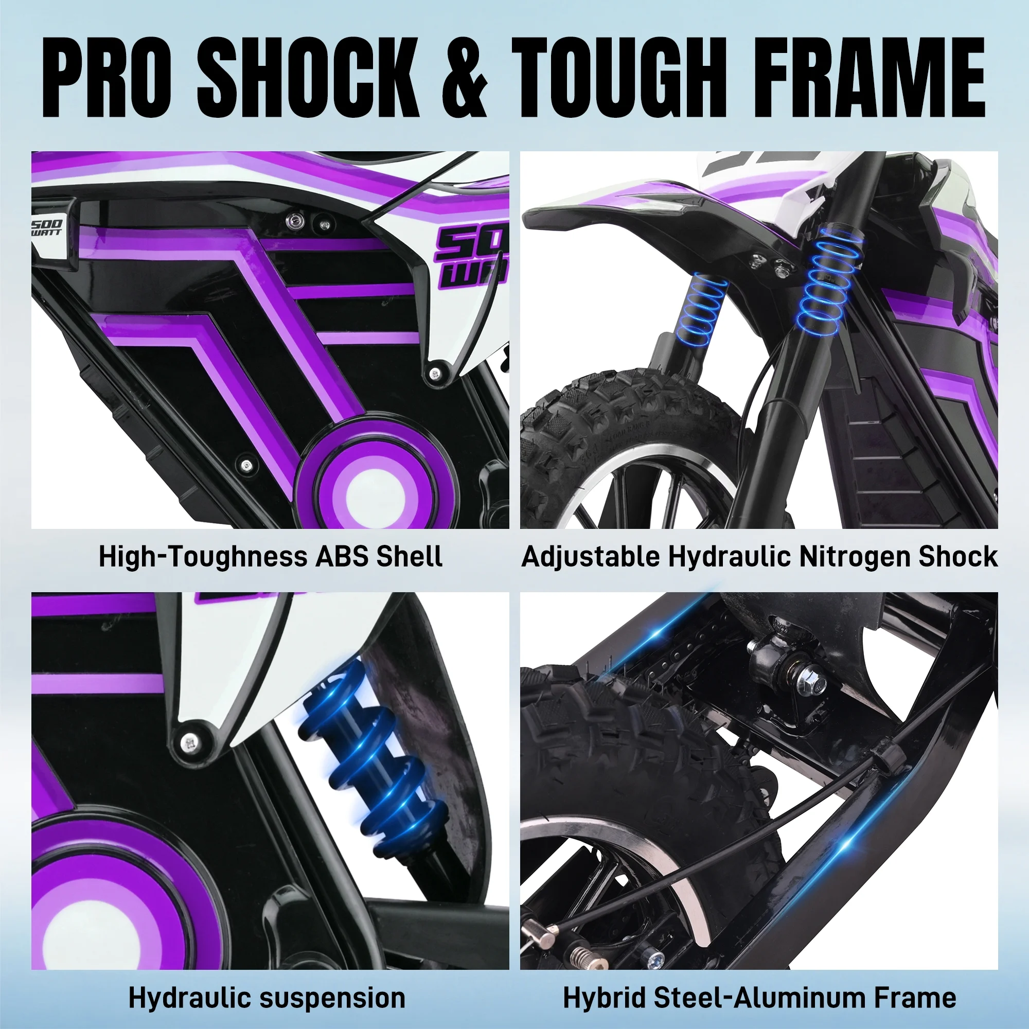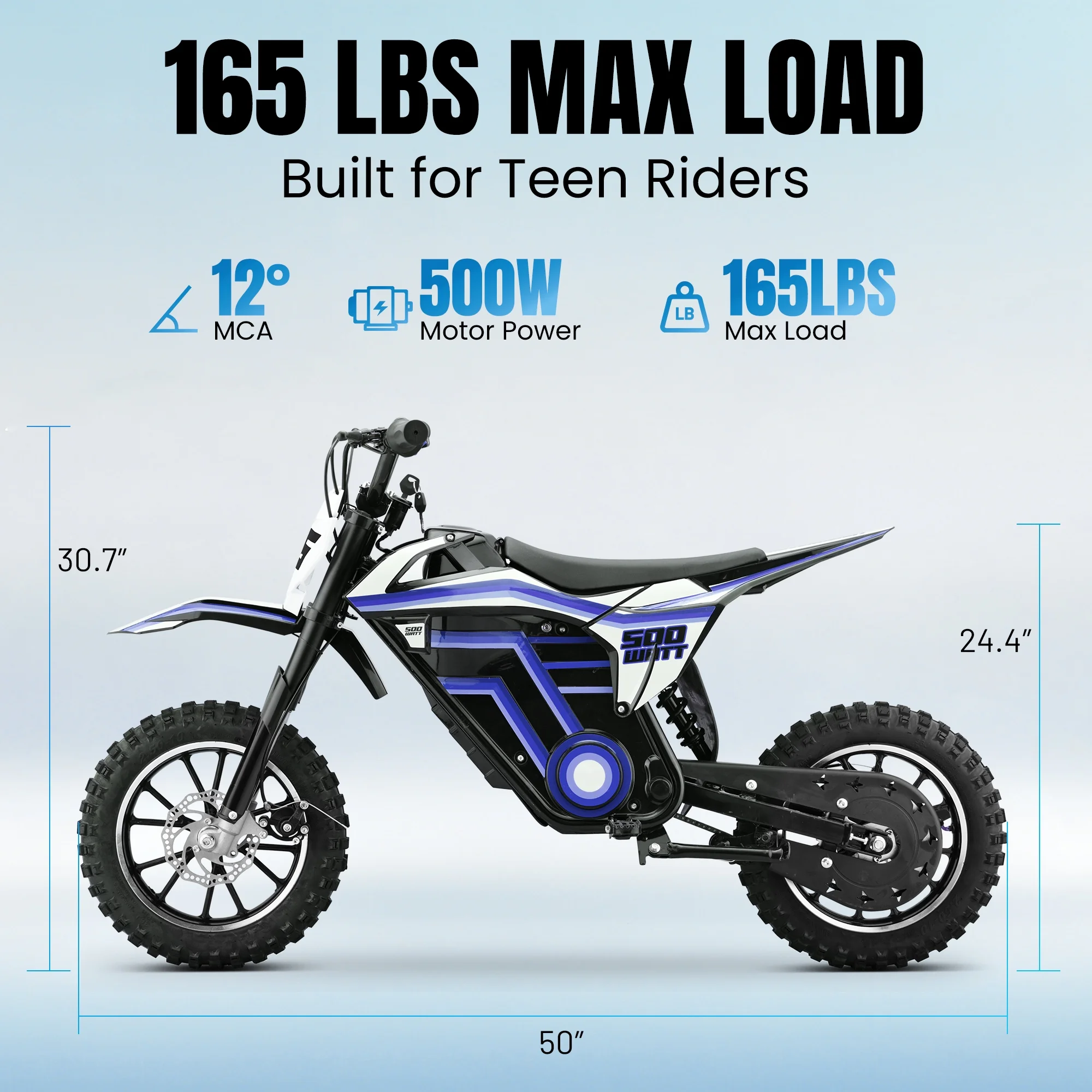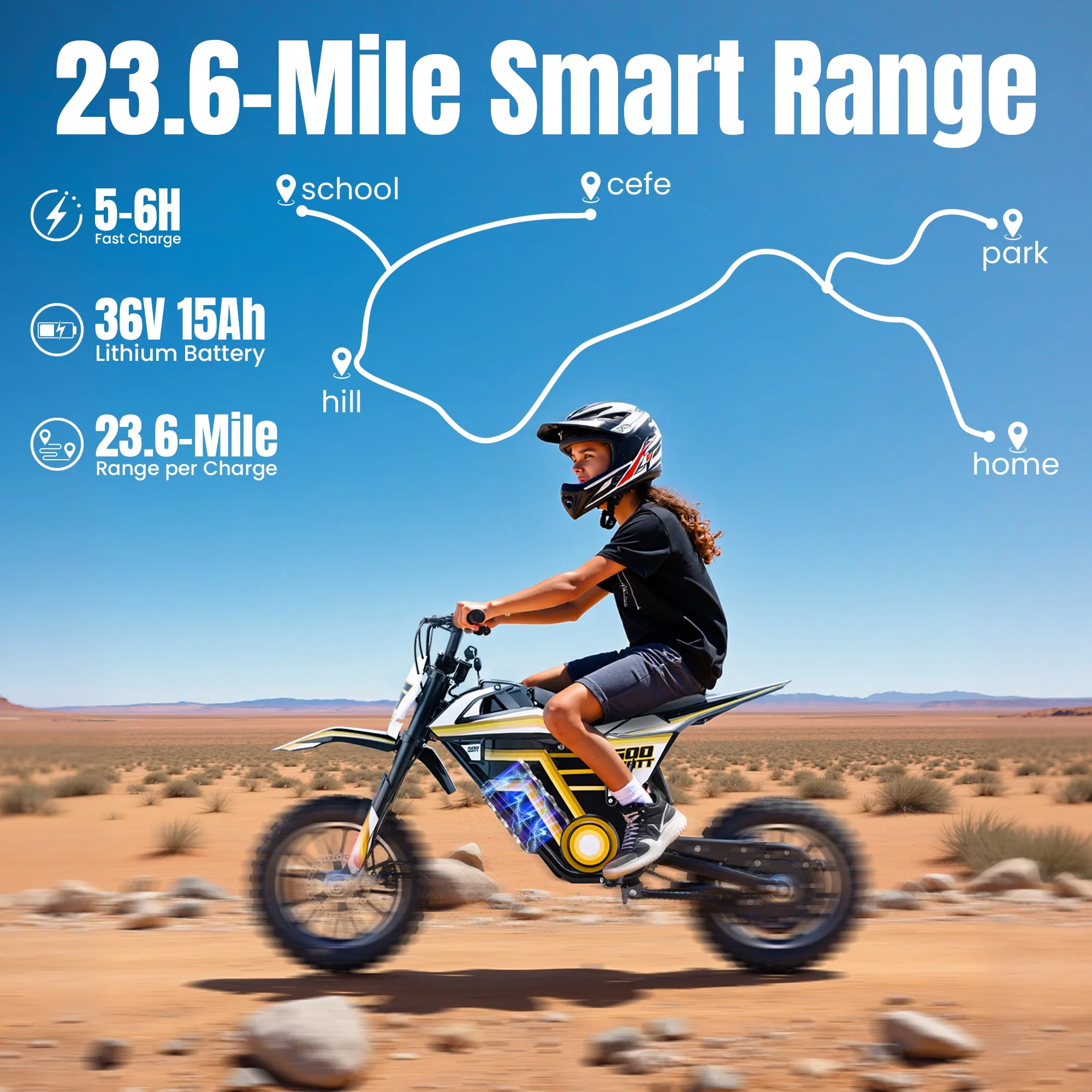 - ��Powerful 500W Brushless Motor and Dual-Speed Mode��Equipped with a 36V 500W high-efficiency brushless motor, it offers dual high and low speed modes (maximum speed 15.5 MPH/9.3 MPH), allowing children to freely switch between them based on riding conditions, ensuring both fun and safety.