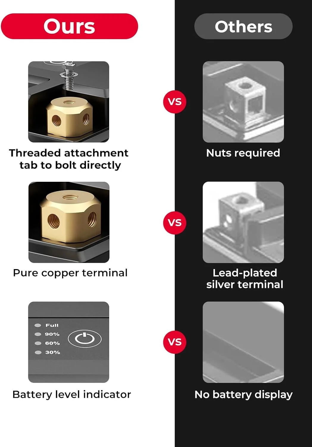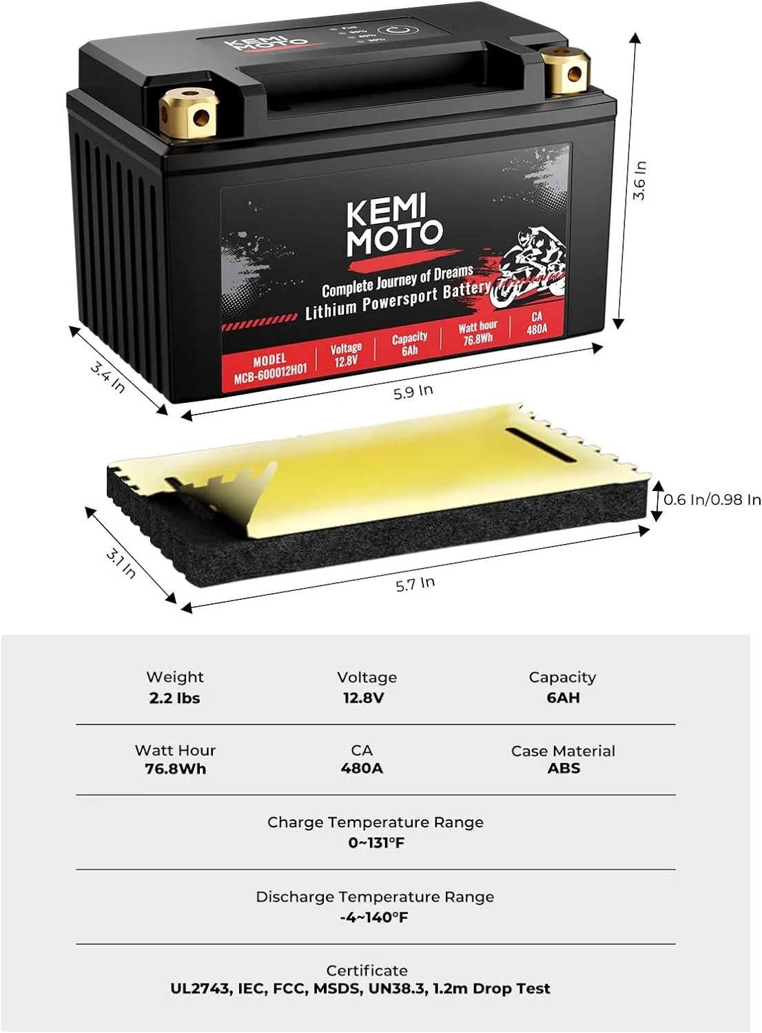 - ��Exceptional Design��The sealed battery is featured with a power display and pure copper terminal to support high current discharge and better conductivity. The starting power of the battery 12v is 480A and the cold cranking ampere (CCA) is 180A.