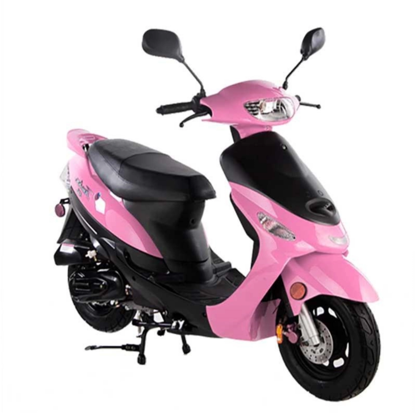 The TaoTao Pony SP 50 Scooter/Moped comes standard with all around disc brakes and a color-matched rear trunk. Powered by a proven four-stroke 49cc air-cooled engine and automatic transmission, makes it perfect for local trips. Easy electric start with kick start backup and a reliable CDI ignition make for a smooth running scooter that gets excellent fuel mileage. The scooter is lightweight and can go at speeds of up to 25 miles per hour. The nice styling and reliable components of this moped, will have you buzzing around your neighborhood.
