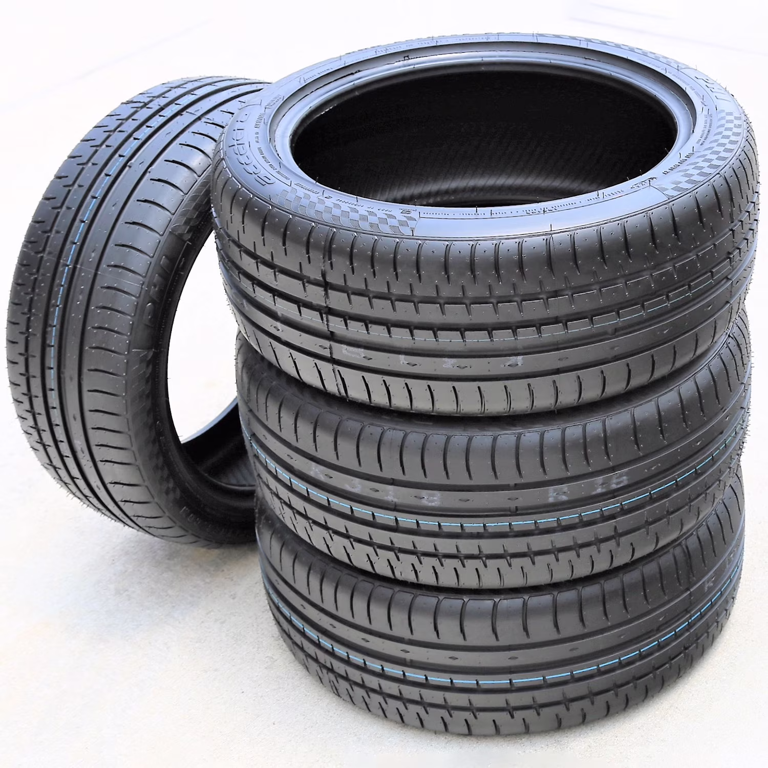 The Phi offers a comfortable and quiet driving experience. The shoulder tread blocks create a variable pitch sequence that cancel out the road noise. The road noise is decreased while the tires are in motion, as the variable pitch sequence creates a sound frequency that negates it. The result is an enjoyable, road noise free drive.
