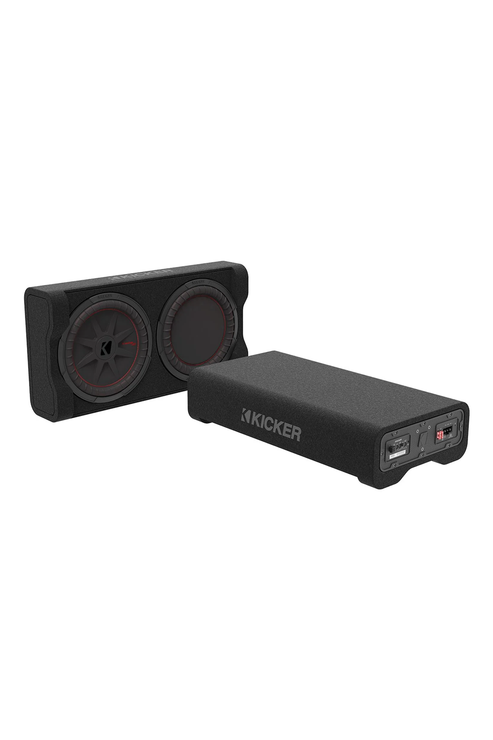 - PTRTP Powered Down-Fire Enclosures are loaded with a passive reFLEX subwoofer and the KICKER CompRT active thin sub, delivering incredible bass