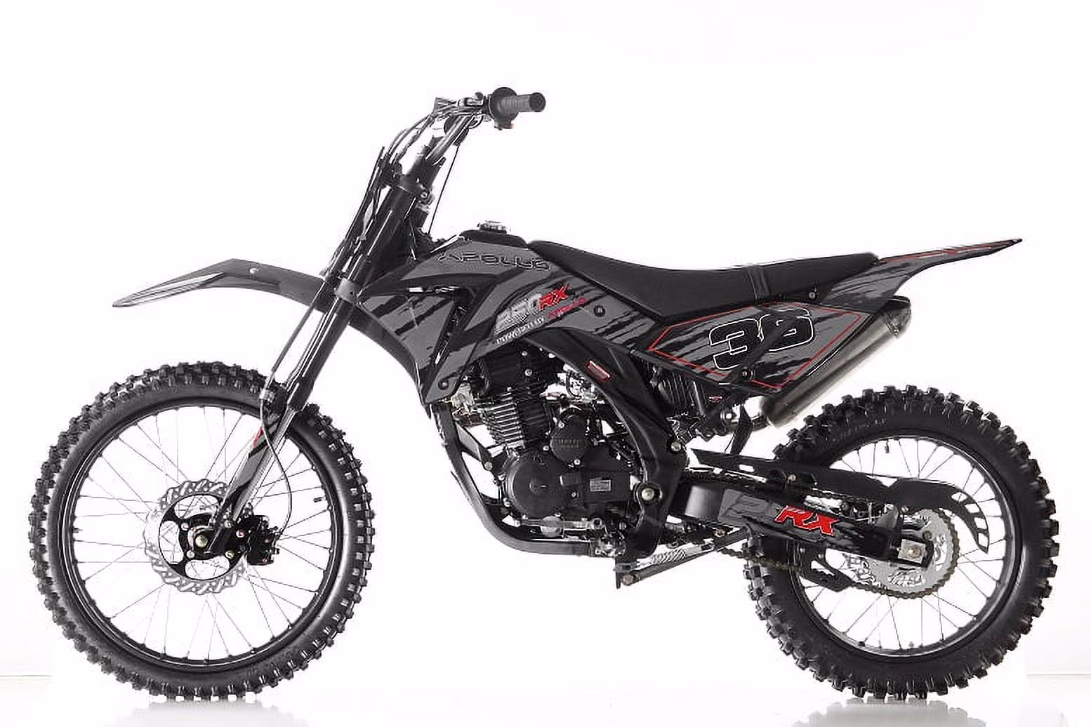 • Black APOLLO DB - 36 250cc Dirt Bike with 5 Speed Manual Transmission, Big 21"/18" Wheels!