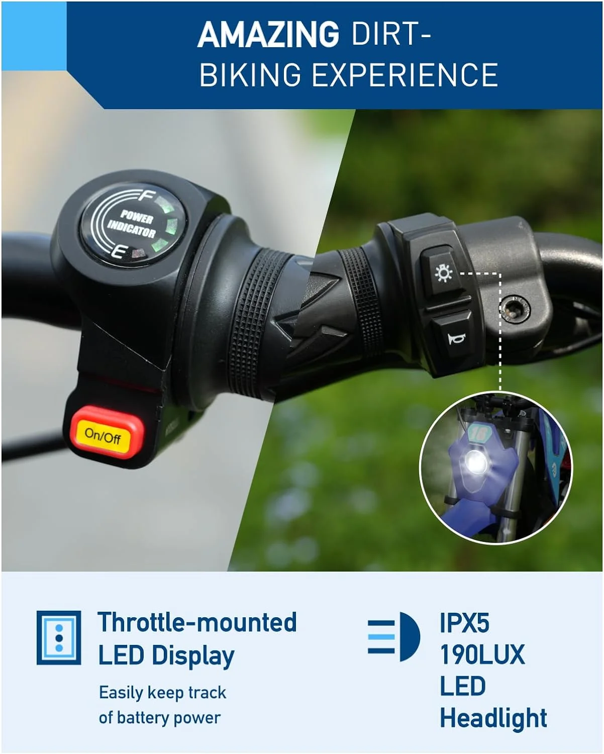 Hiboy DK1 Electric 300W Dirt Bike, for 3 Years to 13 Years - Blue