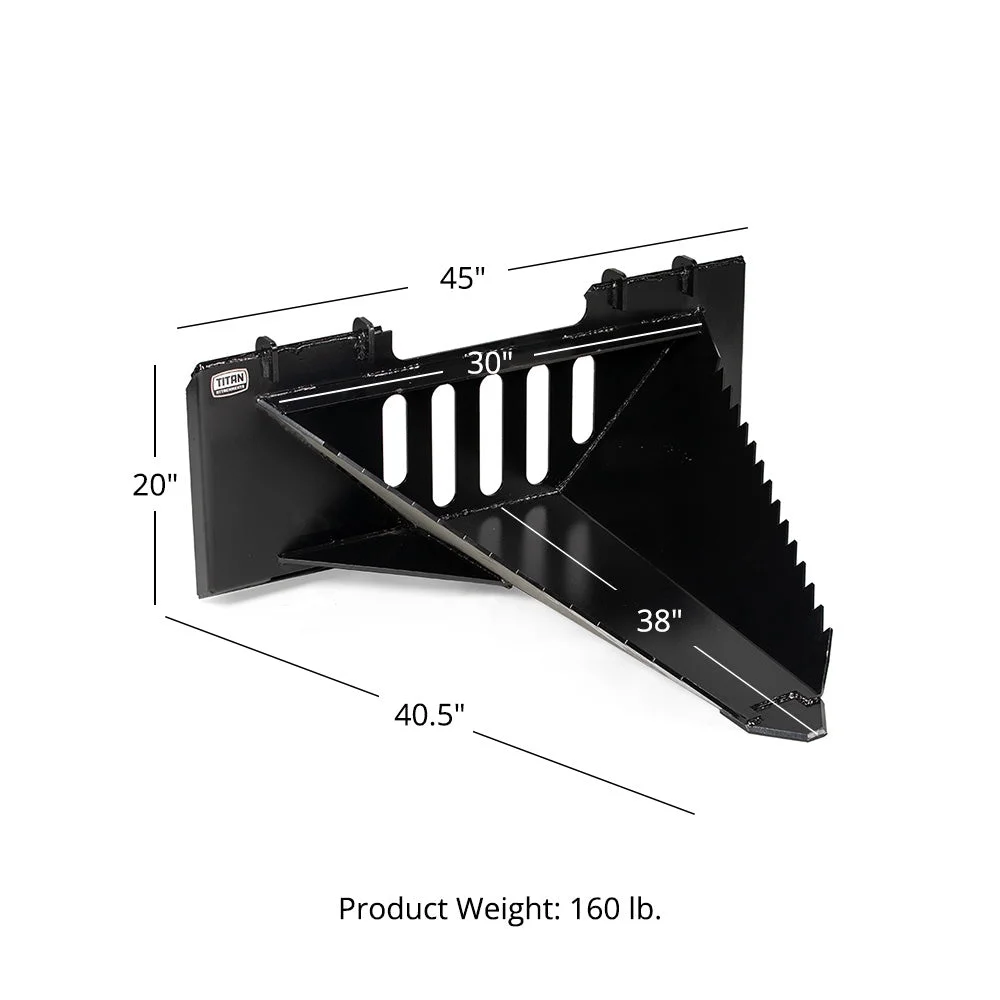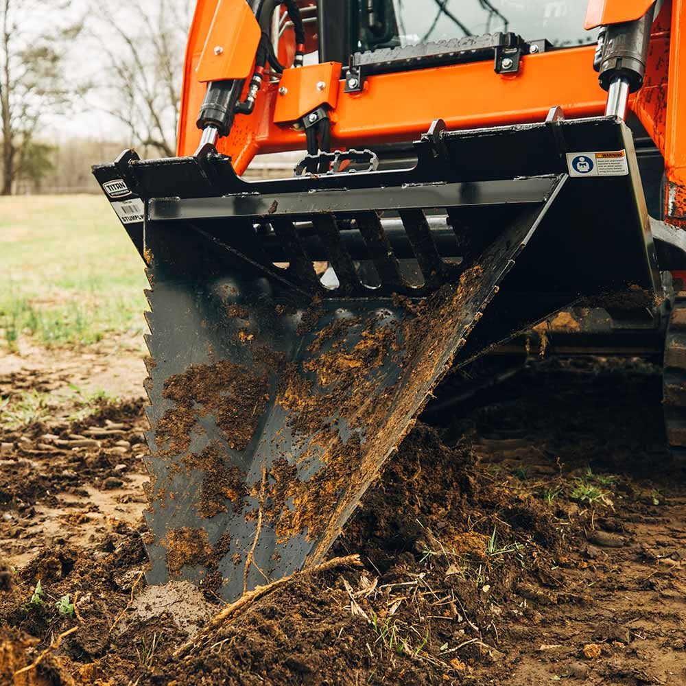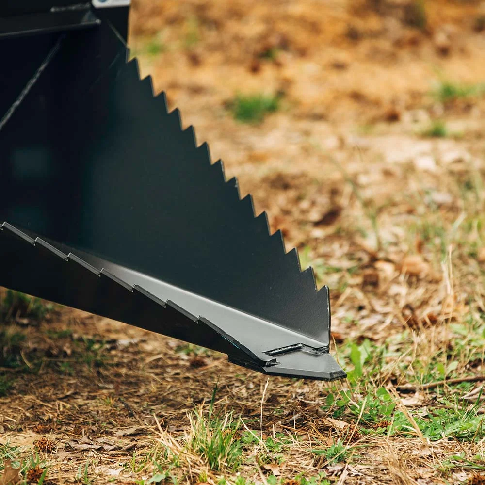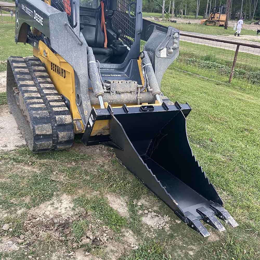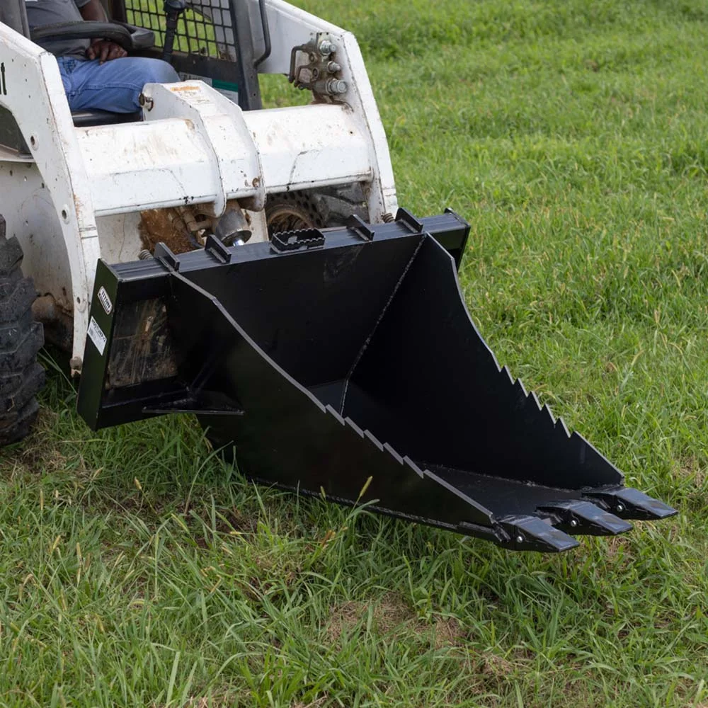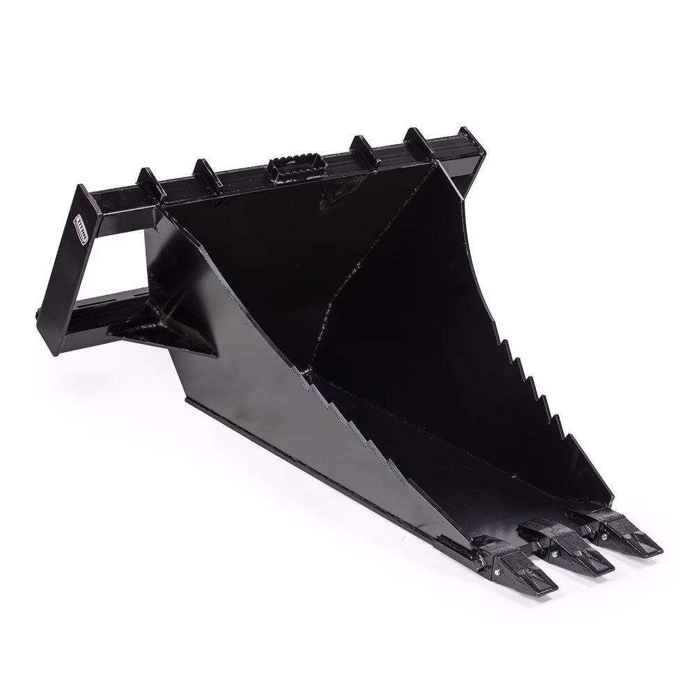 - Durable Construction: Fully reinforced bucket made from 5/16" thick structural steel, featuring a 30" long x 1/2" wide serrated leading edge, and powdercoated for enhanced durability