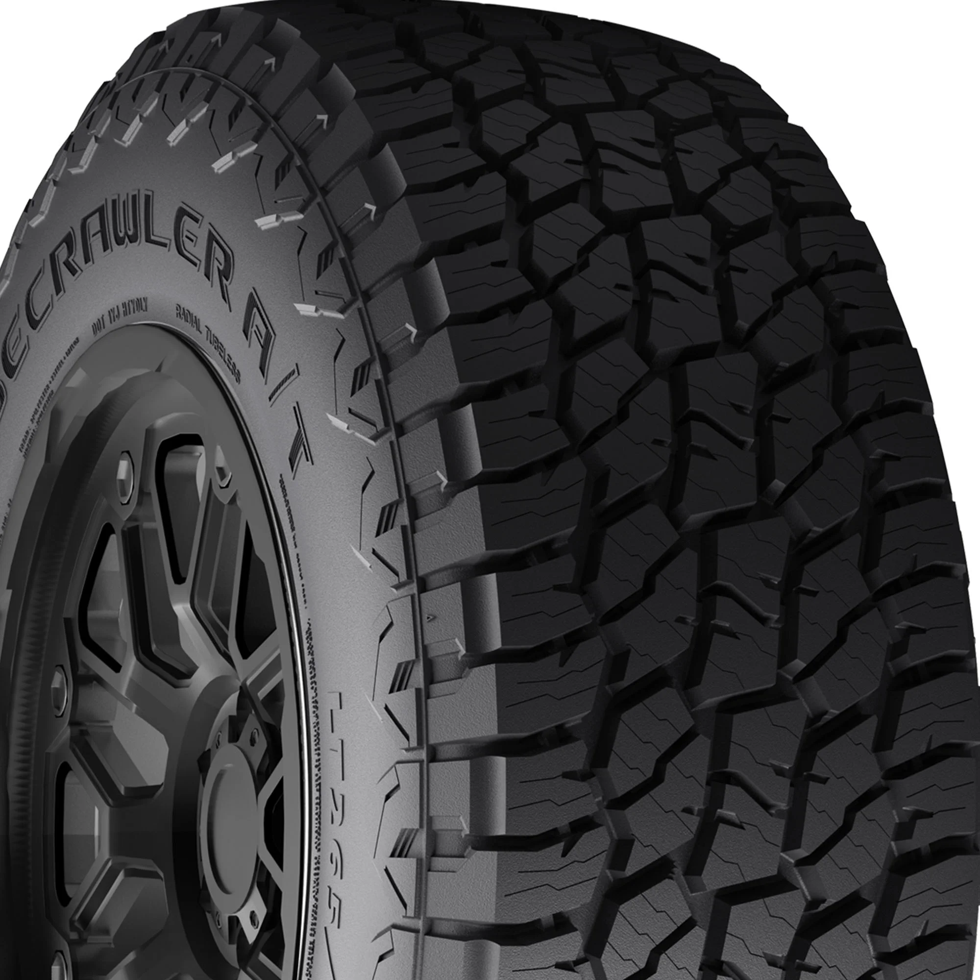 - Aggressive all-terrain tread with deep lugs and staggered shoulder blocks for superior off-road grip