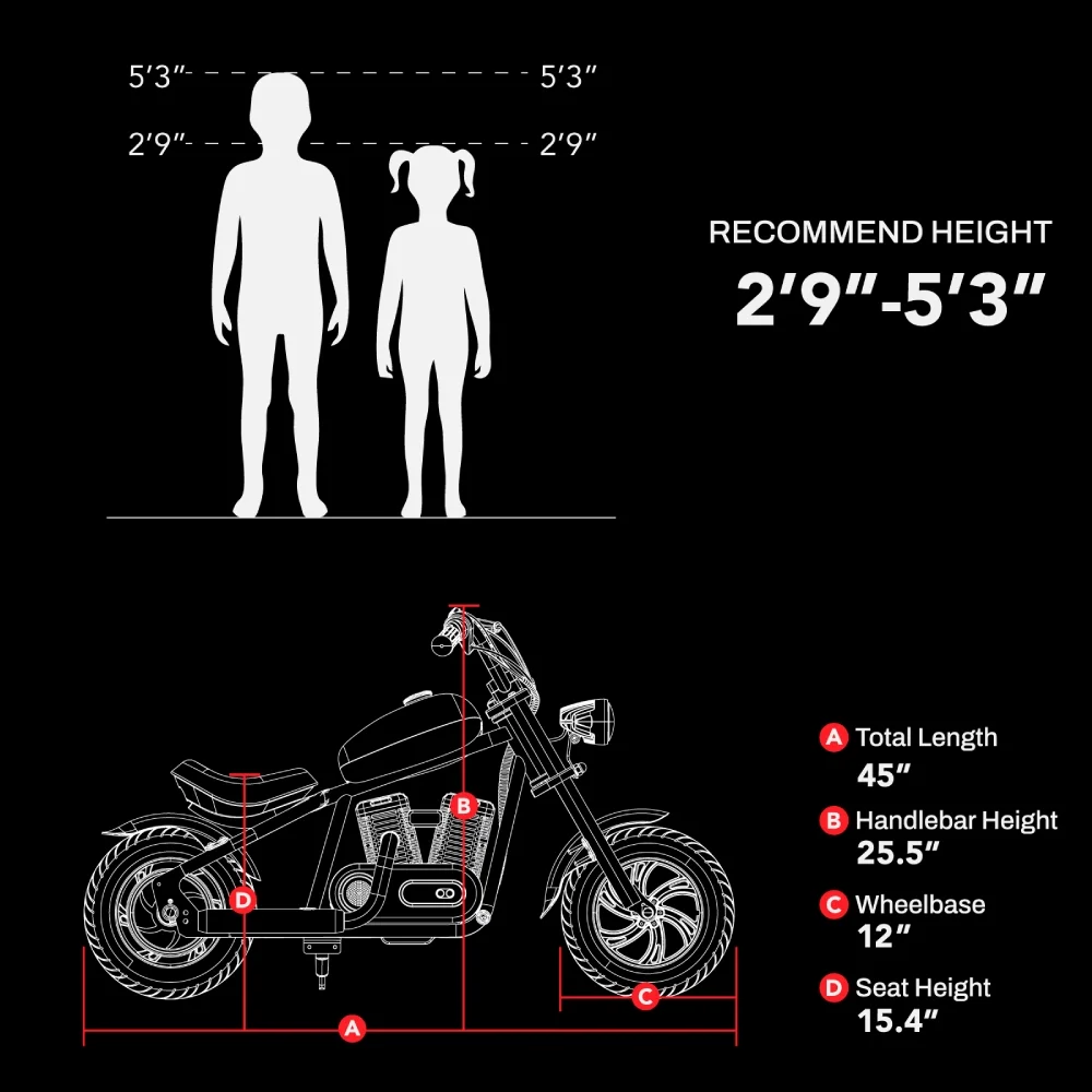 - Dimensions: 453 x 196 x 285 inches, ideal for young riders; lightweight at only 33 lbs for easy maneuverability