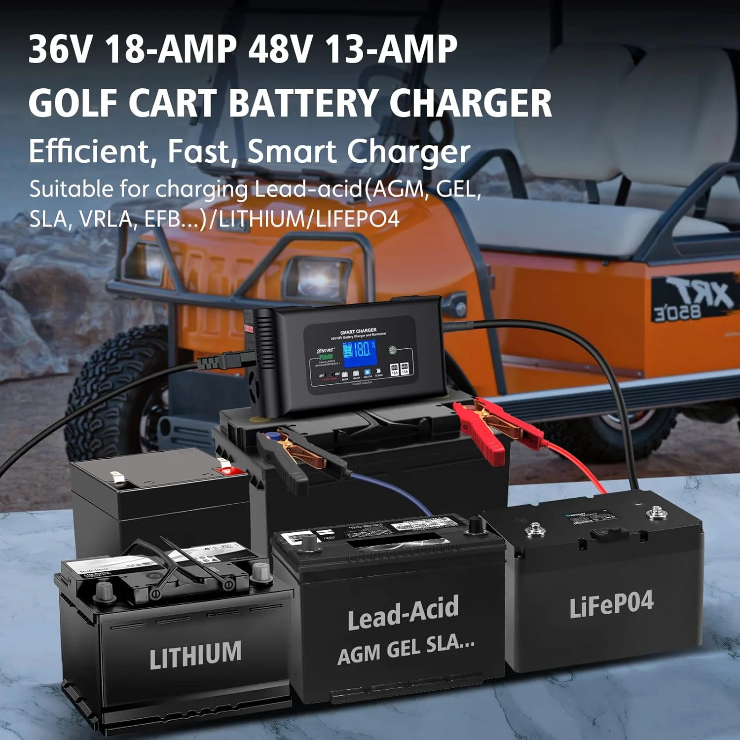 Golf Cart Battery Charger, 48V 13A and 36V 18A Trickle Battery Charger, 48 Volt Cart Golf Charger, for 48 Volt Club Golf Car, Lithium, LiFePO4, Lead - Acid AGM/Gel/Sla..battery Charger, 3 Pin Round Plug