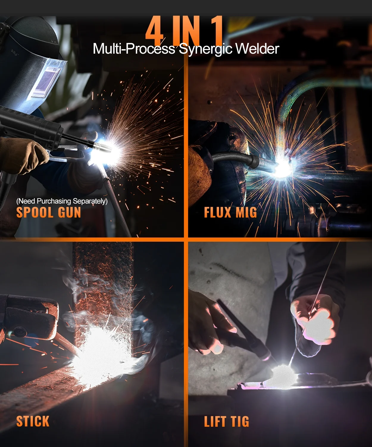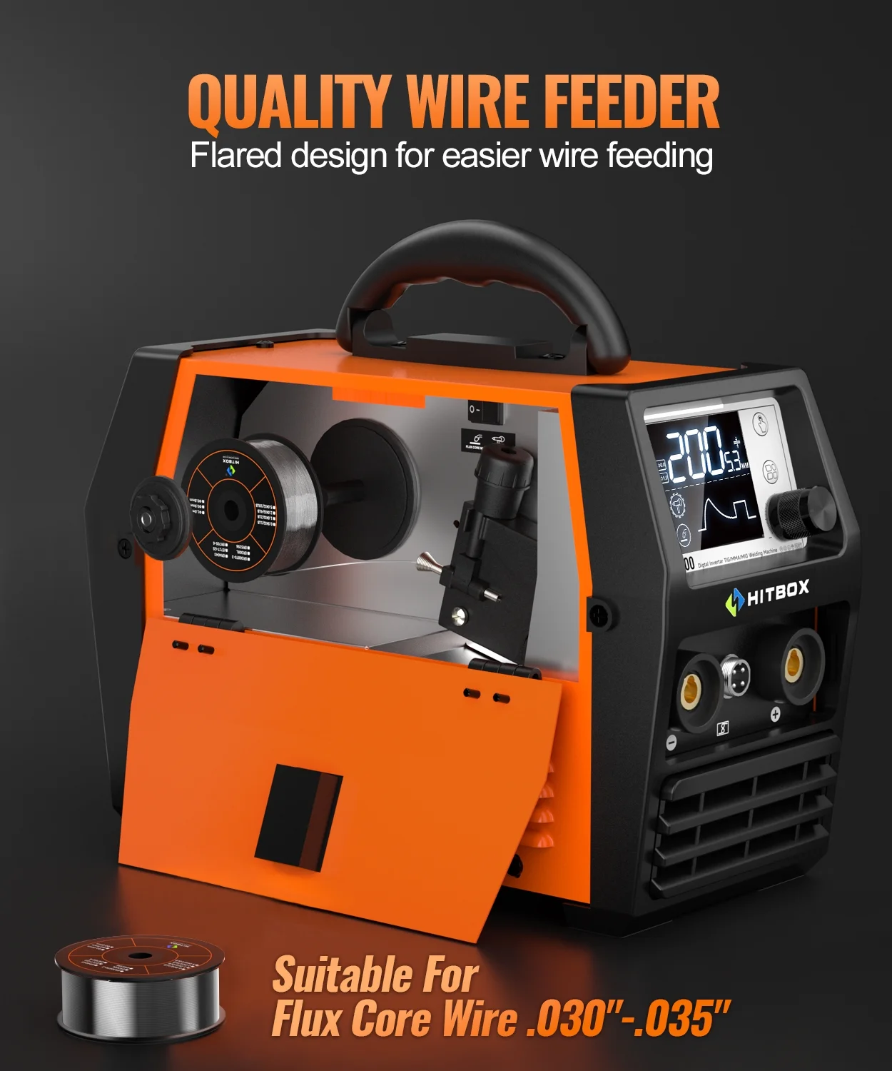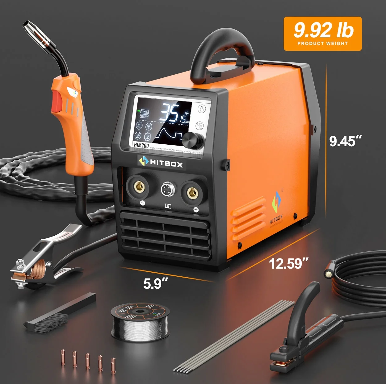 - ��4 in 1 MIG Welding Machine��HIM200 supports 4 work modes--MIG gasless/MMA/ARC/LIFT TIG/Welding Gun of Wire drawing (Note: The machine does not come with wire drawing welding gun accessories).Please check whether the size of the wire and the contact tip match when using it.