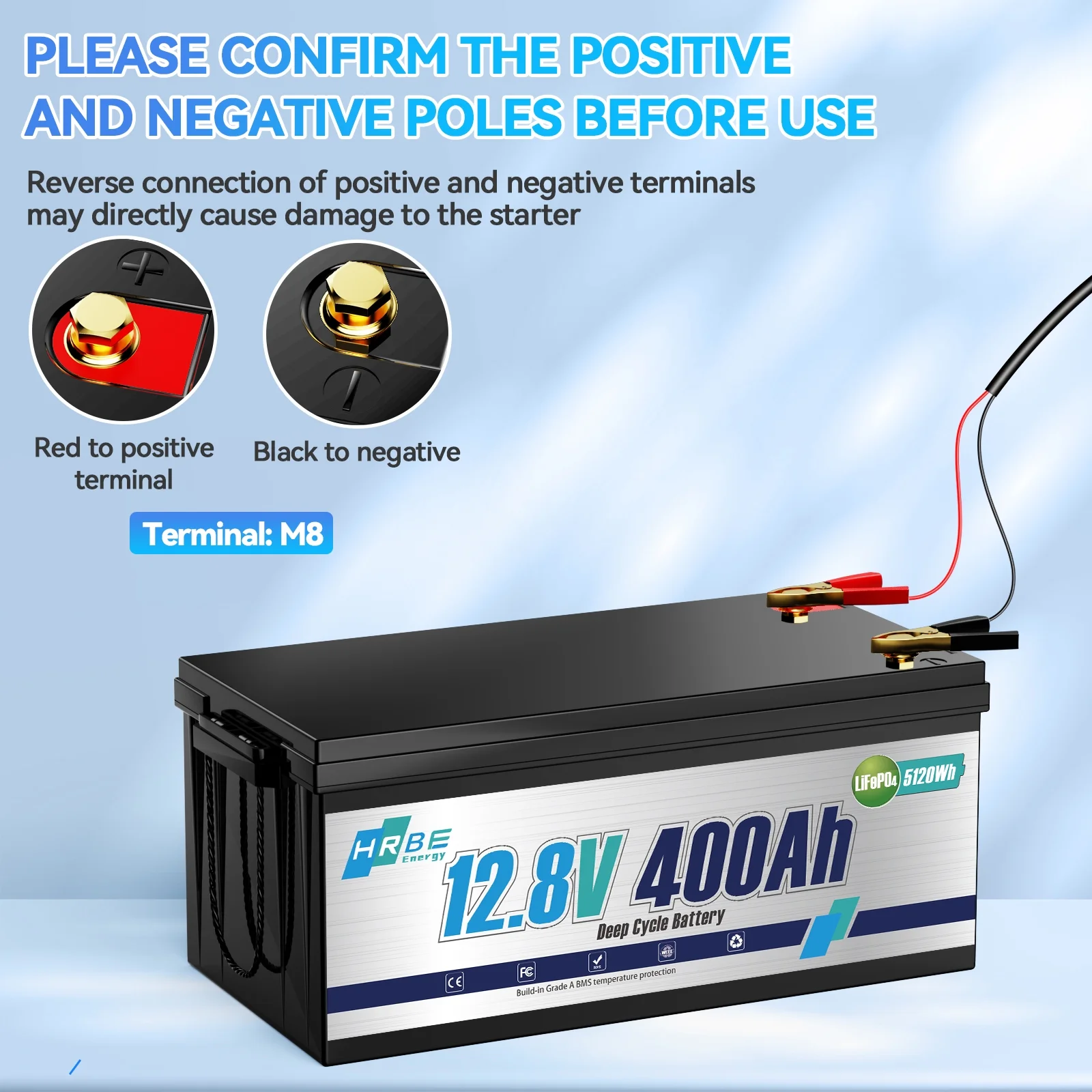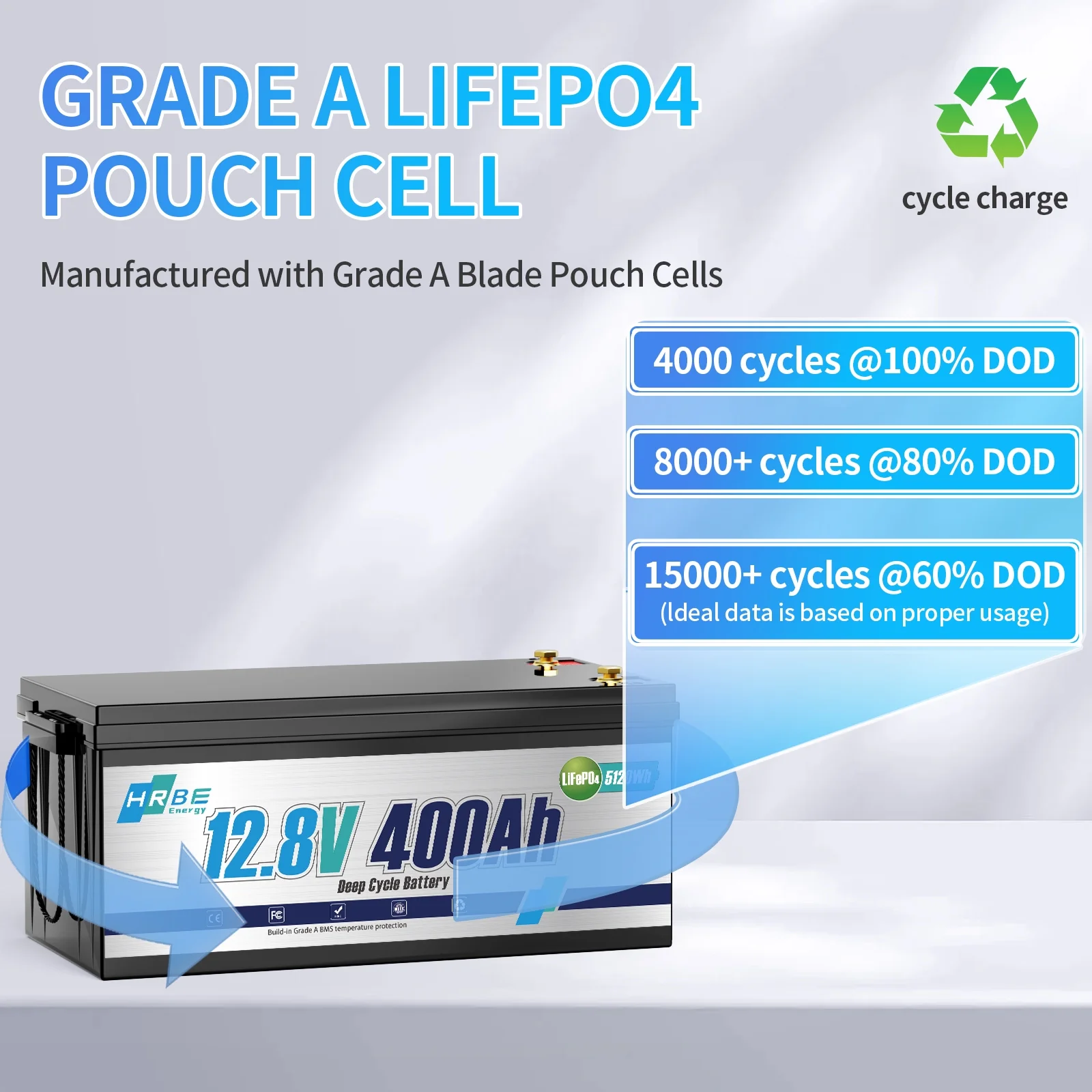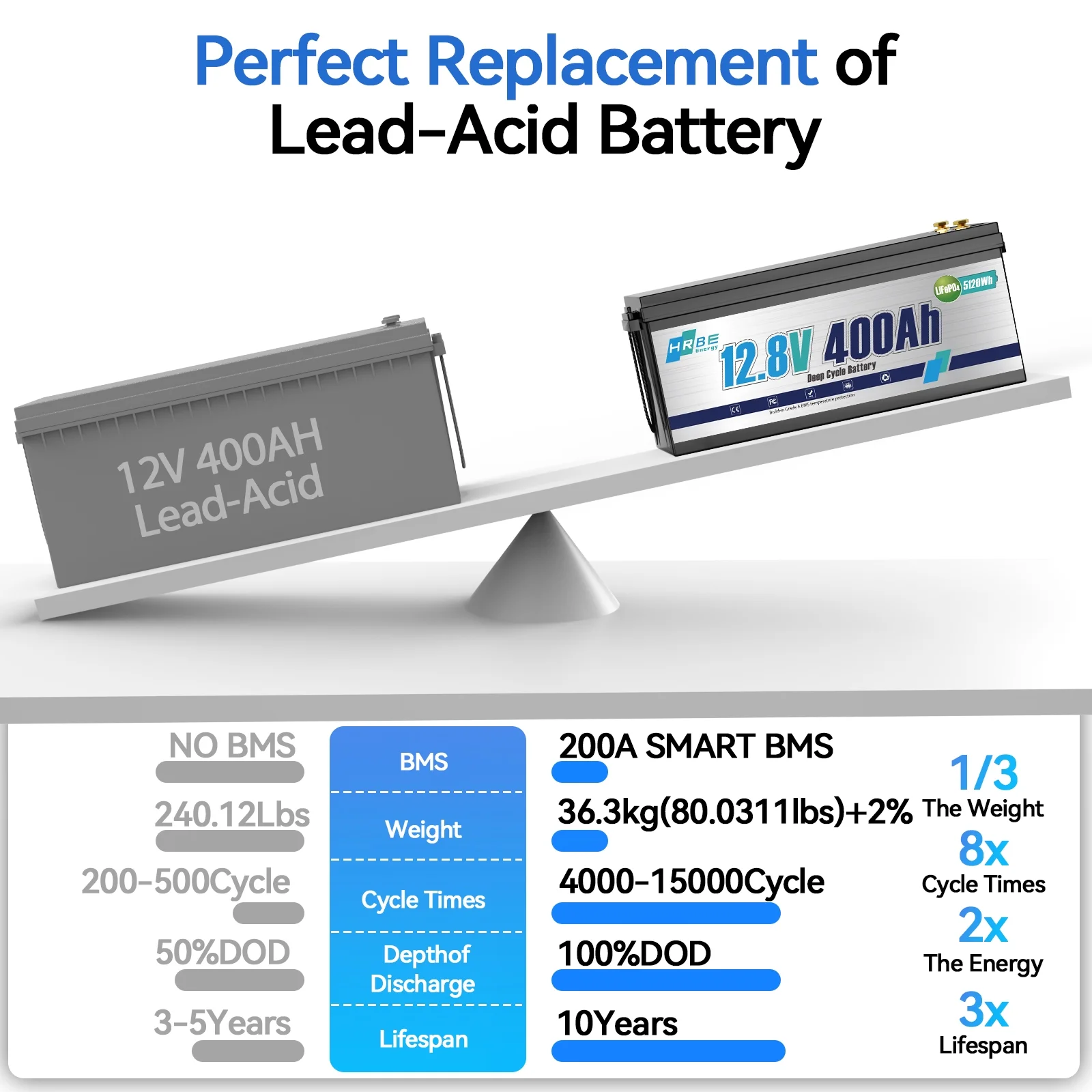 - The 12.8V 400Ah LiFePO4 lithium battery delivers 5120Wh of energy, ideal for extended runtime in demanding applications. With 4000-15000 deep cycles, it outperforms lead-acid batteries in longevity. Voltage remains stable even under heavy 4000W loads, ensuring reliable power for high-demand devices. Perfect for Fishing,Camping,Solar,Golf Cart,Backup Power Systems