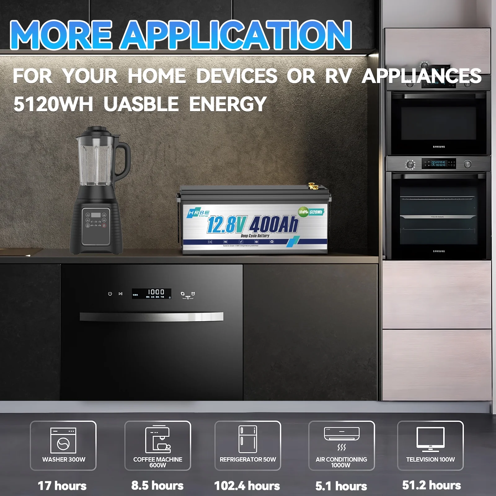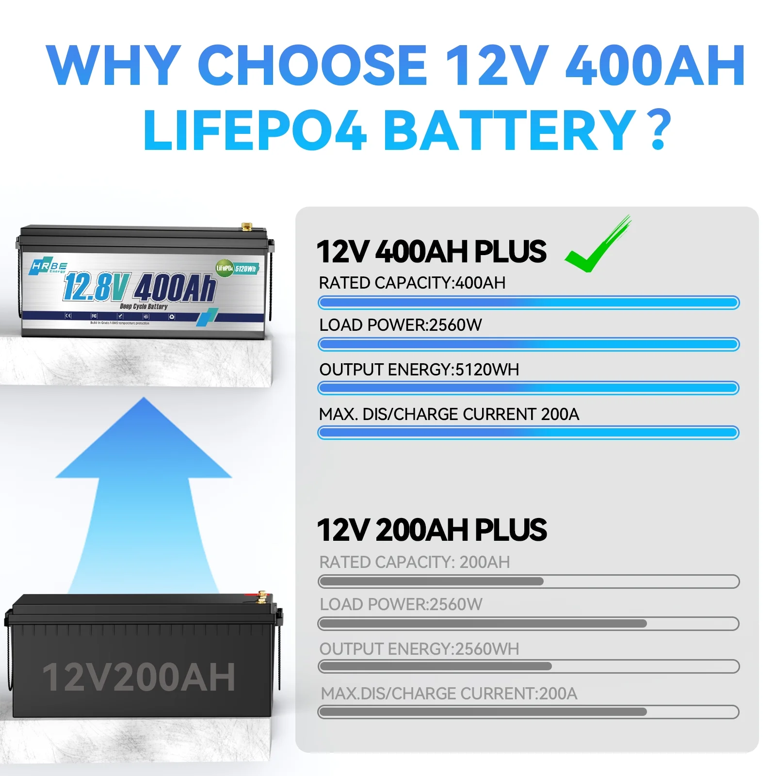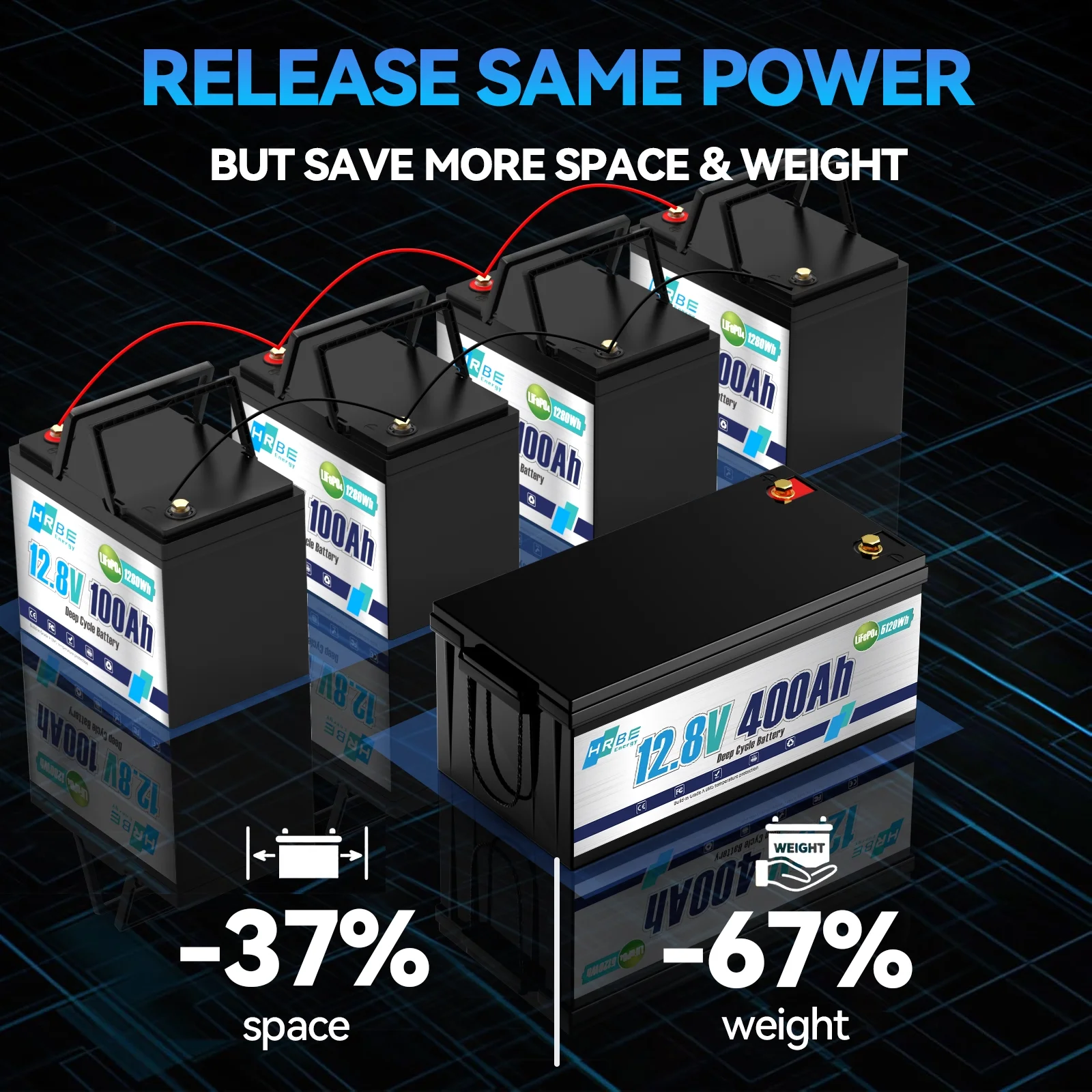 - HRBEENERG 12V400Ah LiFePO4 battery supports to be connected in series & parallel, and max. in 4S4P for a 51.2V 1600Ah battery system to get 51.2kW output power and 81.92kWh usable energy. They can definitely meet your need for building your battery system, and perfect for home energy storage. Besides, the BMS with equalization function to control the consistency of the battery cells, which will extend the batteries�� lifespan.