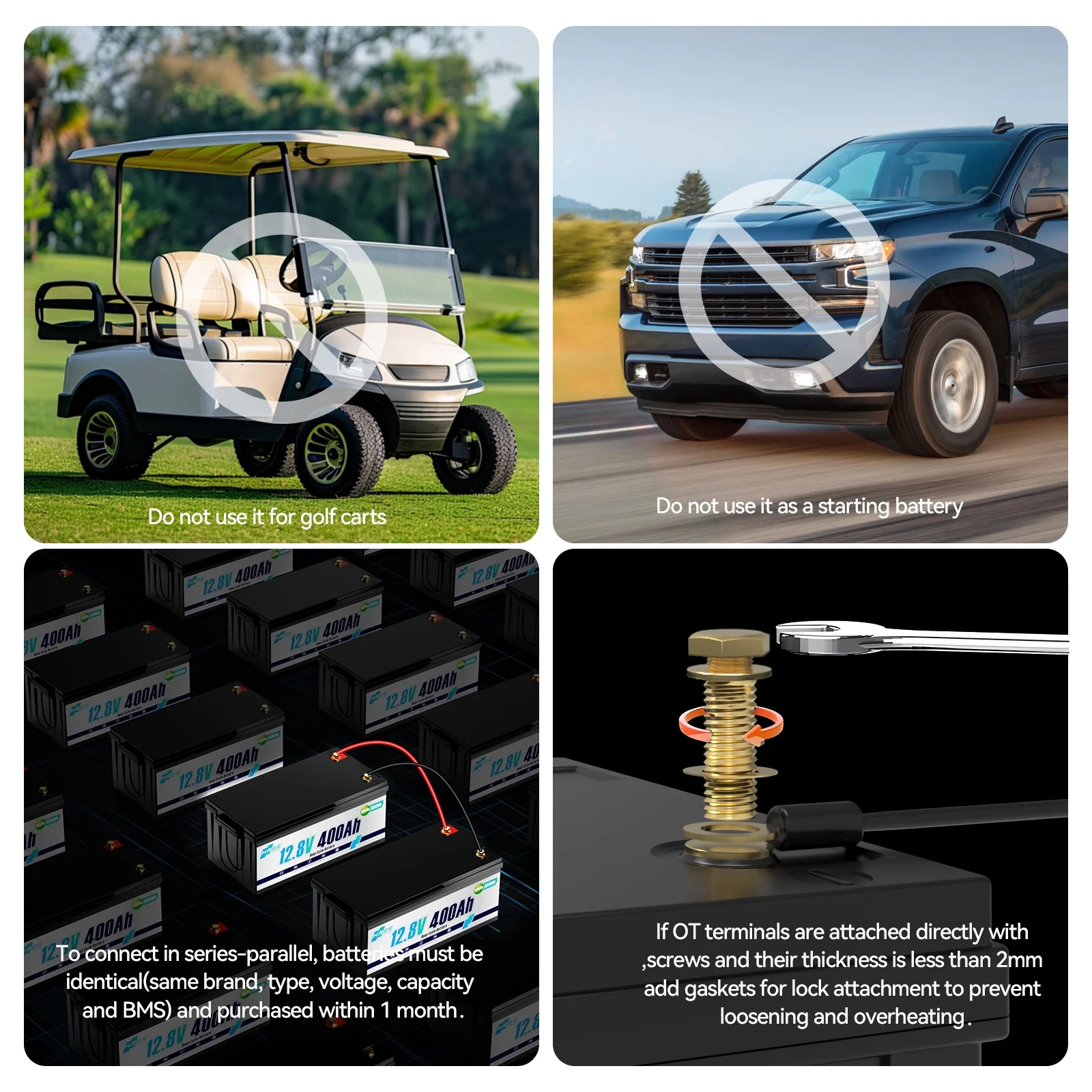 - Our LiFePO4 battery is intended for use as an energy storage purpose, Please do not use this battery as starting batteries, golf cart batteries, or jacks. We do not suggest using it to start any device! We provide professional technical support and online customer service with fast feedback within 48 hours.