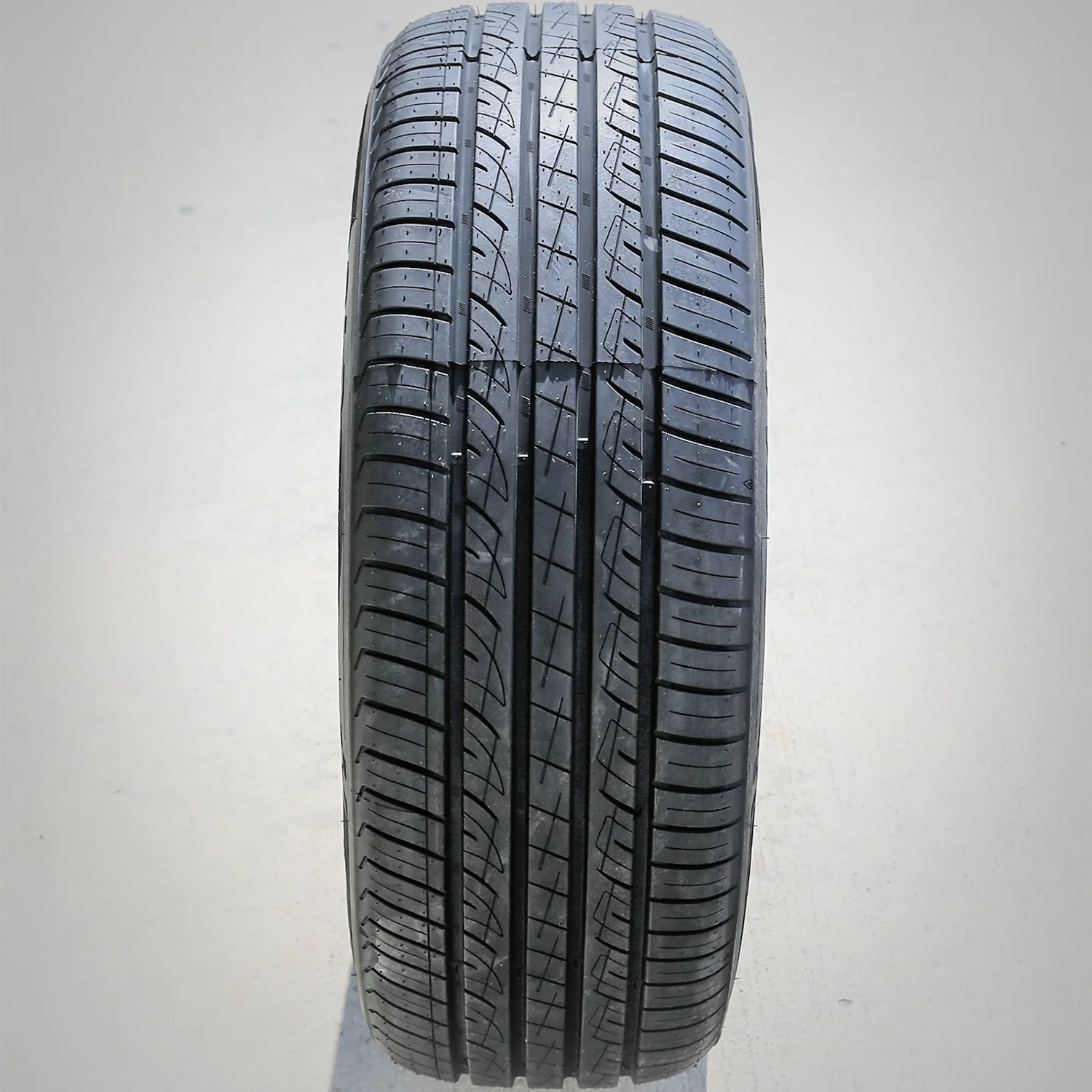 The tire promotes exceptional all weather traction. The asymmetric ribbed tread design and the compound improve dry, wet, and winter weather performance. The durable compound effectively prevents heat build-up along the tread area, while keeping the tire pliable in colder temperatures too. On the other hand, the asymmetric pattern with the better road-to-rubber ratio and the siping placement enhance the grip on the road surface. The tread's circumferential and lateral grooves actively combat hydroplaning, as they disperse water and slush from the footprint.