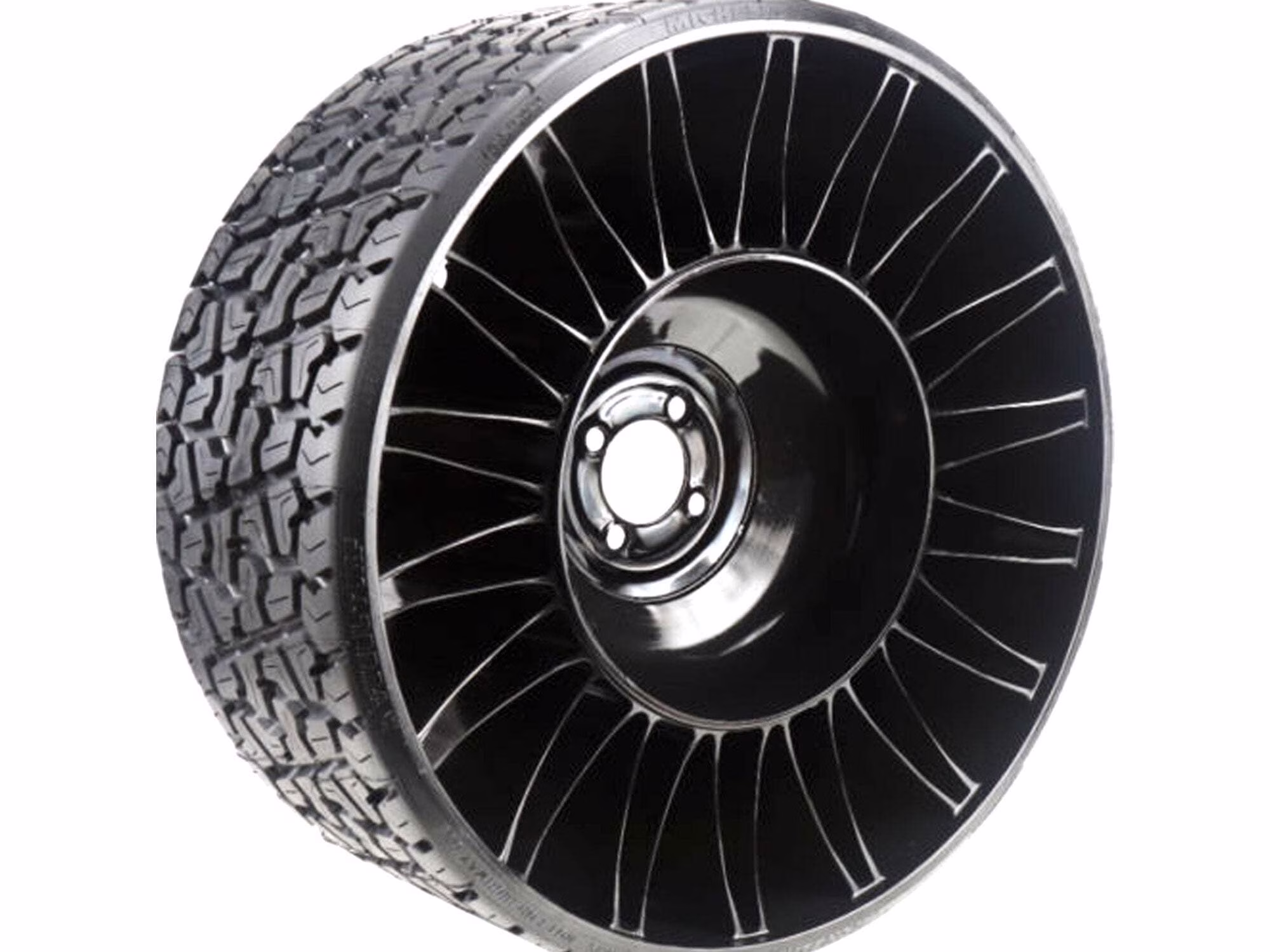 Airless radial tires are one whole assembly that replace the tire, wheel and valve assembly