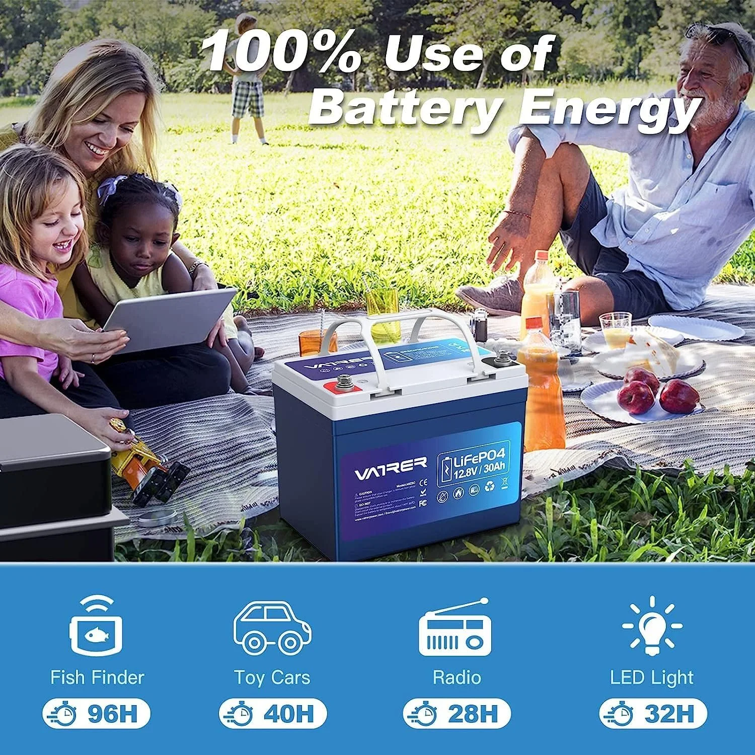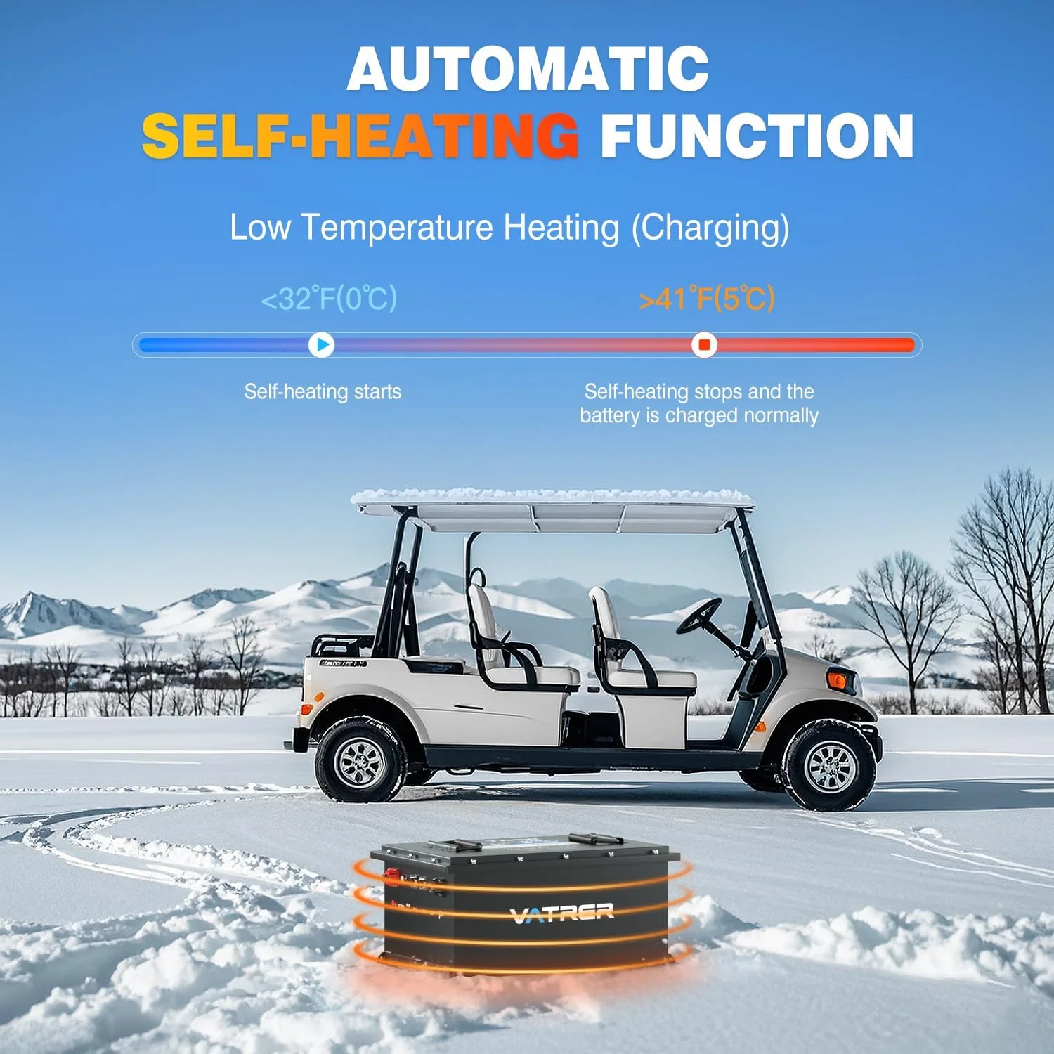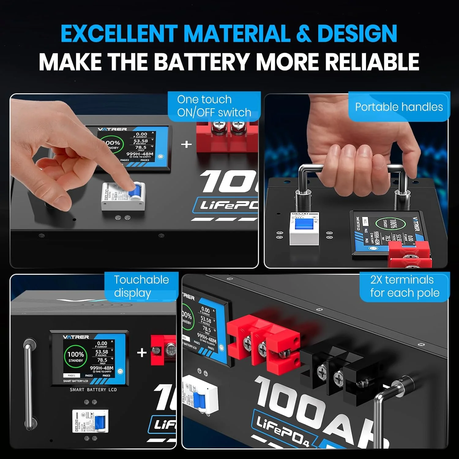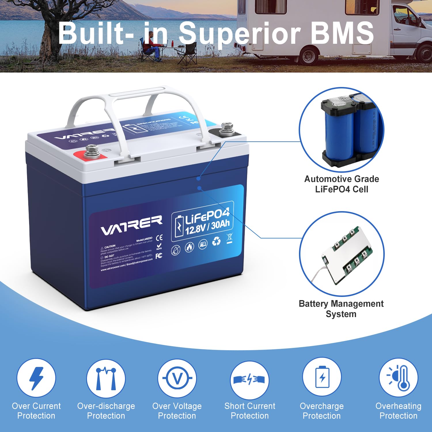VATRER POWER 12V 100AH Low Temp Cutoff LiFePO4 Deep Cycle Battery with 1280W, Built - in 100A BMS, 5000+ Cycles Rechargeable Lithium Battery, Perfect for RV/Camper, Marine, Solar