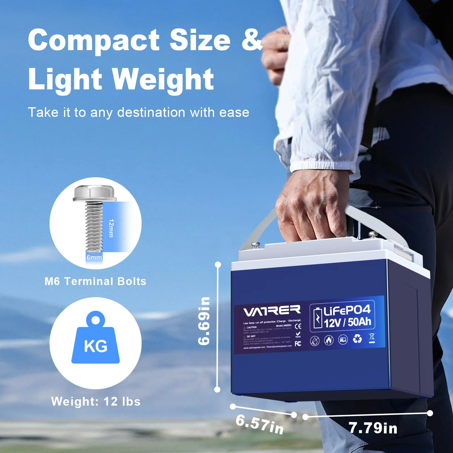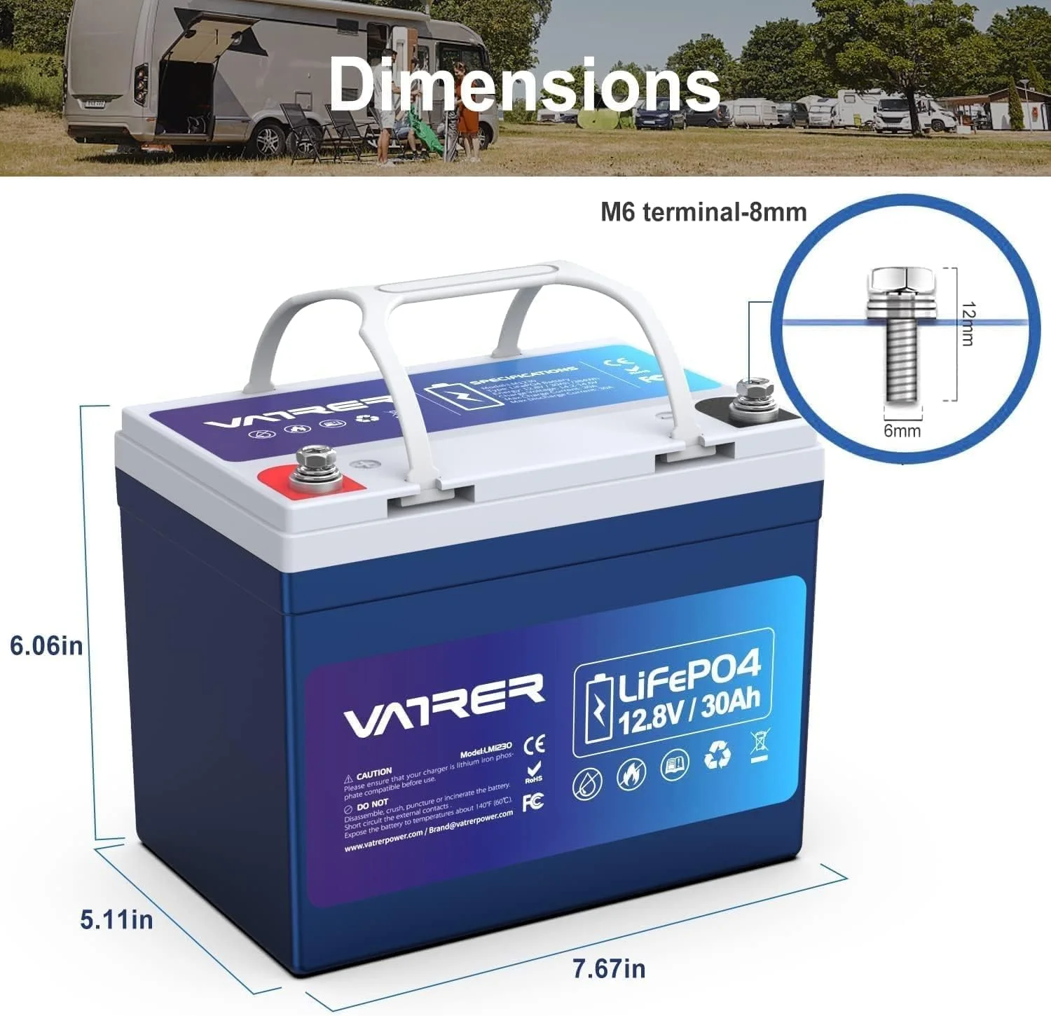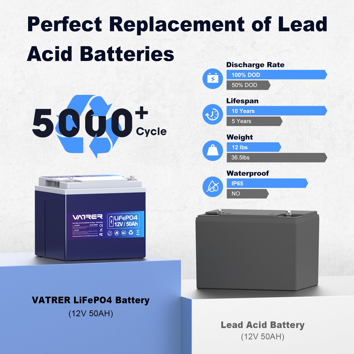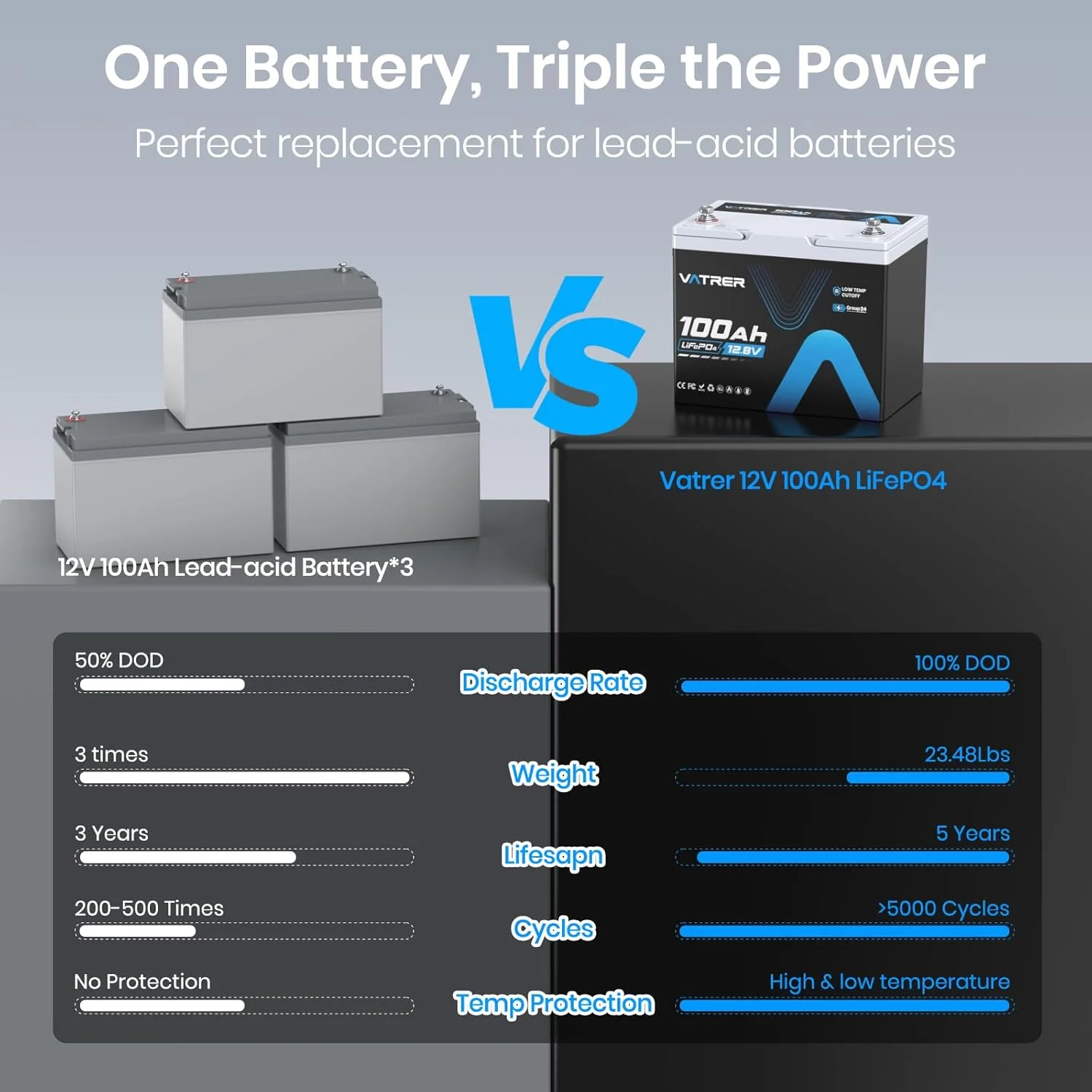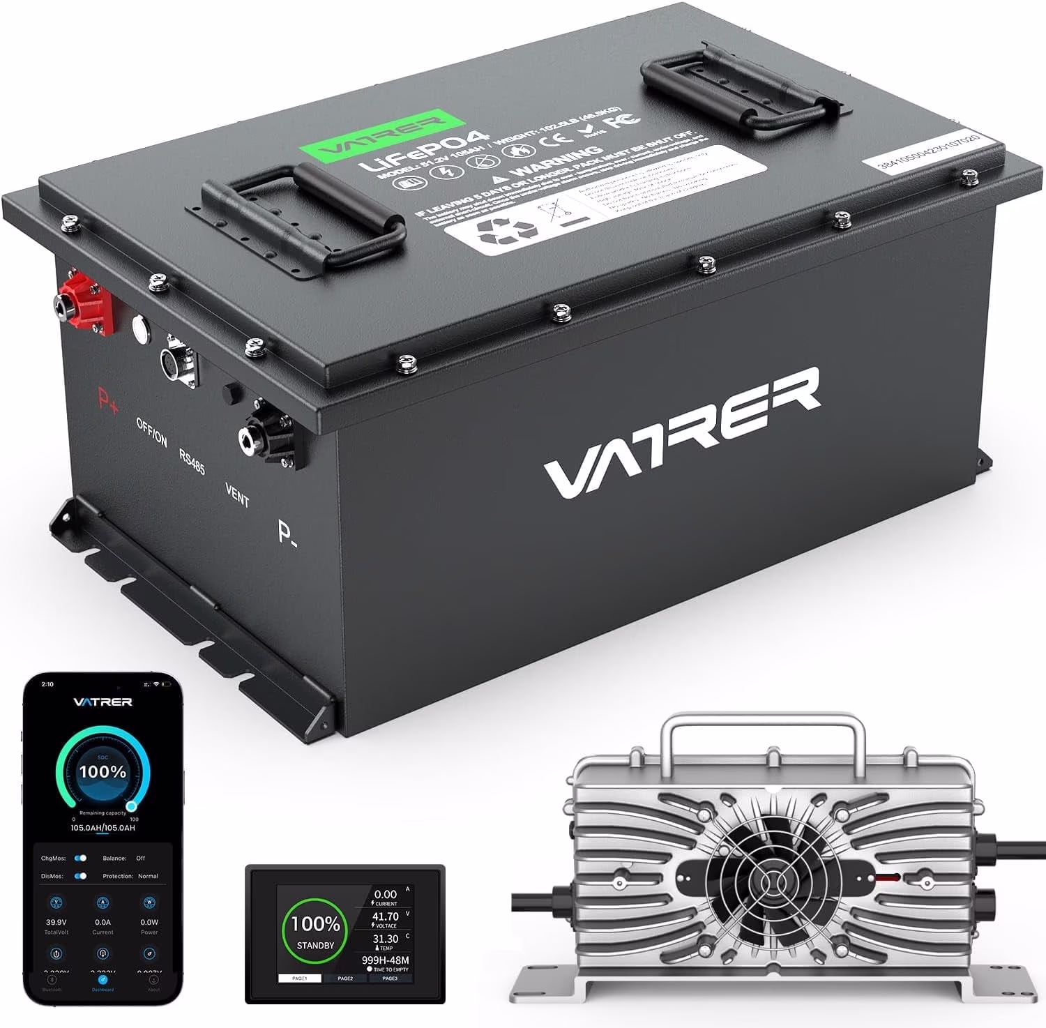 VATRER POWER 12V 100AH Low Temp Cutoff LiFePO4 Deep Cycle Battery with 1280W, Built - in 100A BMS, 5000+ Cycles Rechargeable Lithium Battery, Perfect for RV/Camper, Marine, Solar