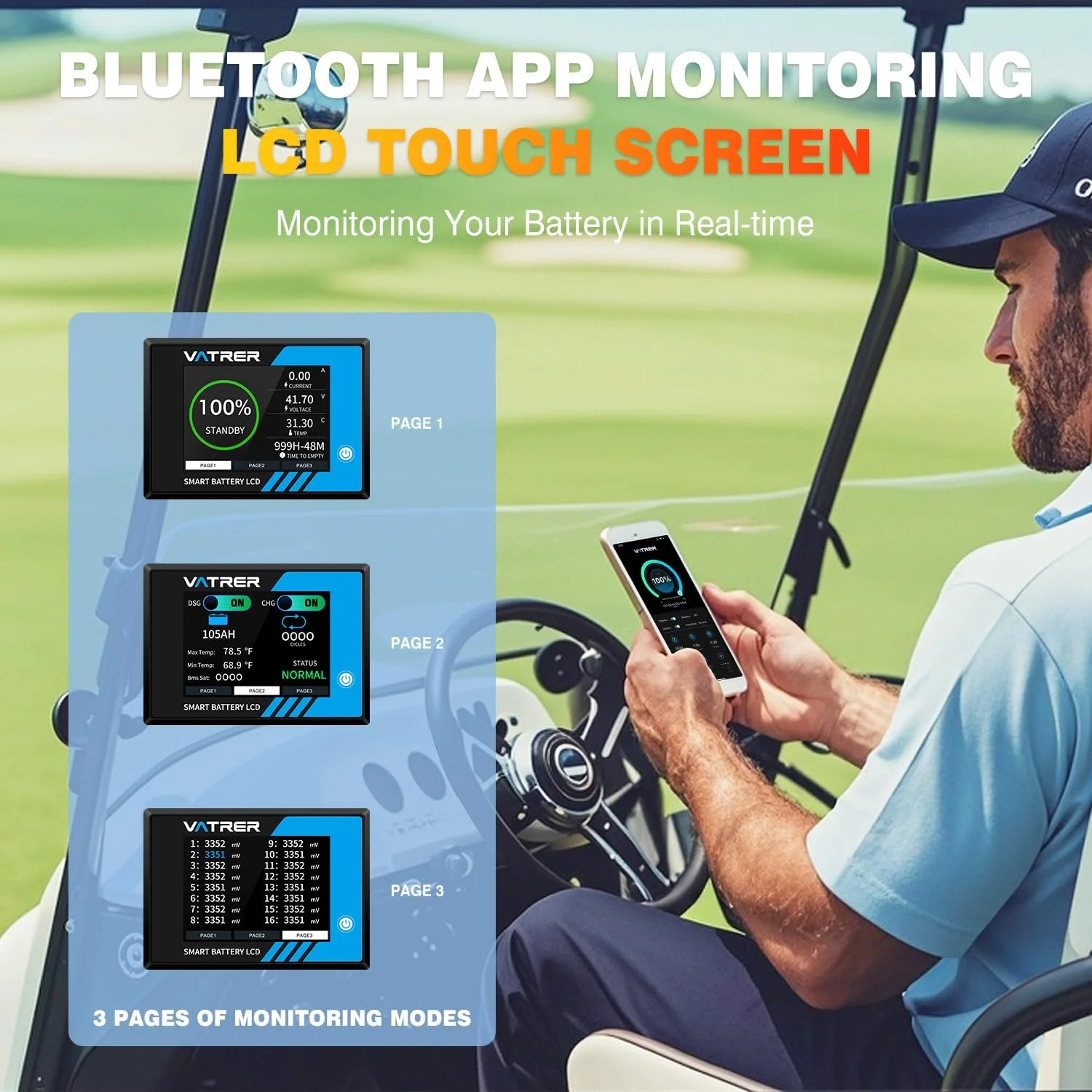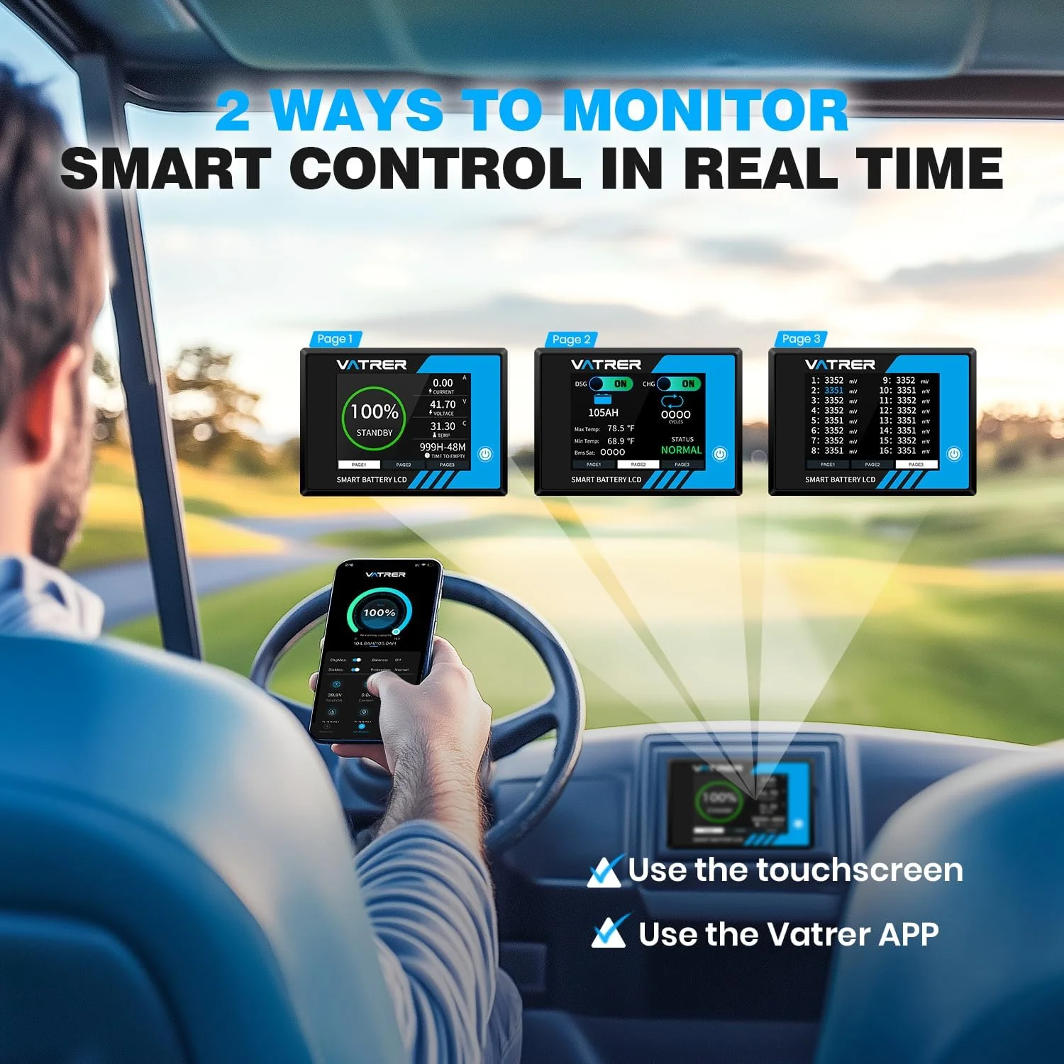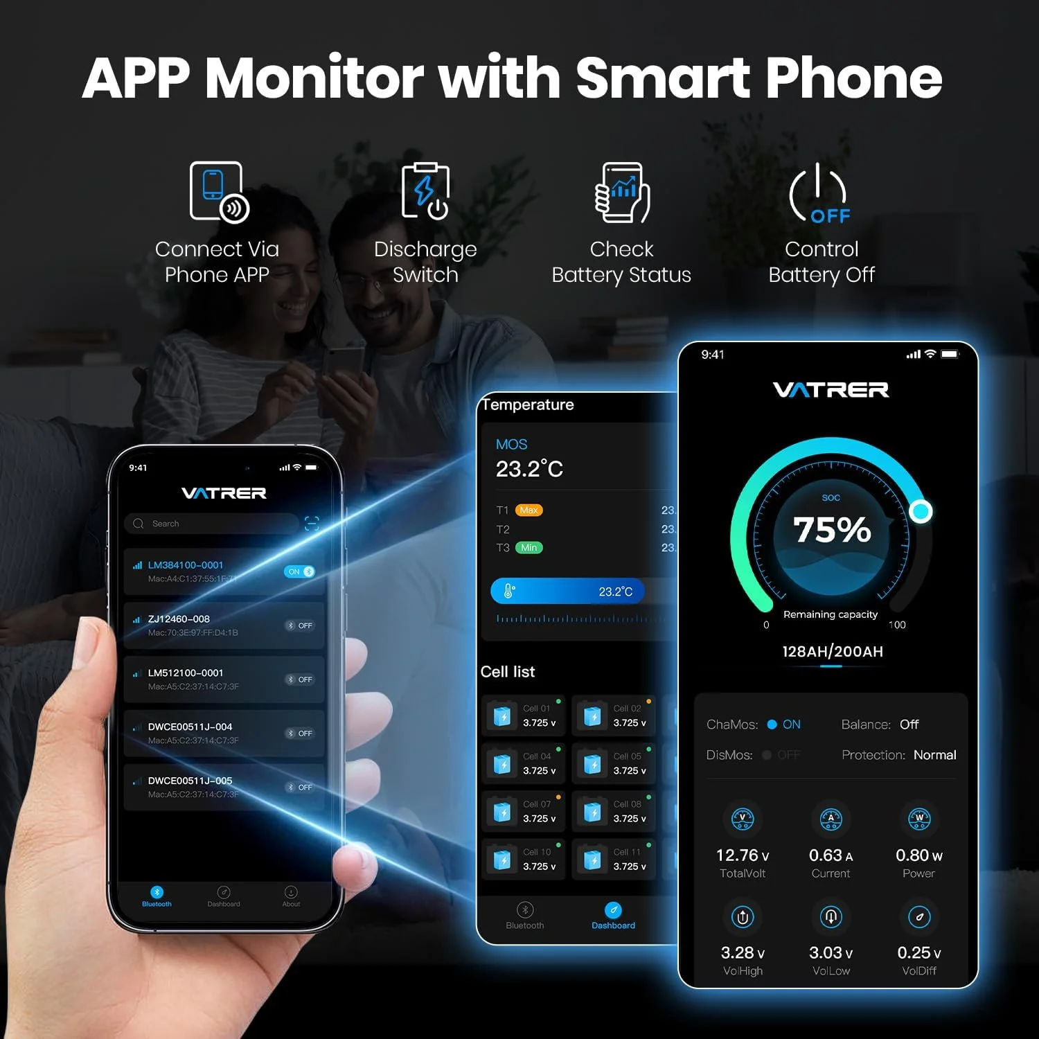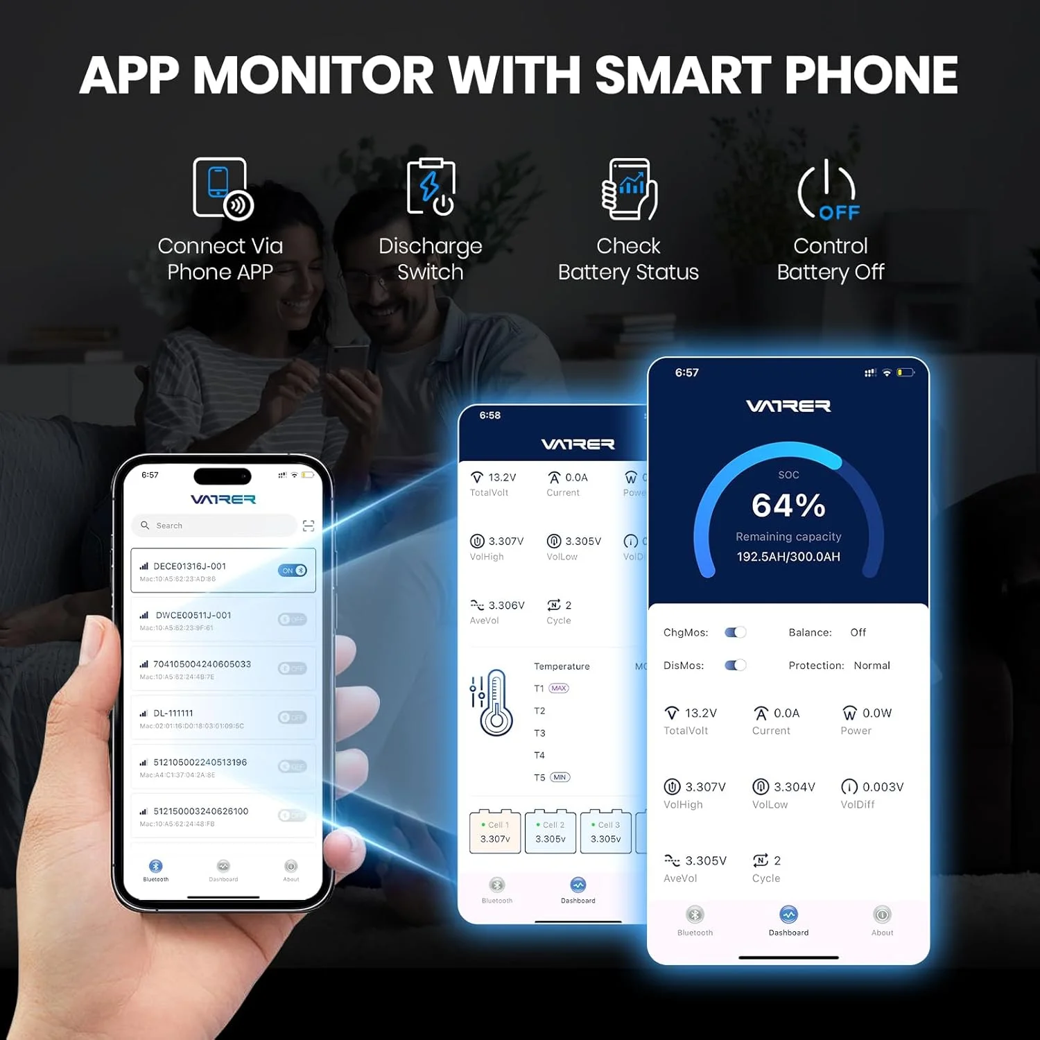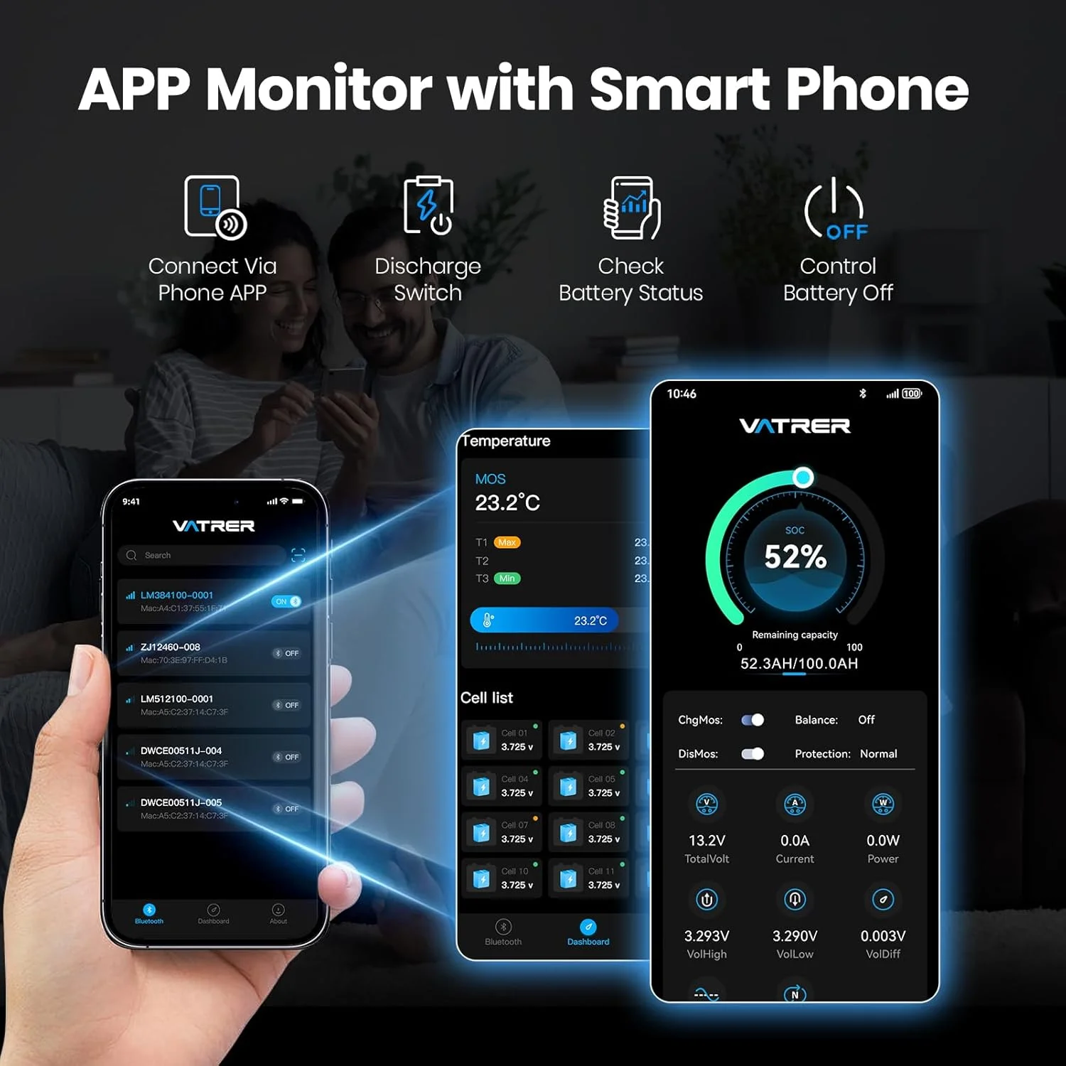 VATRER POWER 12V 100AH Low Temp Cutoff LiFePO4 Deep Cycle Battery with 1280W, Built - in 100A BMS, 5000+ Cycles Rechargeable Lithium Battery, Perfect for RV/Camper, Marine, Solar