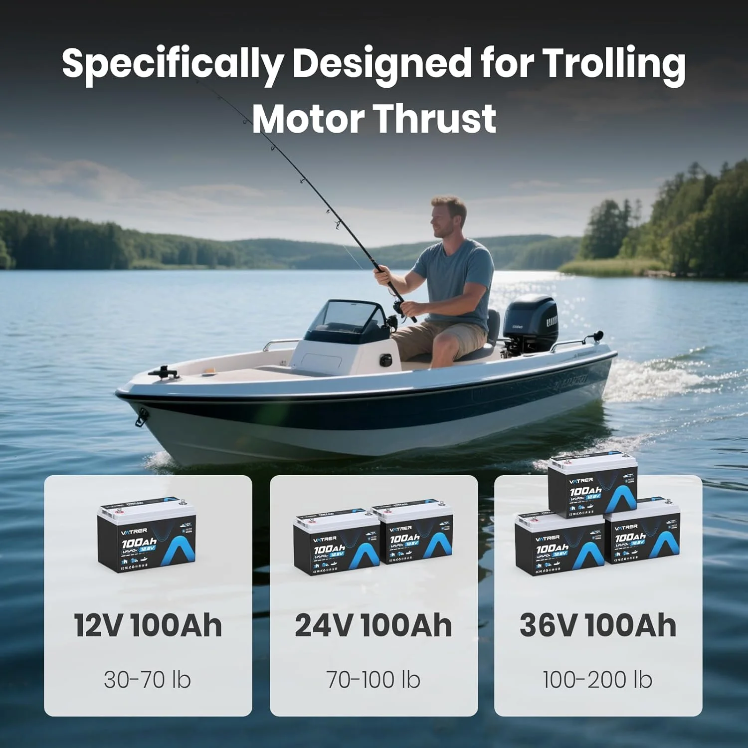 - Recommended for use with 20-70 lbs thrust trolling motors.