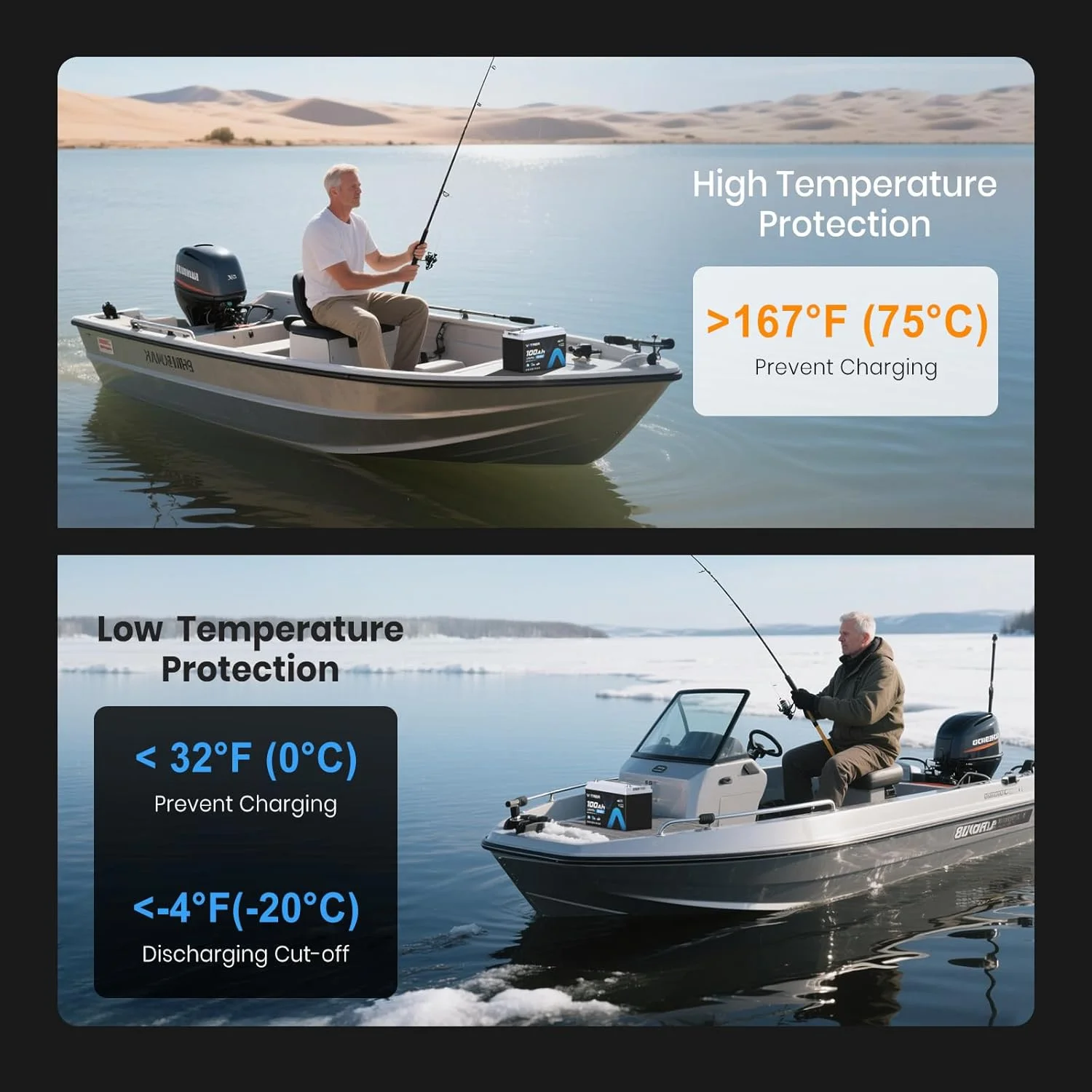 - Includes low temperature cutoff protection to prevent battery damage in cold environments.
