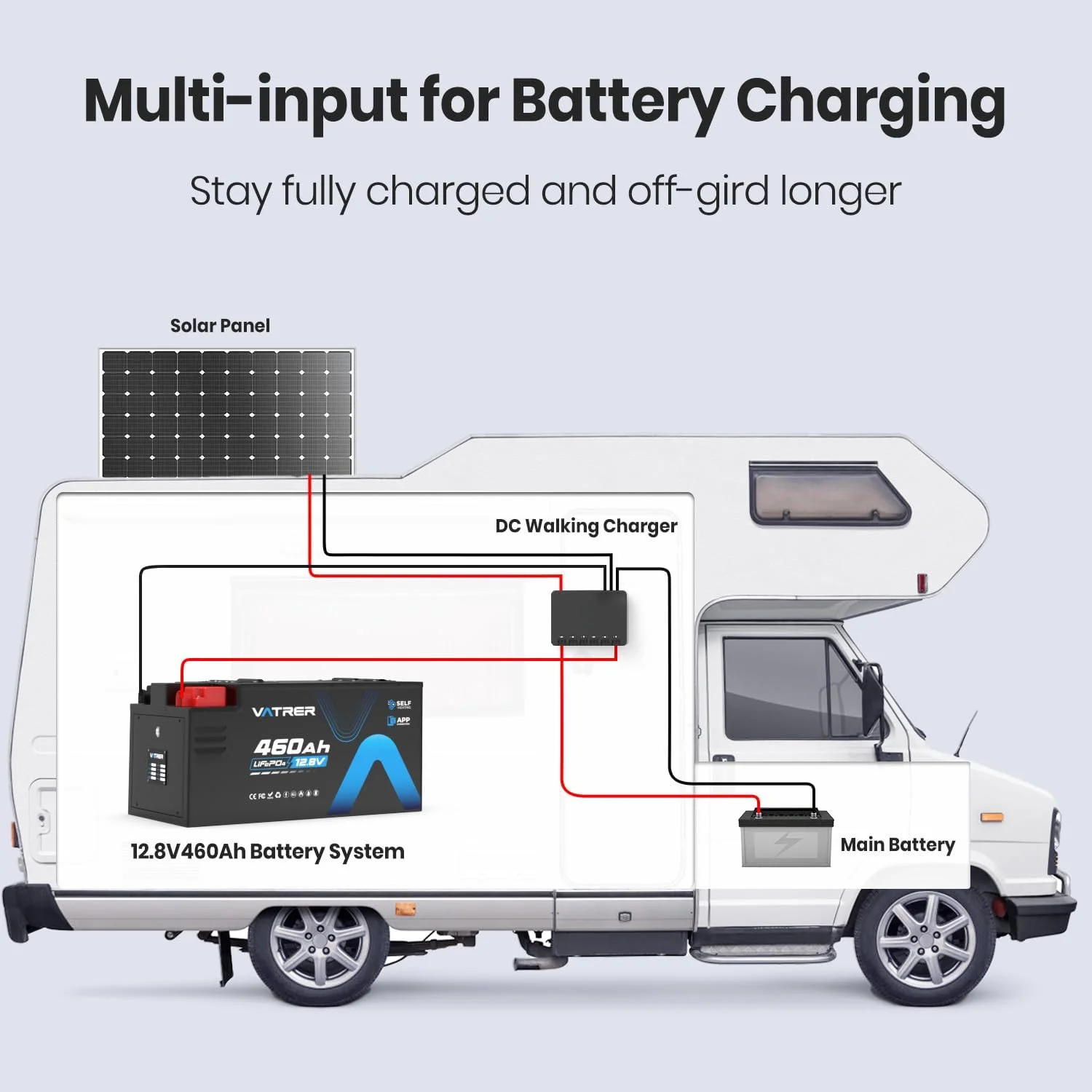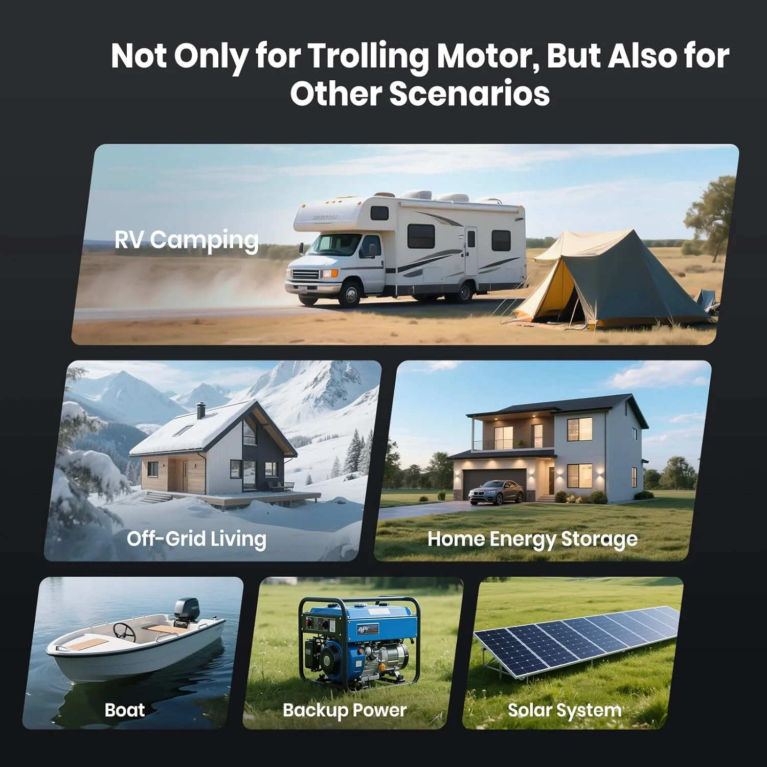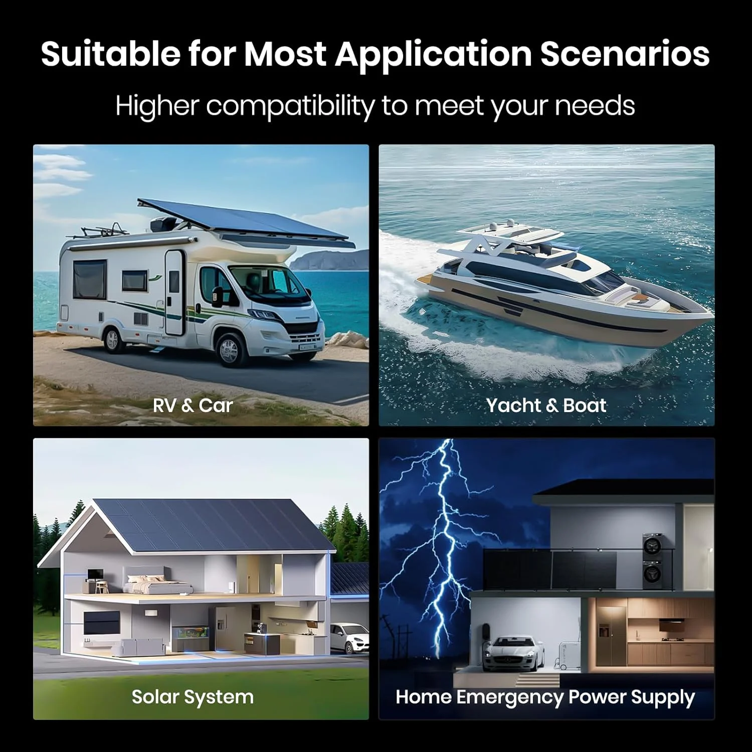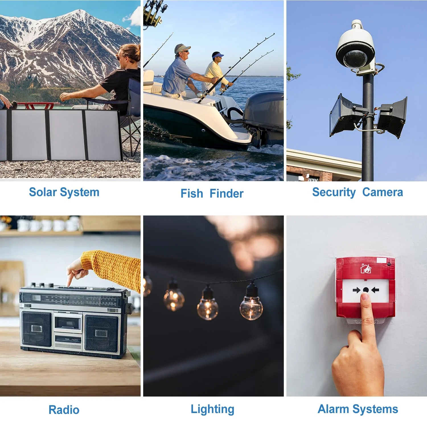 - Ideal for a wide range of applications including RVs, campers, marine vessels, solar power systems, and off-grid setups.