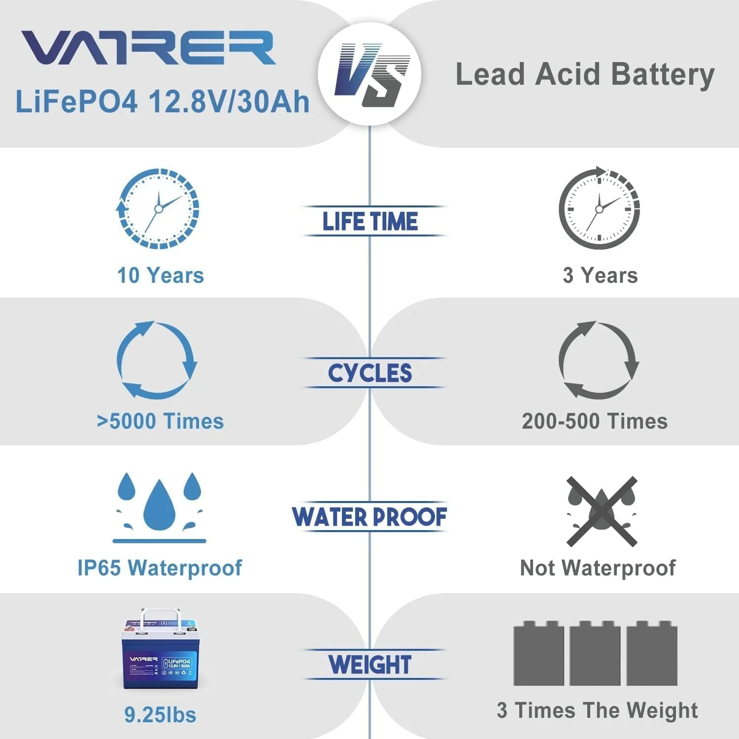 - Weighs 30% less than comparable lead-acid batteries, enhancing portability.
