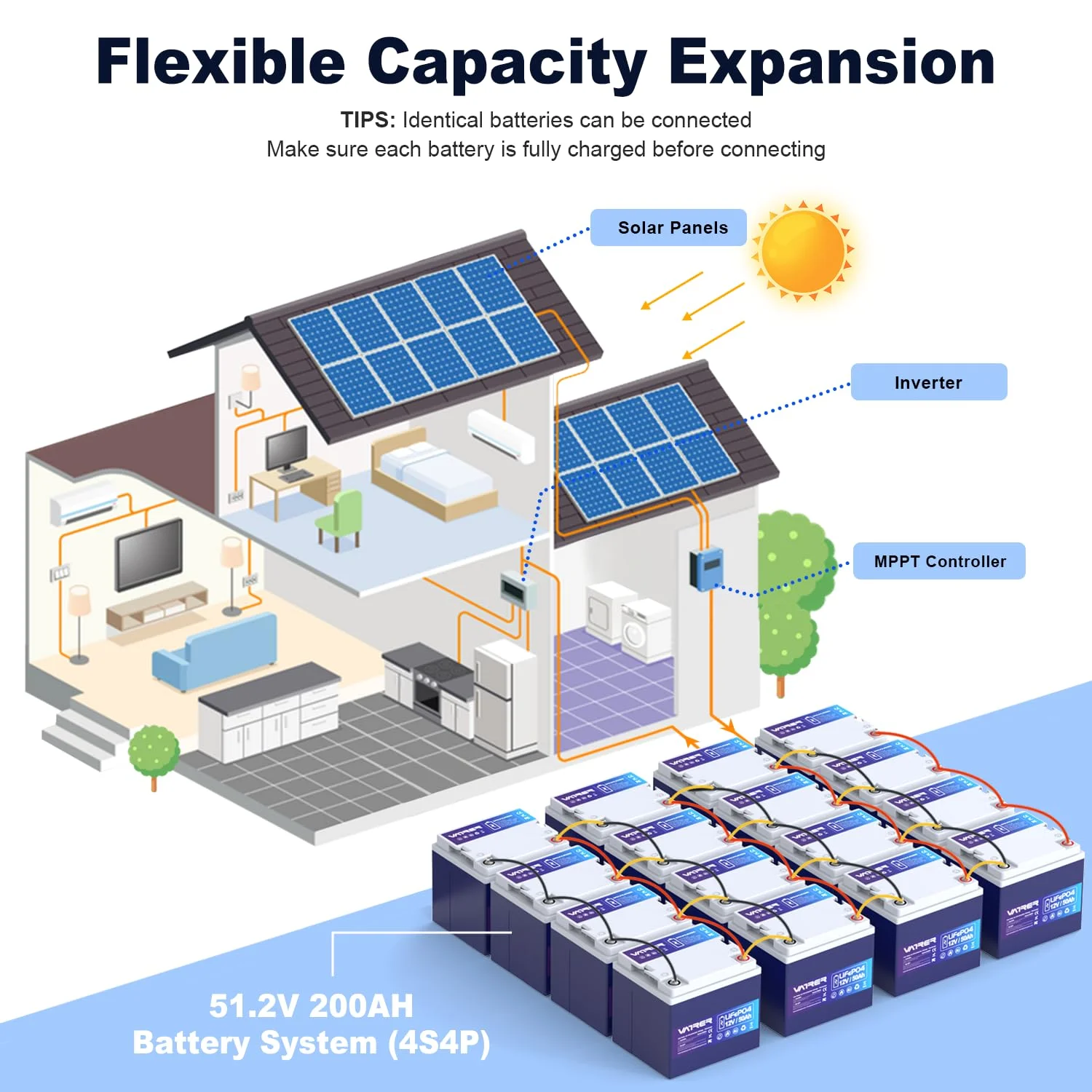 - Expandable for up to 4 series and 4 parallel connections, suitable for various electric energy storage needs.
