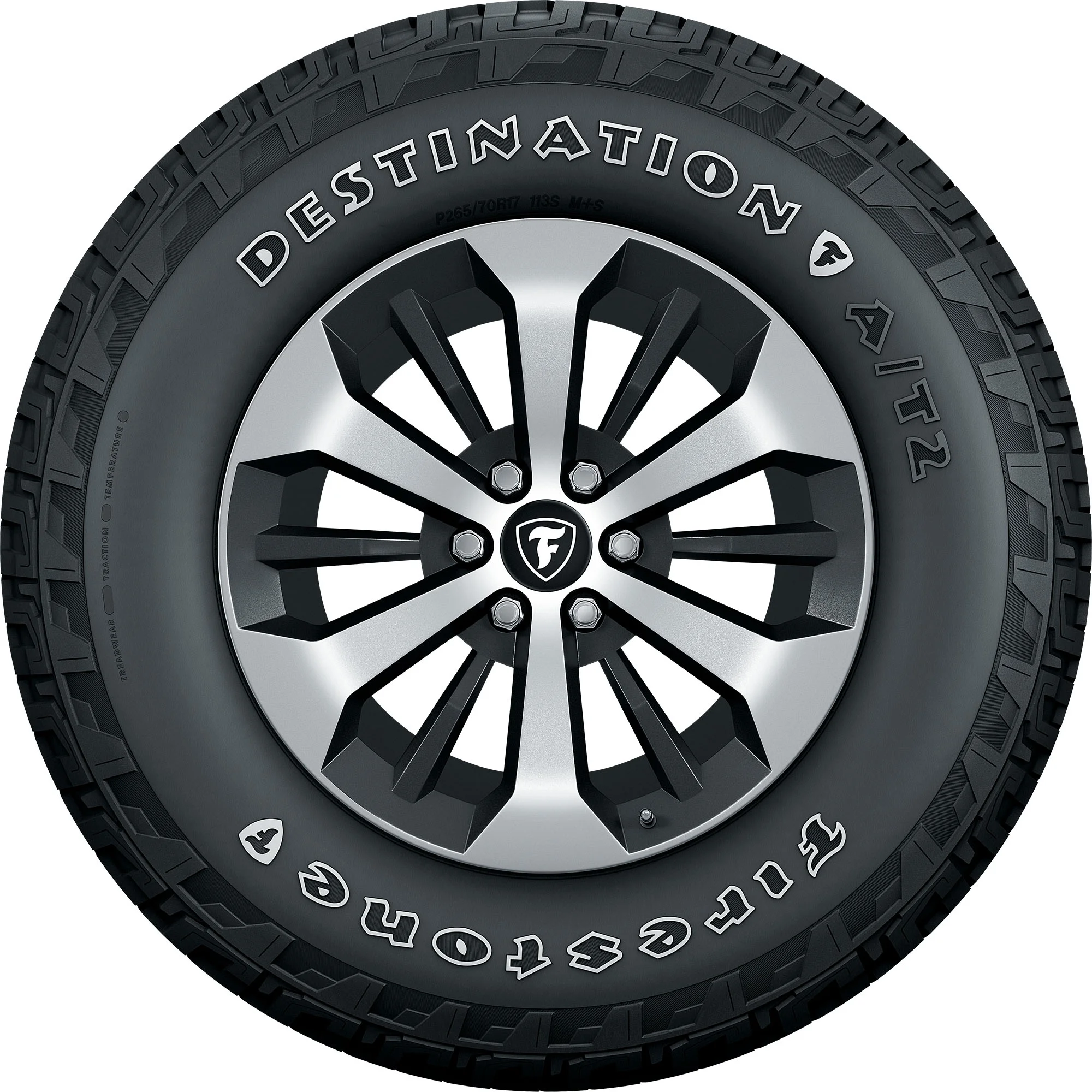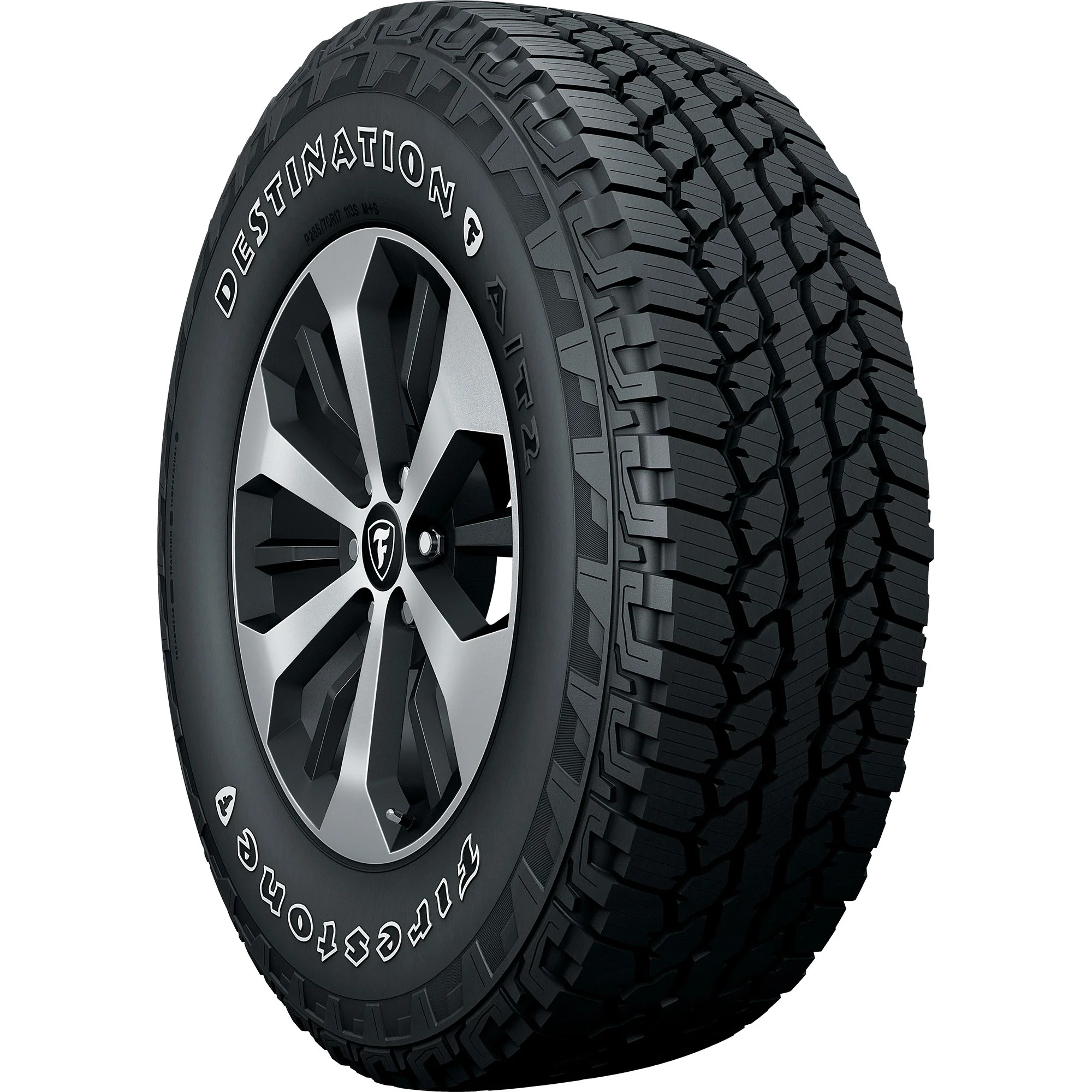 Designed for use on trucks and SUVs, the Firestone Destination A/T2 tire is a perfect choice for on- or off-road driving. The Destination A/T2 delivers great grip thanks to an aggressive all-terrain tread pattern and wraparound lugs at the shoulder, with an optimized footprint and full-depth 3D sipes. The Destination A/T2 is backed by a 55,000 mile limited manufacturer tread life, and features a stylish Outlined White Letter (OWL) sidewall.