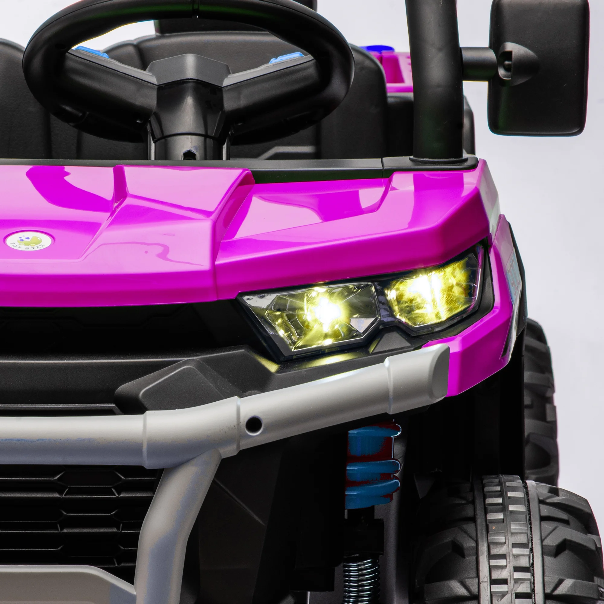 - Our kids ride on toy car is made of non-toxic PP material, which restores the elegant design details of engineering cars through features such as bright LED lights, built-in music, openable doors, and upgraded shock absorbing tires. This children's car can enrich your child's life, enhance parent-child relationships, and protect their safety. It is the perfect gift for children, on birthdays, Thanksgiving, Christmas, New Year, and more.