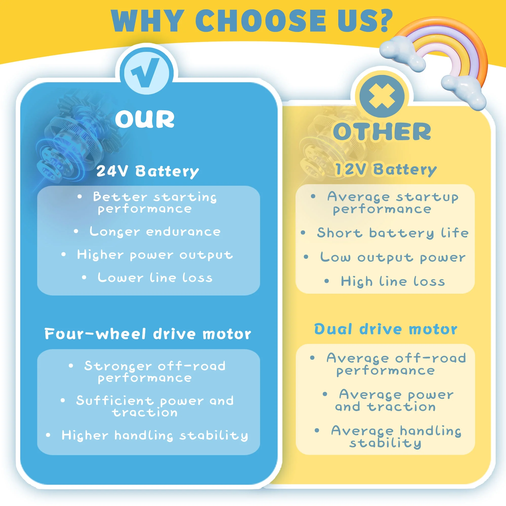 - Large 24V 7AH rechargeable battery for extended playtime