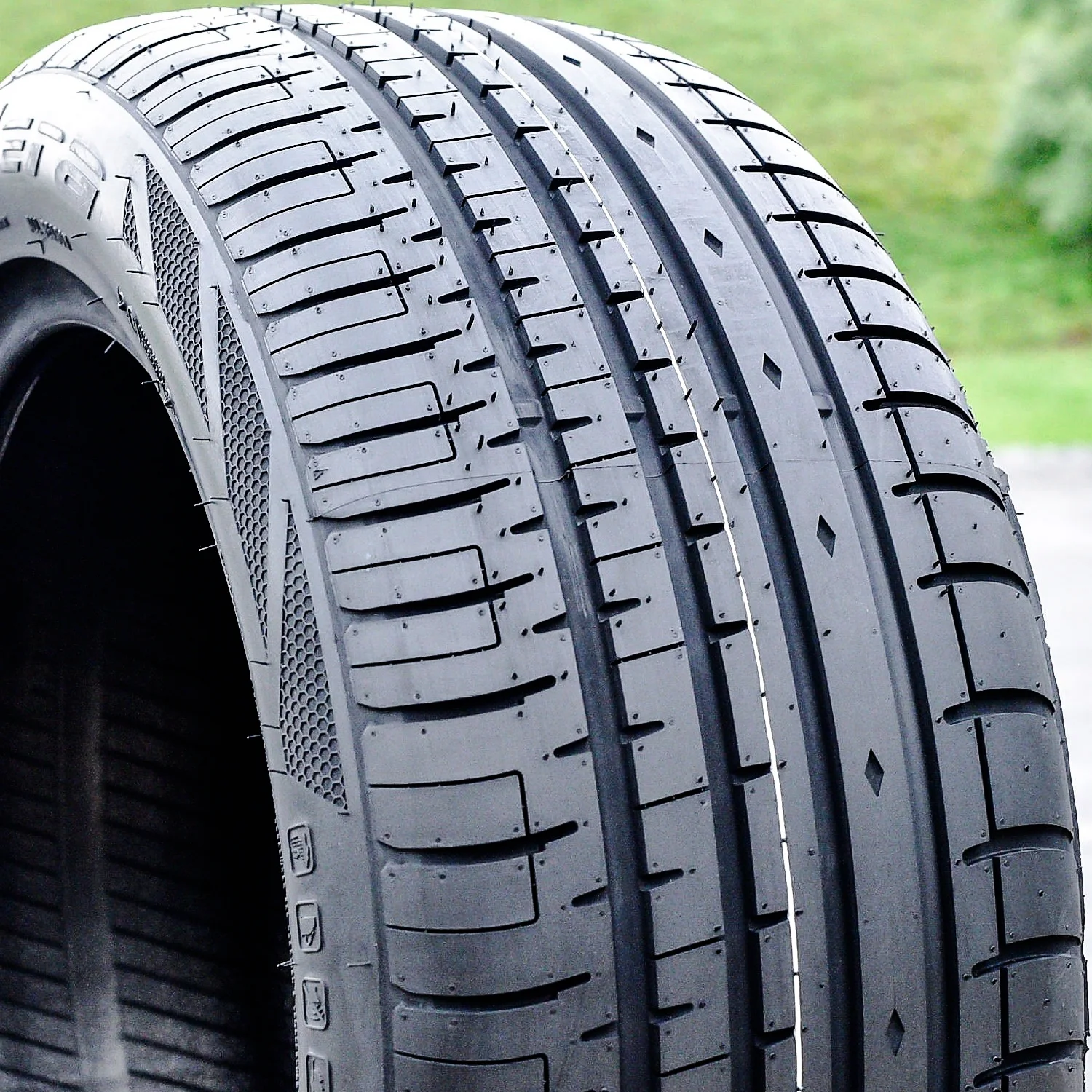 The Phi-R is a quiet and comfortable tire. The road noise heard in the cabin of the vehicle is reduced by the additional sipes in the tread pattern which channel the soundwaves through the model's footprint, making an enjoyable driving experience.