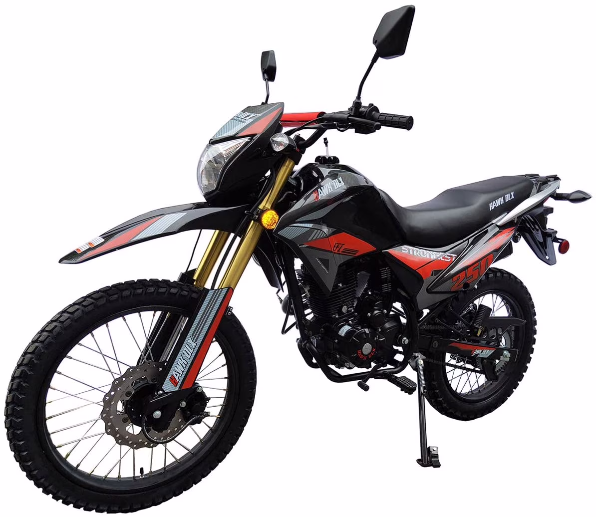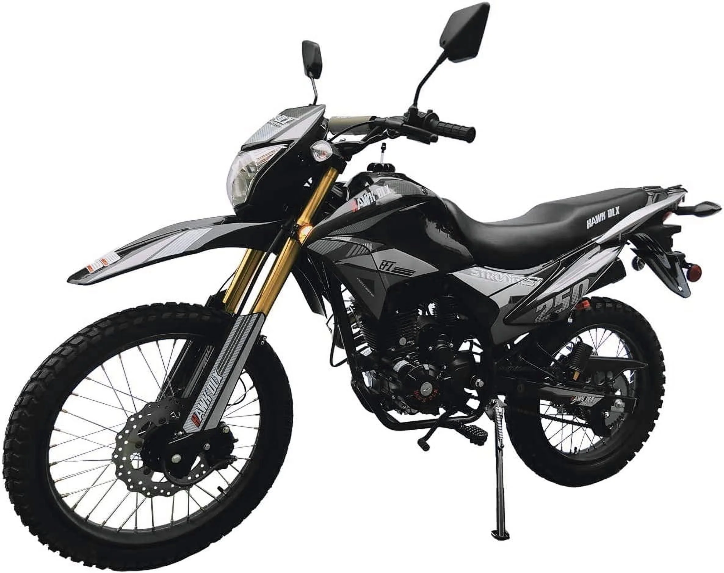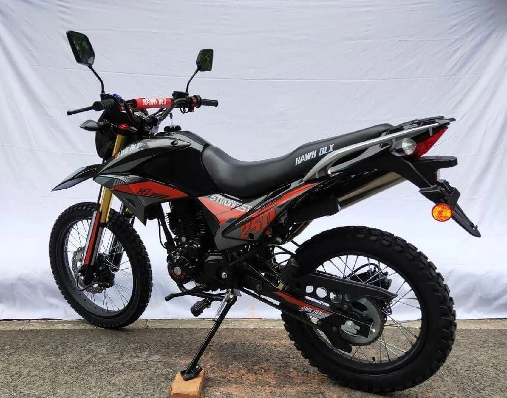 Brand New 2023 RPS Hawk DLX 250 cc EFI Fuel Injection Enduro Dirtbike Bike Hawk EFI Deluxe Gas Street Motorcycle - Colors Available. 5-Speed Manual Transmission Heavy-duty clutch offers smooth, progressive engagement and smooth shifting. Take full control of your bike, Pros best choice . Engine: 250cc, Air Cooled, 4-stroke, Multi-port Electronic Kick Start/ Electric Start, Electric start for easy starting well the kick start for back up. Front and Rear Hydraulic Disc brakes allow the bike a faster stop than other brake systems making more safer to use. The high-performance Hydraulic disc brake makes this bike expert's choice. EFI is Electronic Fuel Injection with Manual 5-speed Transmission Digital Gauges Inverted Shocks Front Suspension Single Shock Rear Suspension Front and Rear Hydraulic Disc Brakes Top Speed of 68 mph. The Hawk Deluxe EFI model is a size motorcycle for adults and youth. Colors Available: Red, Black, Blue and , Green.