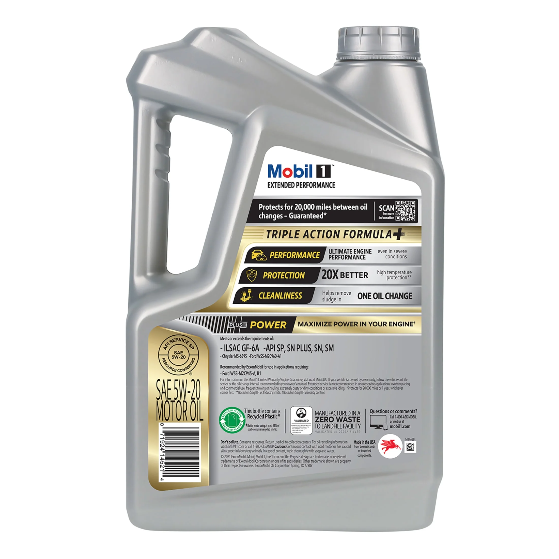- Mobil 1 Extended Performance full-synthetic motor oil 5W-20 helps protect critical engine parts for up to 20,000 miles between oil changes,* controlling oxidation to prevent oil breakdown and maintaining excellent viscosity