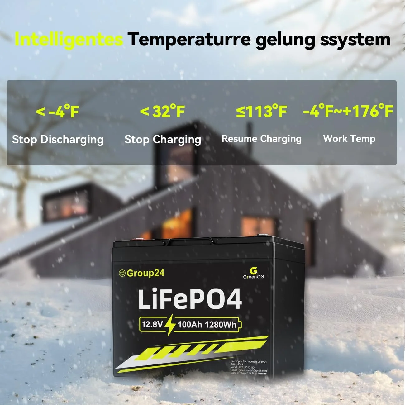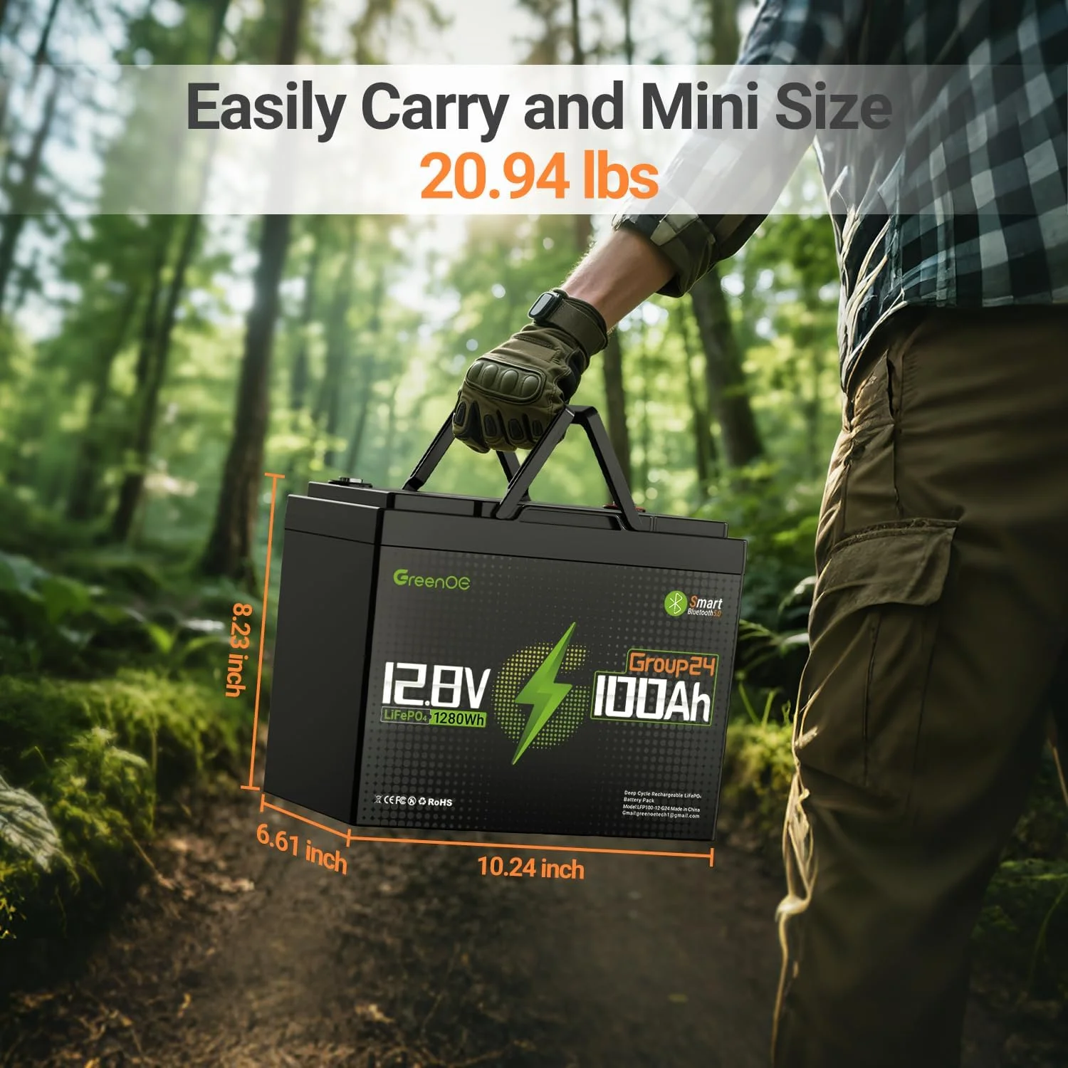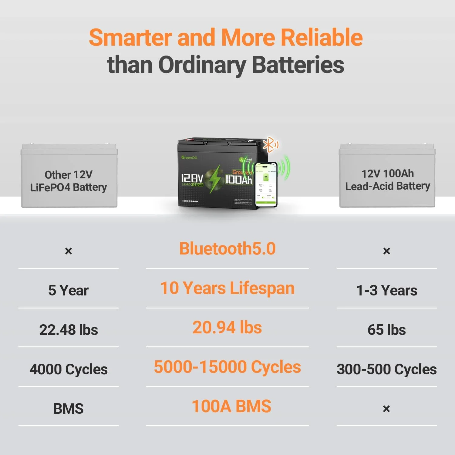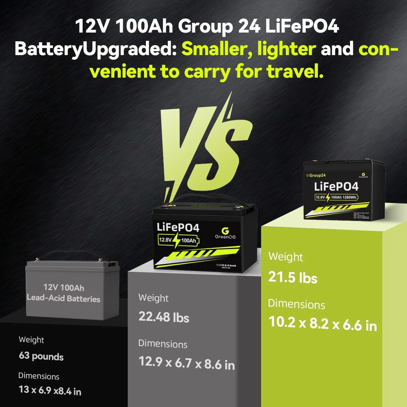 Greenoe 12V 100ah LiFePO4 Battery Group 24 with Built - in 100A BMS, 15000 Deep Cycles Rechargeable Lithium Battery Perfect for Solar System, Rvs, Marine, Vans, Trailer, Backup