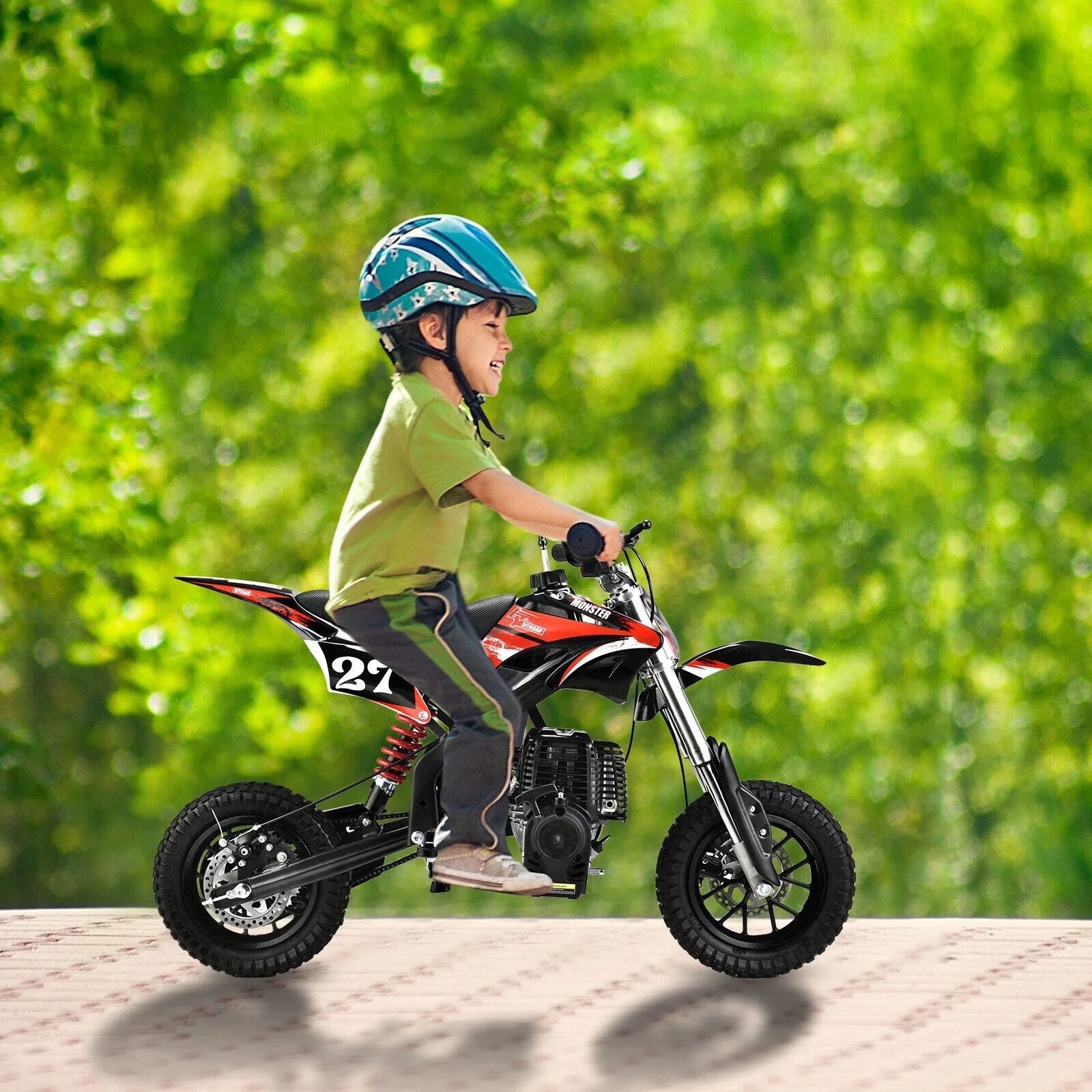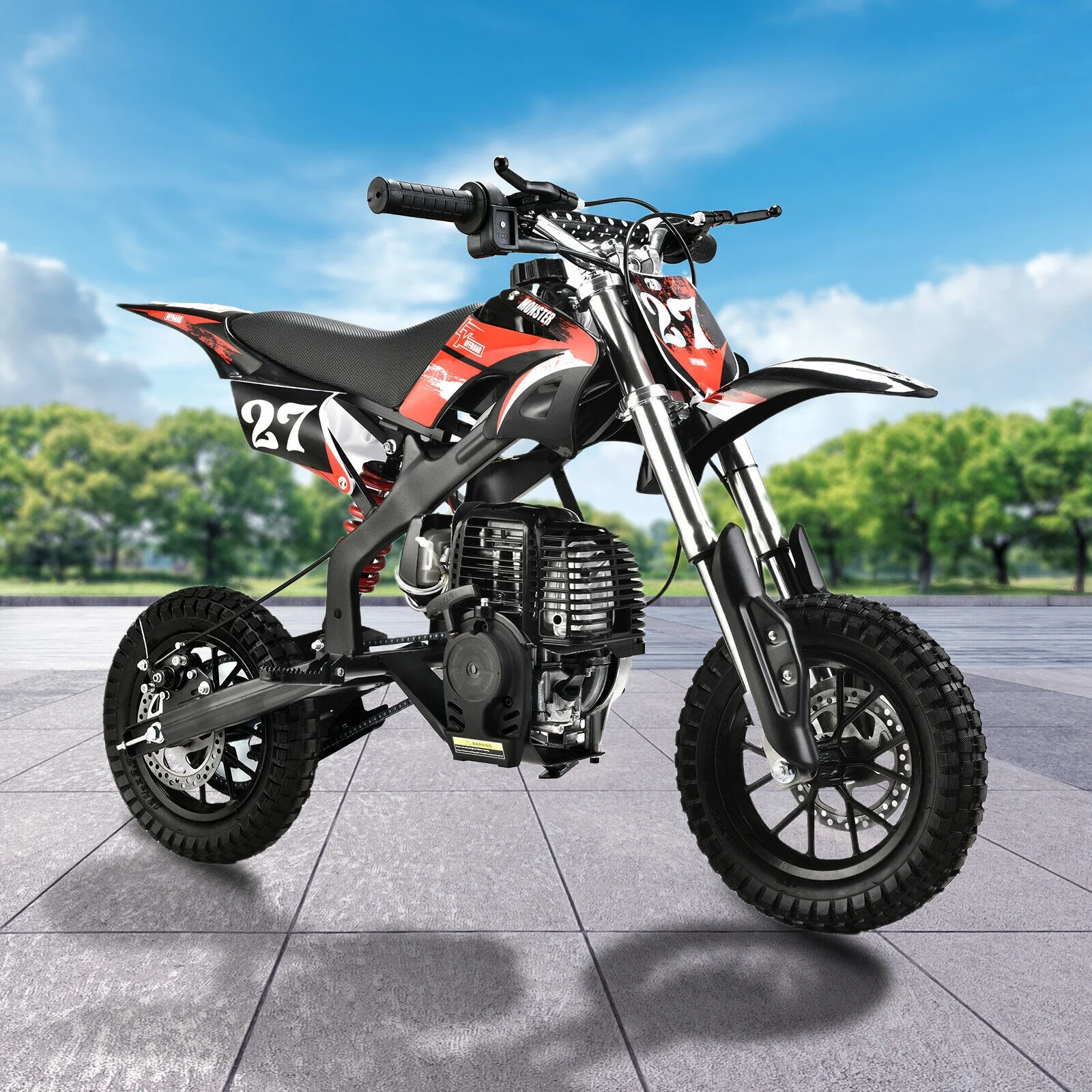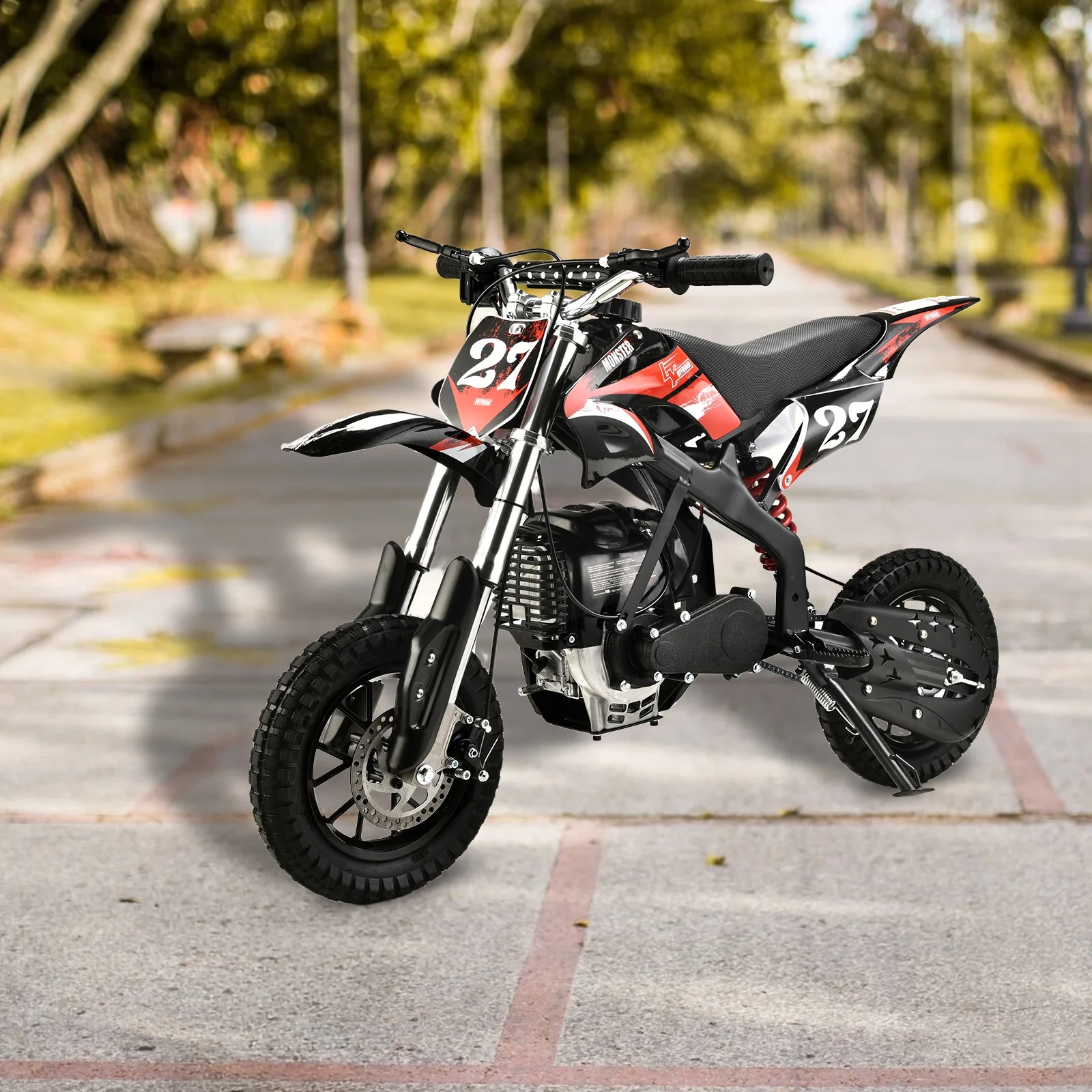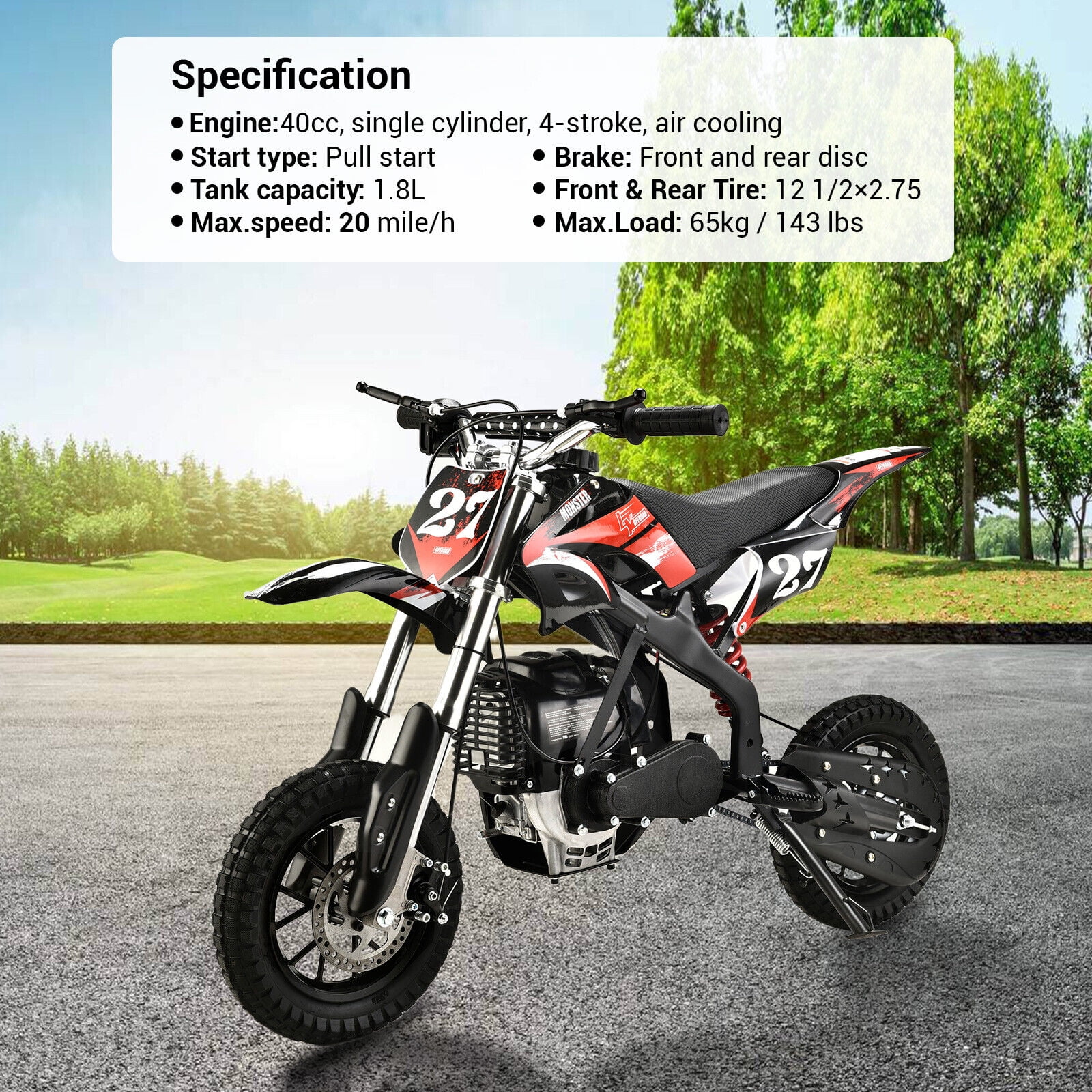 - Gas powered mini dirt bike brings an amazing riding experience just as a real motorcycle.