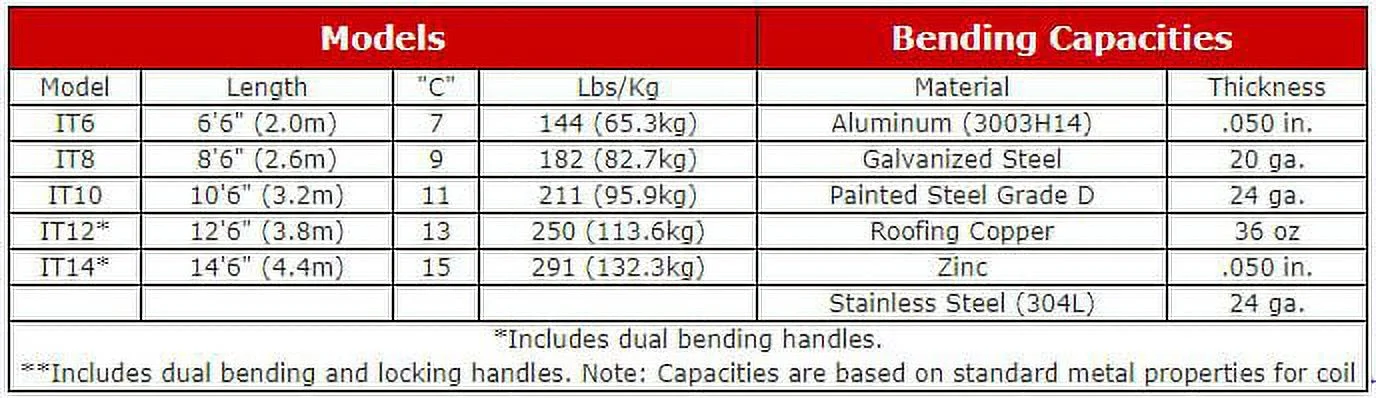 - Bending handle is ideal for bending and hemming full length 8ft.+ pieces