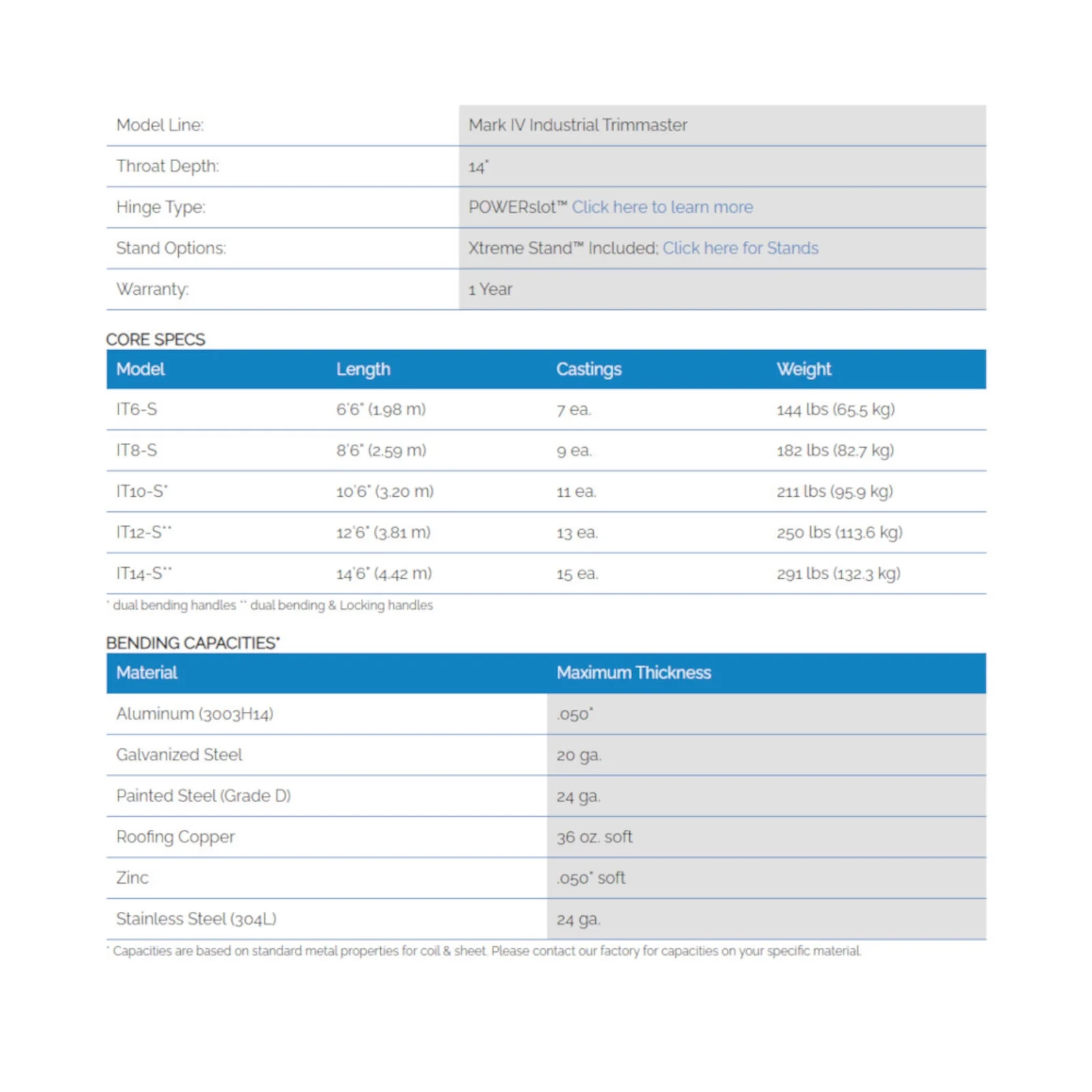 - Power Lock bar provides crisp bends without oil canning/warping