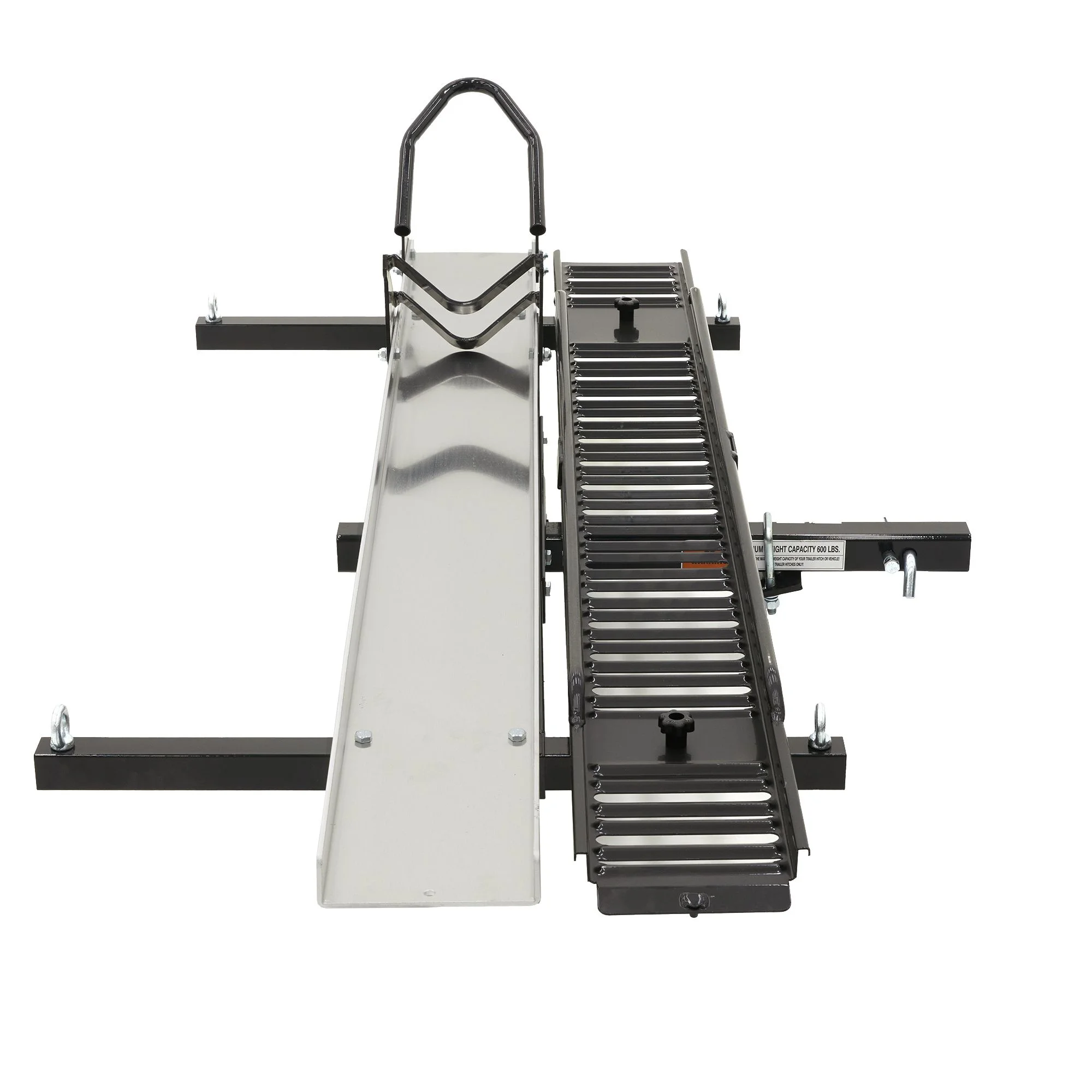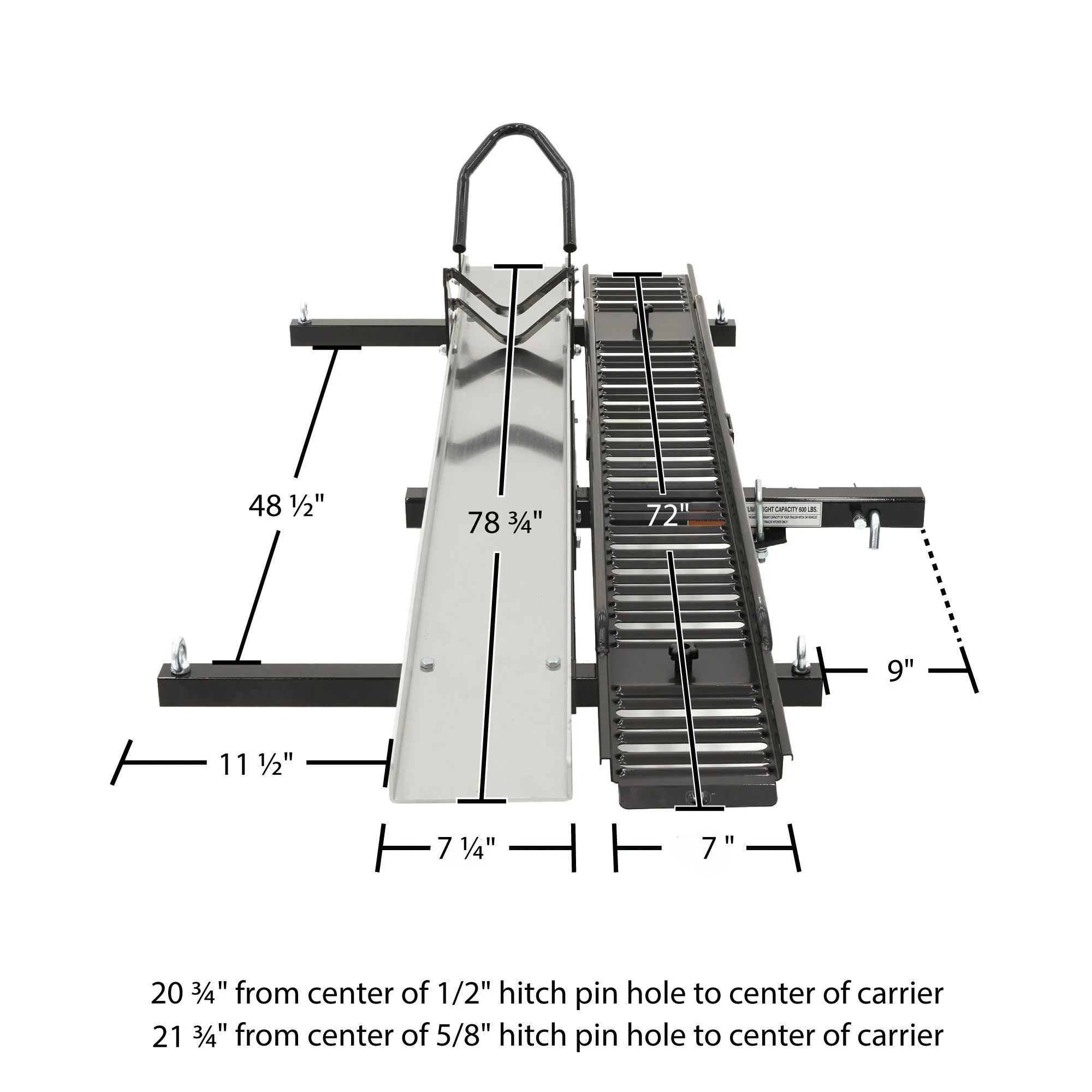 - Works with 2in Class III or IV hitch receivers; loading ramp can be stored on the carrier when not in use