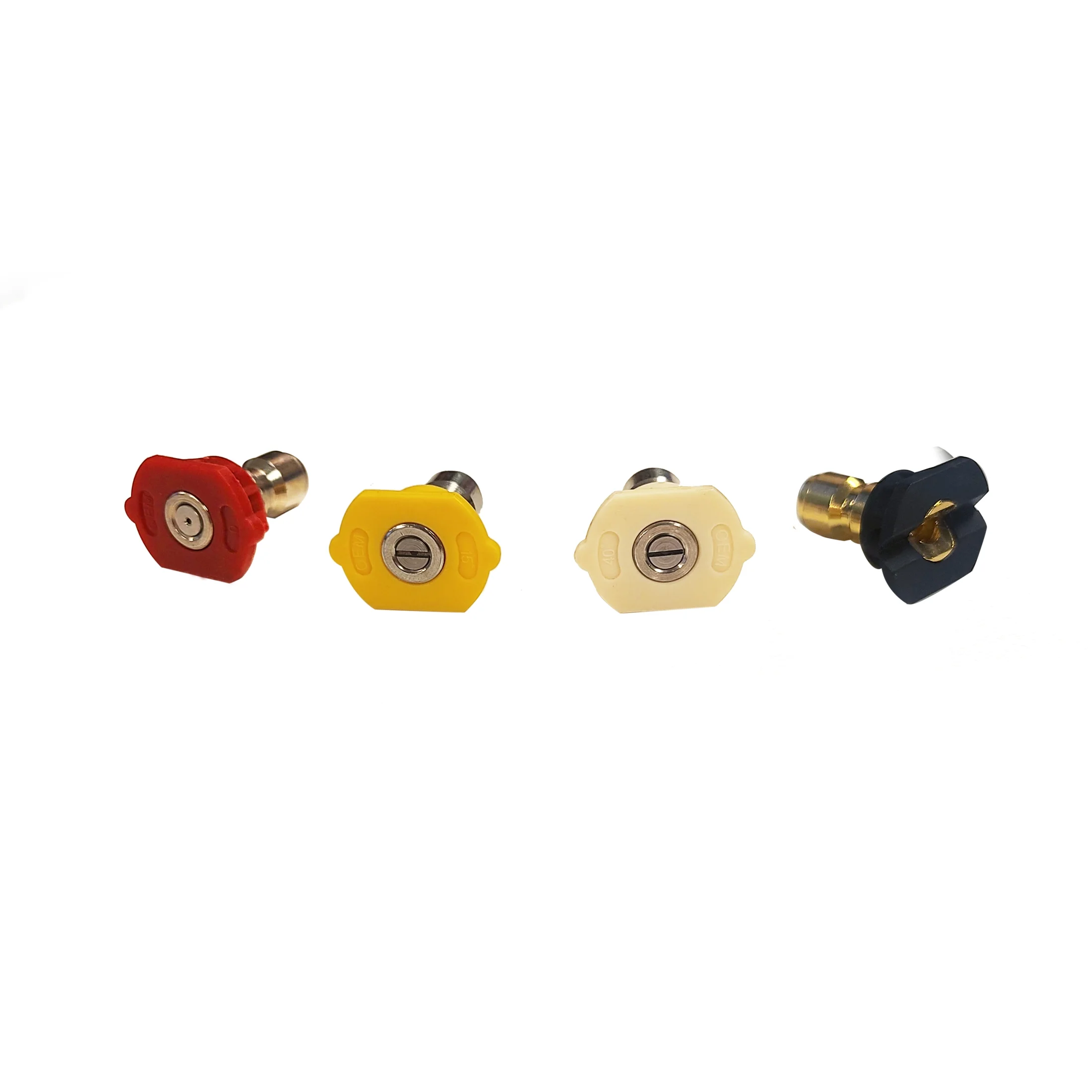 - Contains pressure washer, hose, 4 nozzles (0,° 15°, 40° degree nozzles and soap nozzle) for various pressure washing needs: hard to reach areas (0°) , brick, concrete (15°), screen and windows (40°)