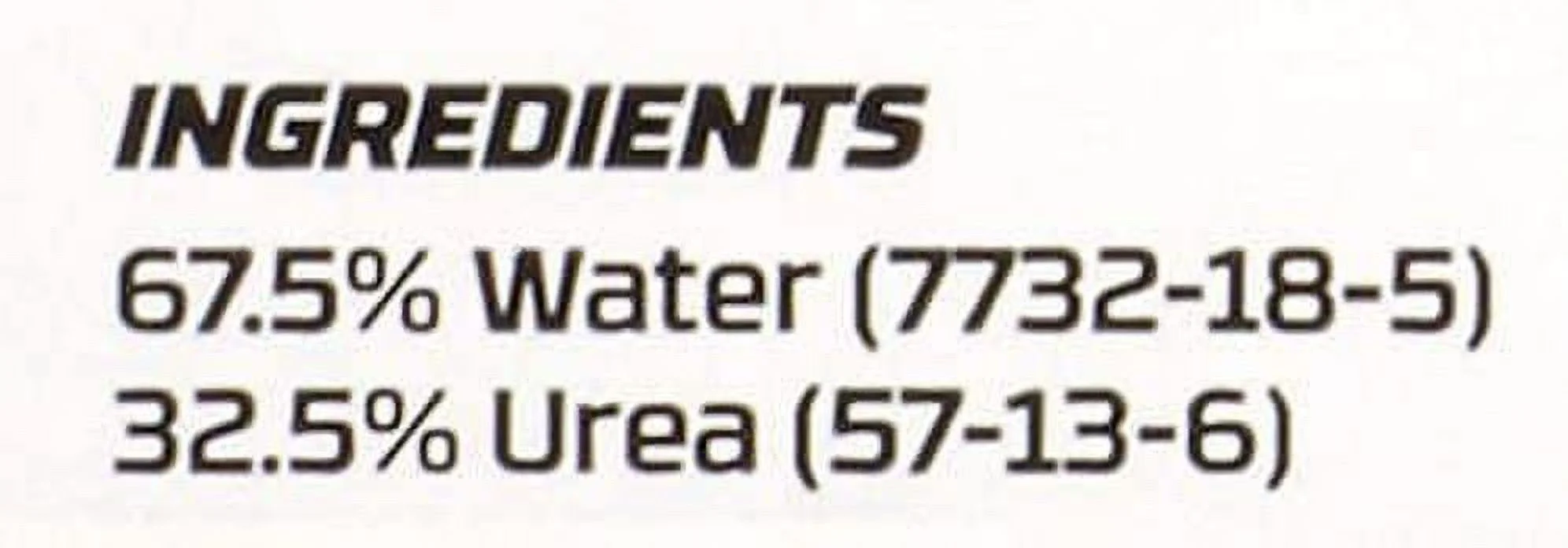 - Mixture of 32.5% high-purity synthetic urea and 67.5% deionized water for effective emissions control