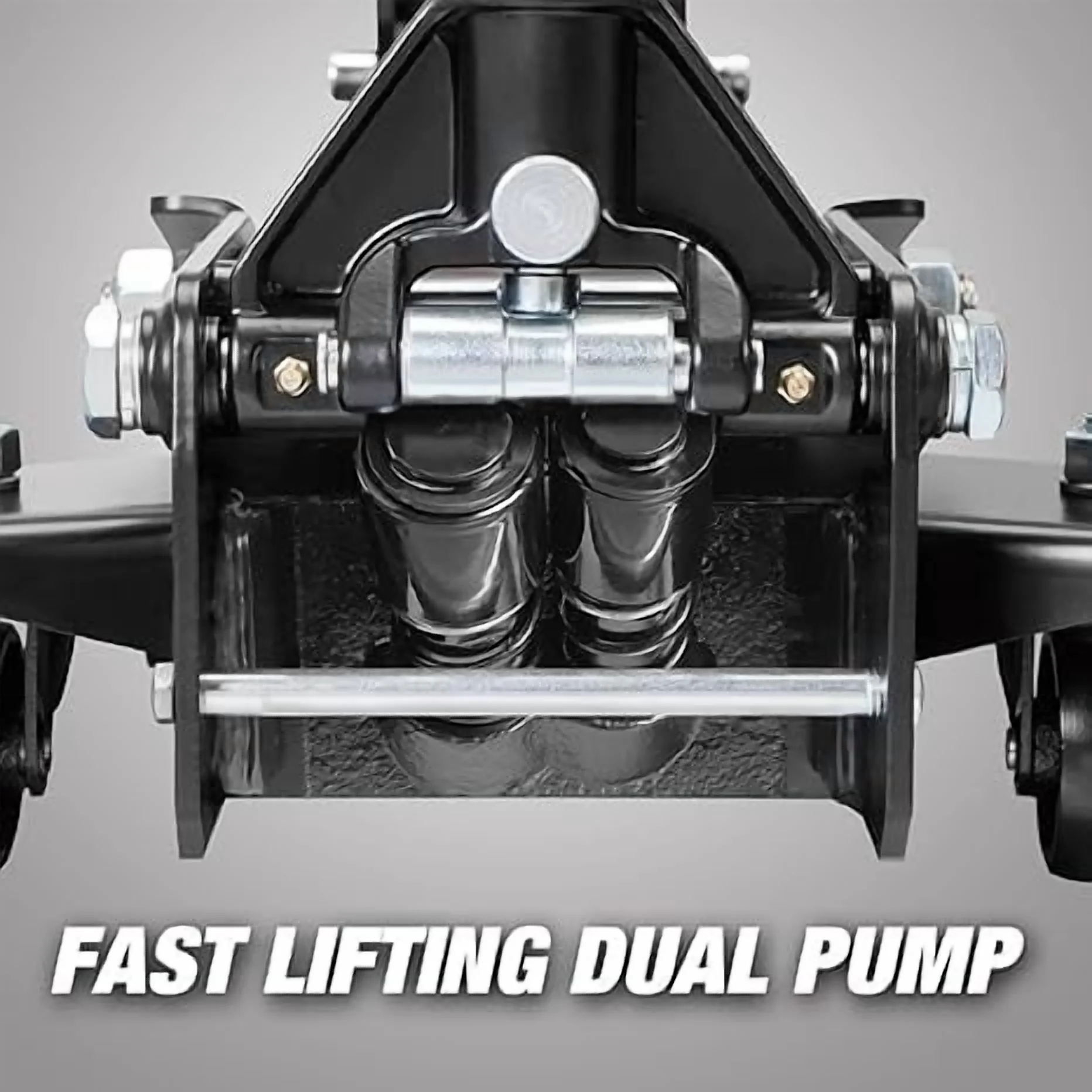 - High Opeartion Performance with Dual Piston: Unique reinforced structural foldable arm gives more lifting choices; Features thick u-channel frame side plates for stablilty and durablity as well as a sealed cast iron pump base that operates double pistons for faster rising action