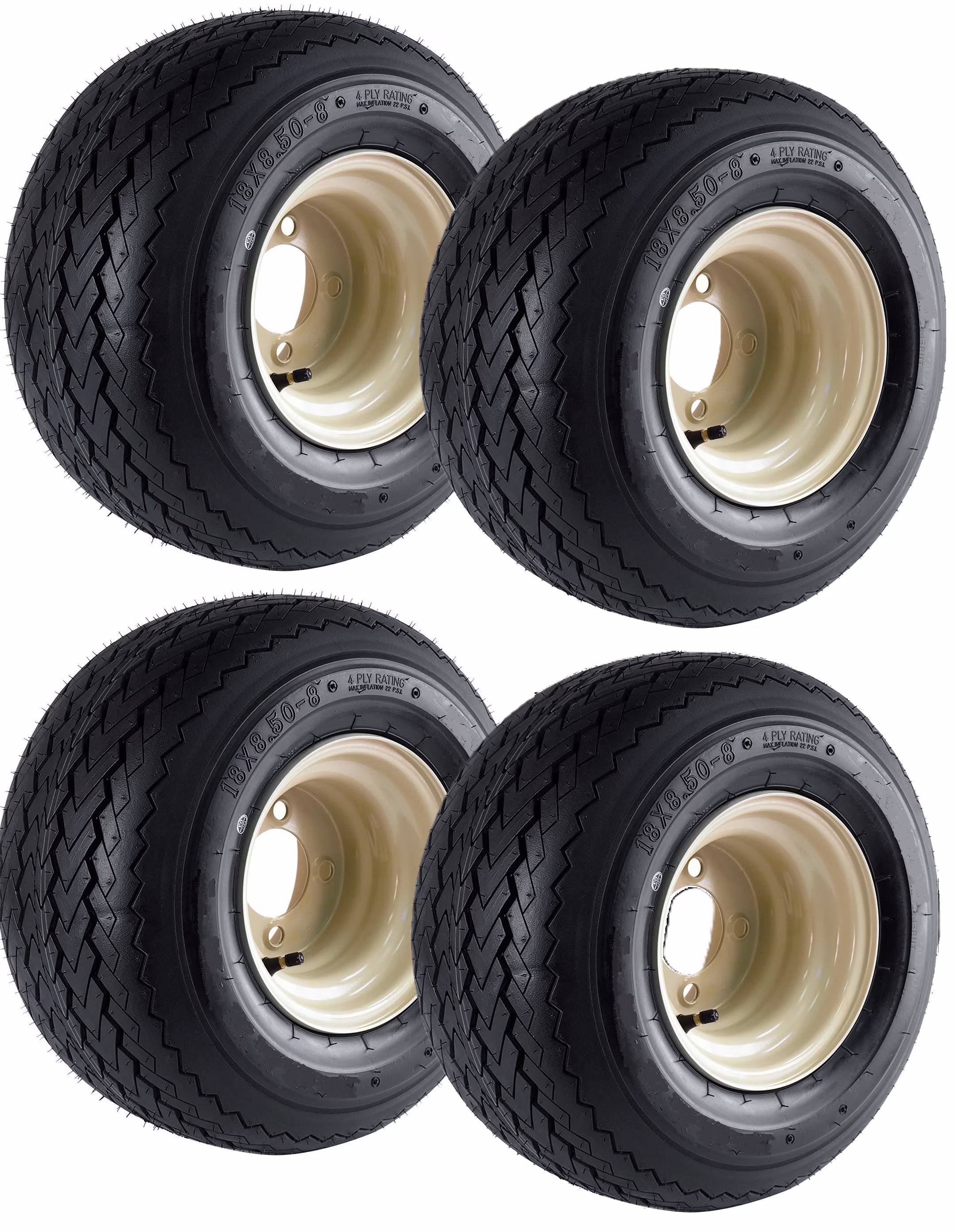 - 4-Pack Trailer Tires & Rims Bias Ply 18-8.50-8 Load B 4-4 Beige Conventional 8