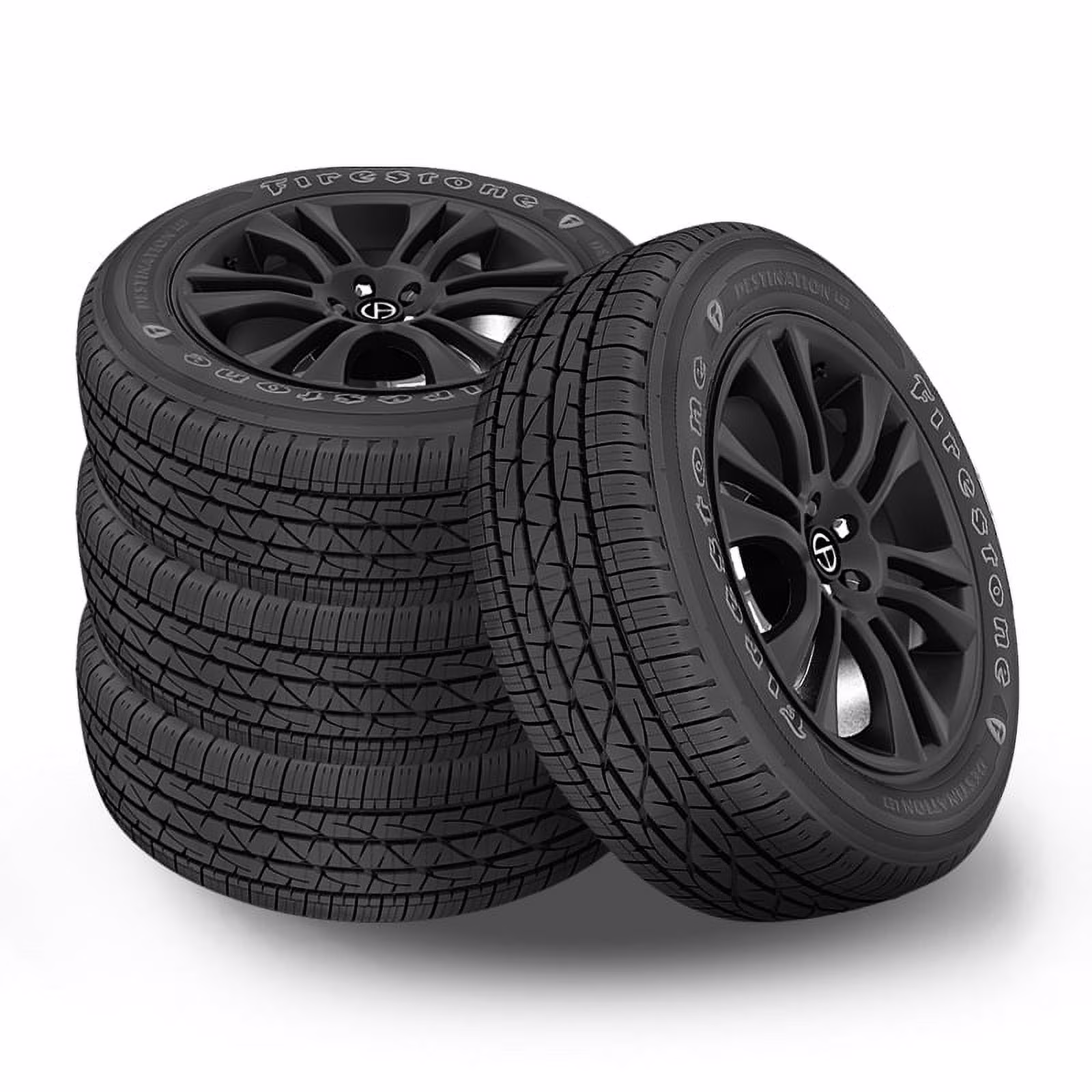 - The Firestone Destination LE3 OWL is a highway terrain, all season tires made for small trucks and SUVs. The model has numerous touring tires available for passenger cars. The tread comes with particularly detailed siping that enhances traction in various weather conditions. Firestone offers a 70,000-mile treadwear warranty.