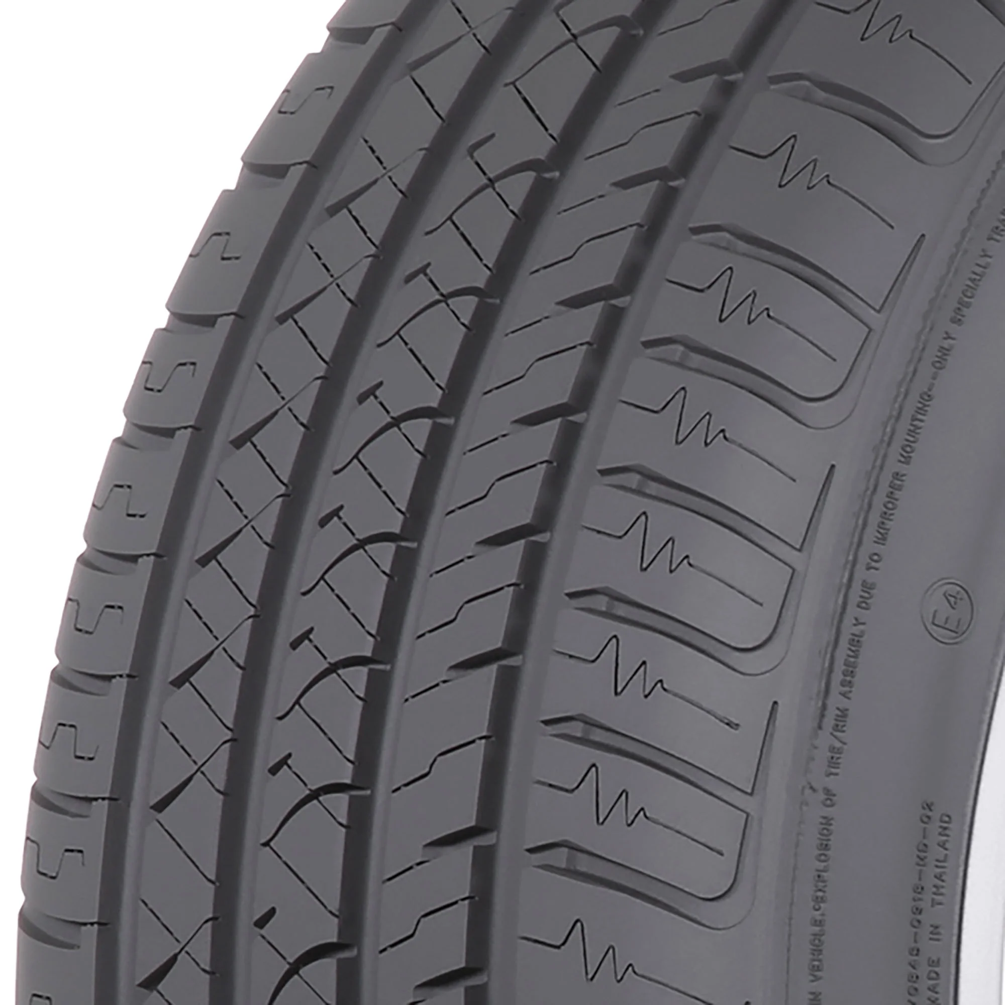 - Tread pattern and rubber compound are optimized for all-weather traction and long wear