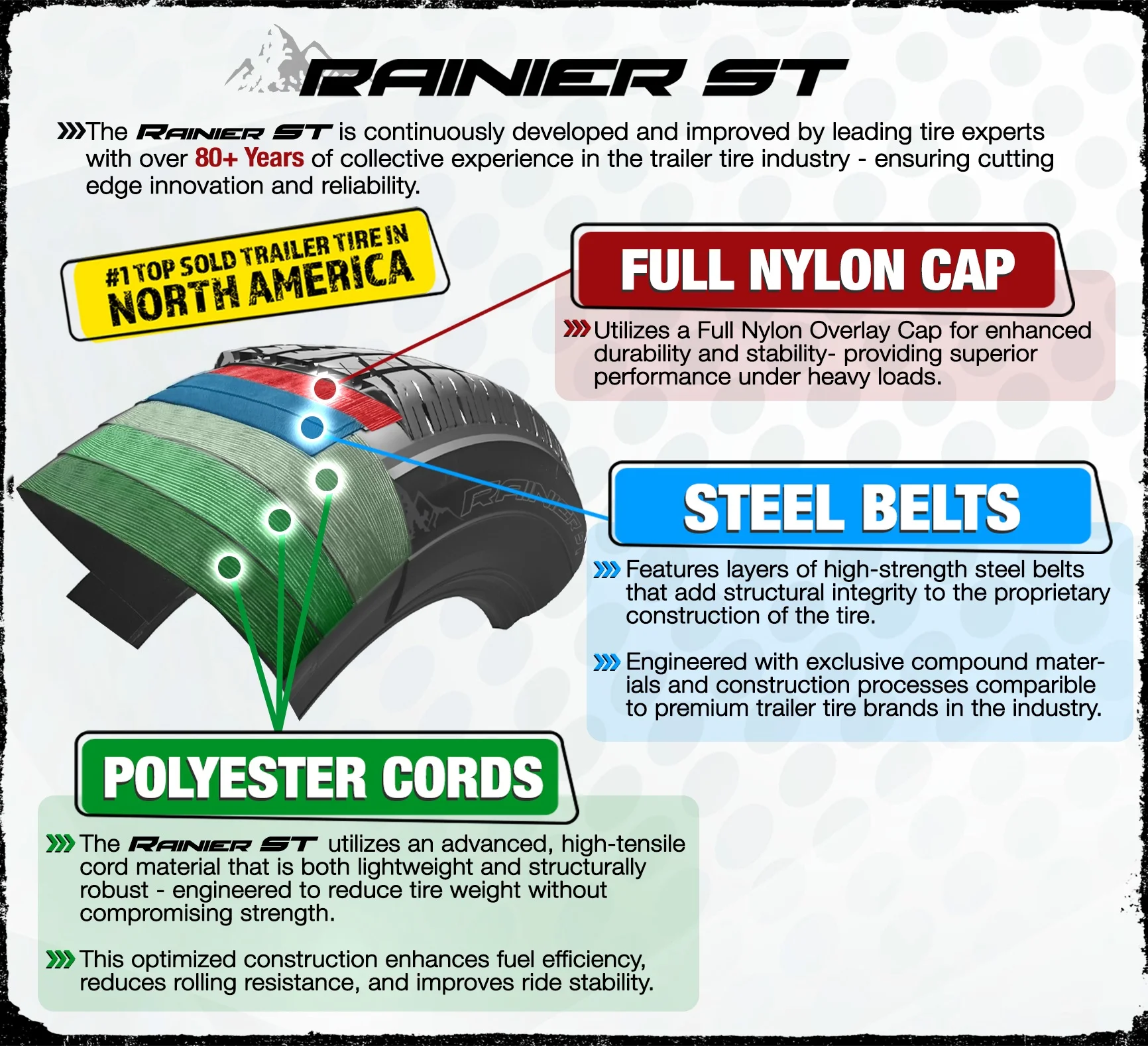 - Extra Thick Rubber: Incorporates more rubber in the sidewall than standard trailer tires to achieve its bold visual profile and added durability