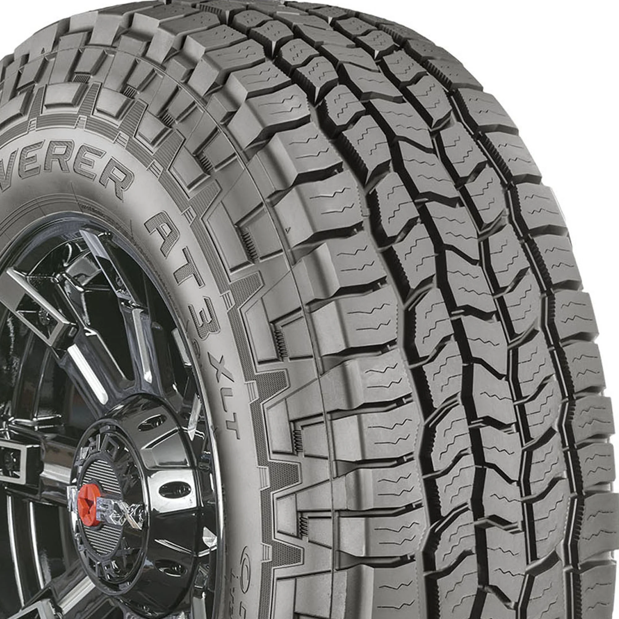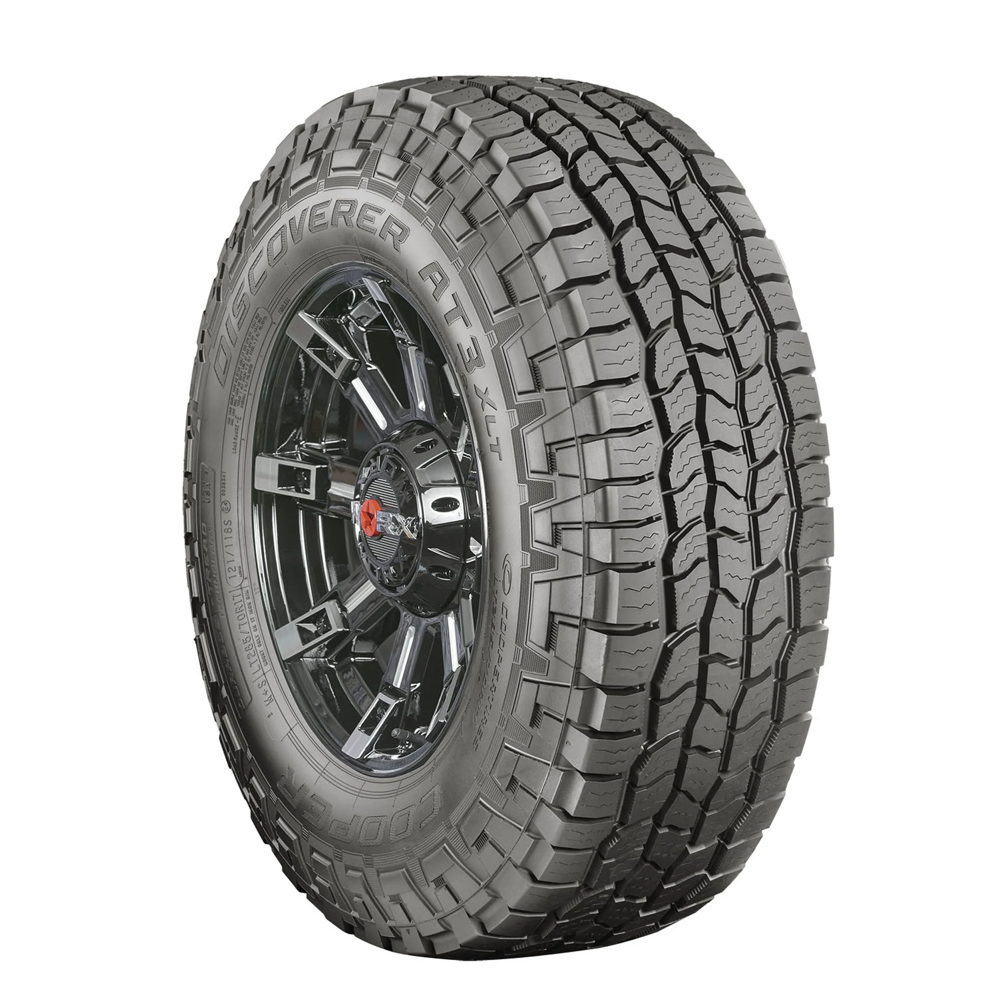 Whether your destination is the jobsite, a fishing spot off the beaten track or the grocery store, the Cooper Discoverer AT3 XLT tire is ready with a durable design, dependable off-road traction, and good road manners and ride on the pavement for your light truck or SUV. The Discoverer AT3 XLT features Cooper's Durable Tread Technology for enhanced load rating and long wear, while the Secure-Grip all-terrain tread pattern features deep grooves, stone ejectors, and rugged shoulders for great traction in mud, snow, sand, and gravel. The Discoverer AT3 XLT's Whisper Grooves are a system of sound buffers to reduce road noise and improve ride comfort, and the tire is also backed by a 60,000 mile limited manufacturer tread life for more miles and fun.