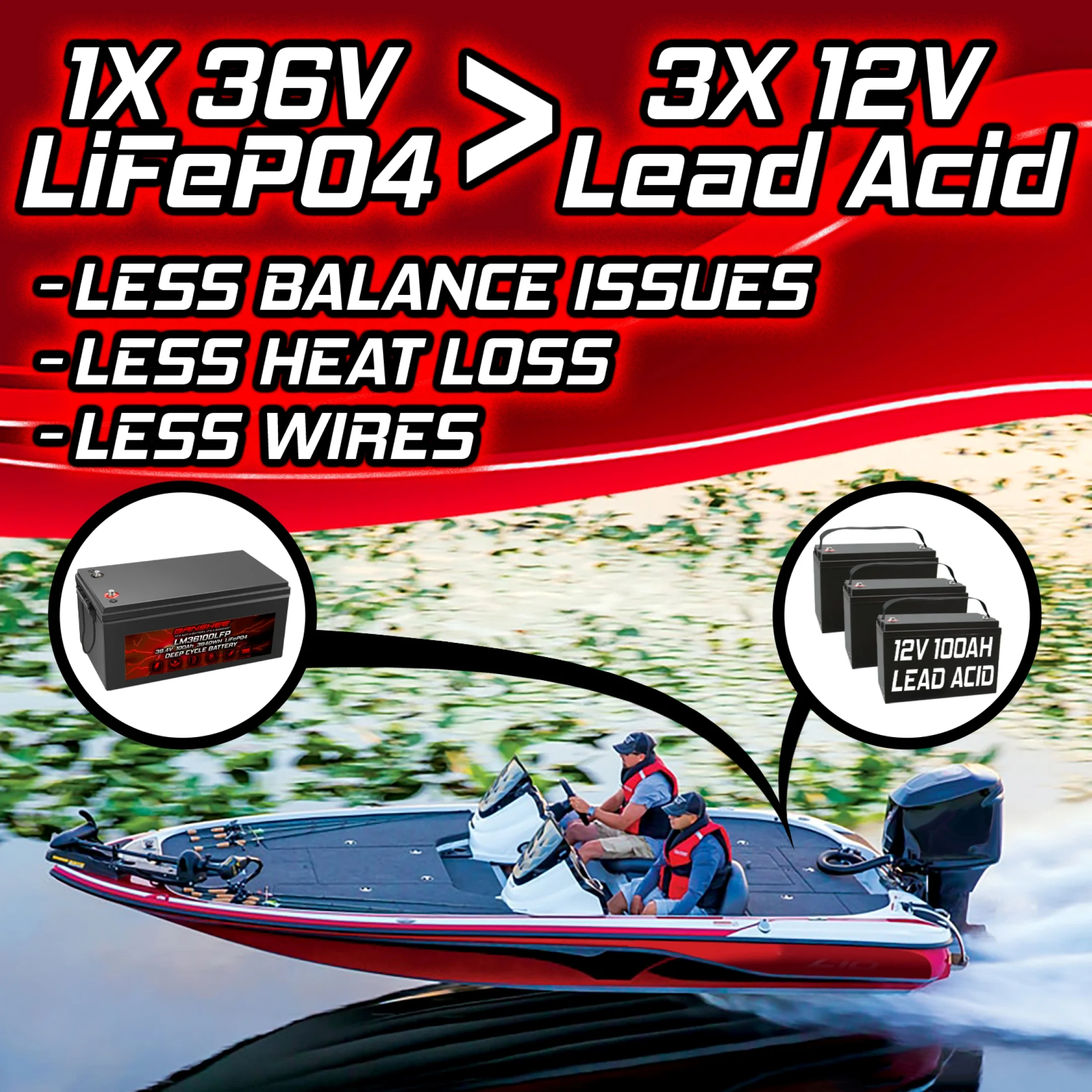 - 1 Banshee 36V LiFePO4 Battery -VS- 3x 12V Flooded Lead Acid Batteries