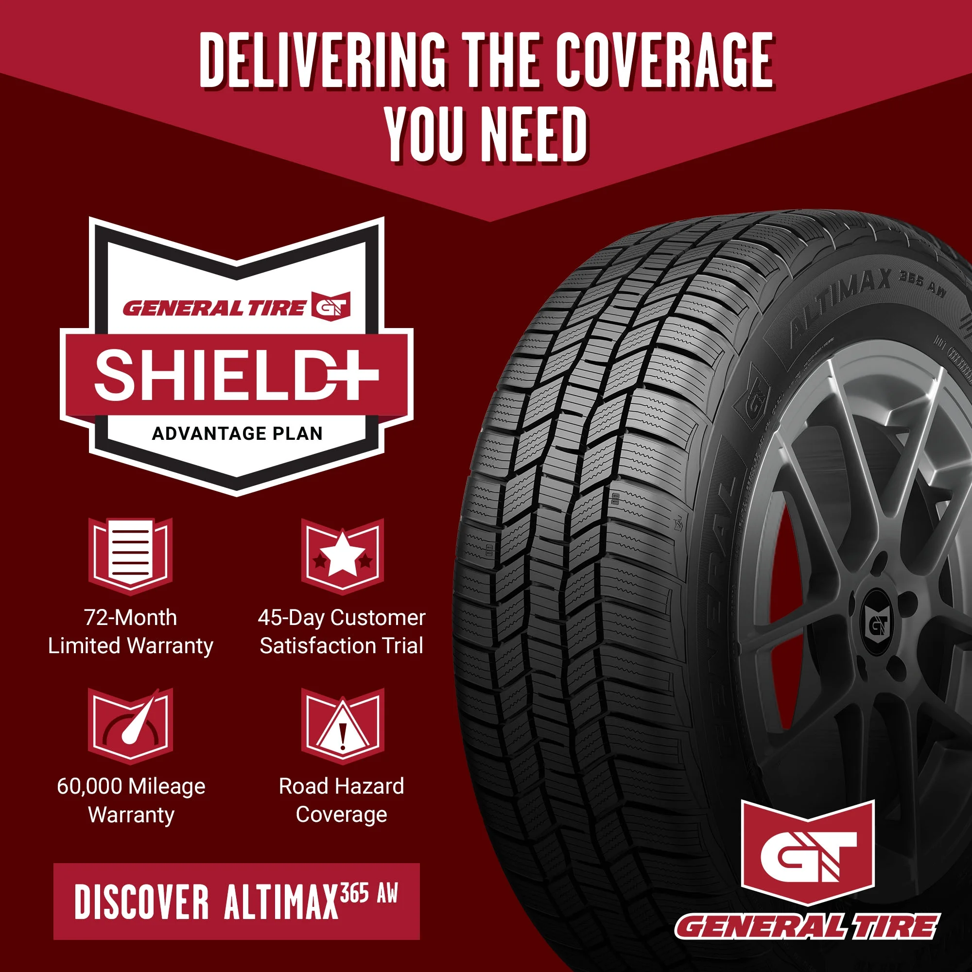The General AltiMAX365 AW is a versatile, all-weather tire for passenger cars and crossovers that is backed by up to 60,000-miles of limited manufacturer tread life coverage. The AltiMAX 365 AW features Visual Alignment Indicators (VAI), provides confident driving in all weather conditions, balanced performance on wet and dry roads, and optimal traction in deep snow.
