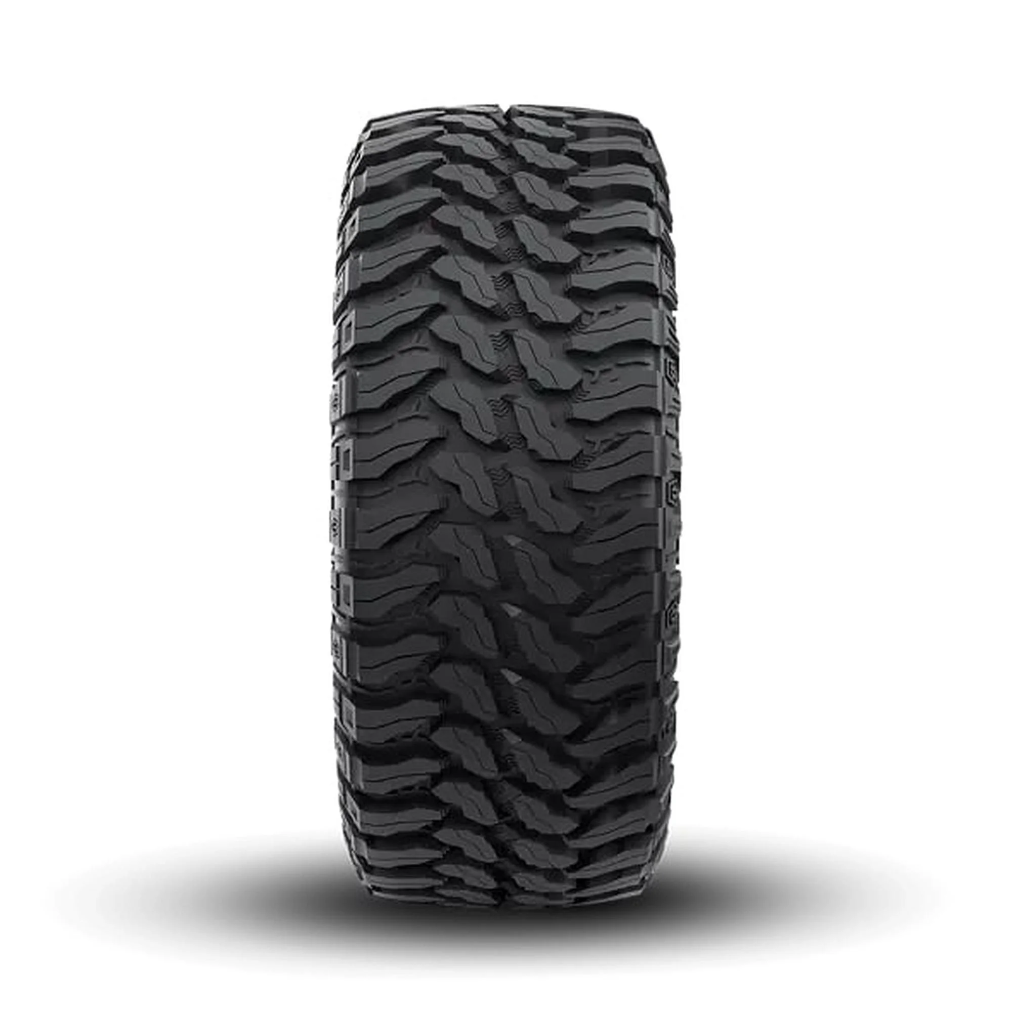 - Its aggressive tread pattern features large, chunky lugs and deep grooves, providing exceptional grip on various surfaces, including mud, dirt, rocks, and gravel