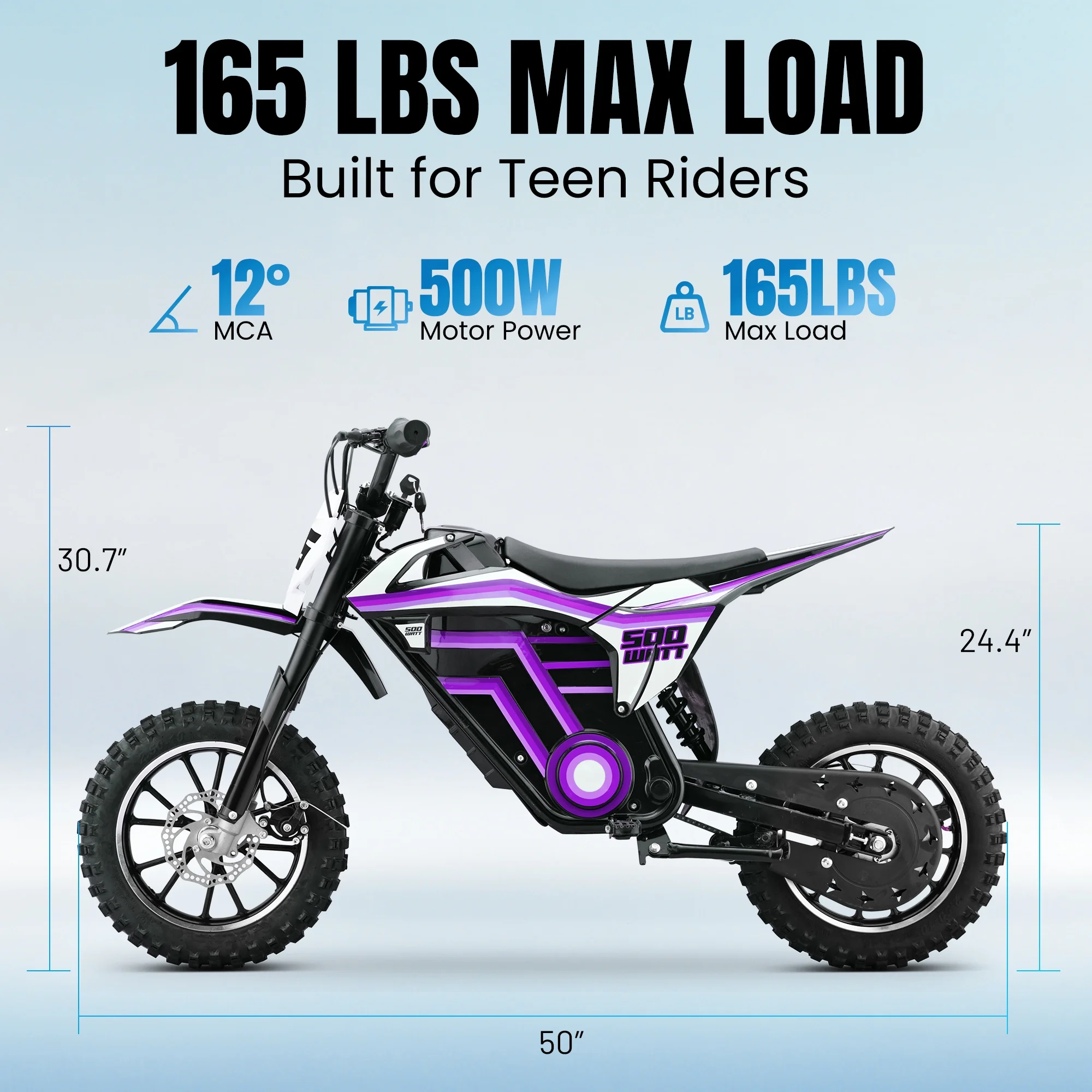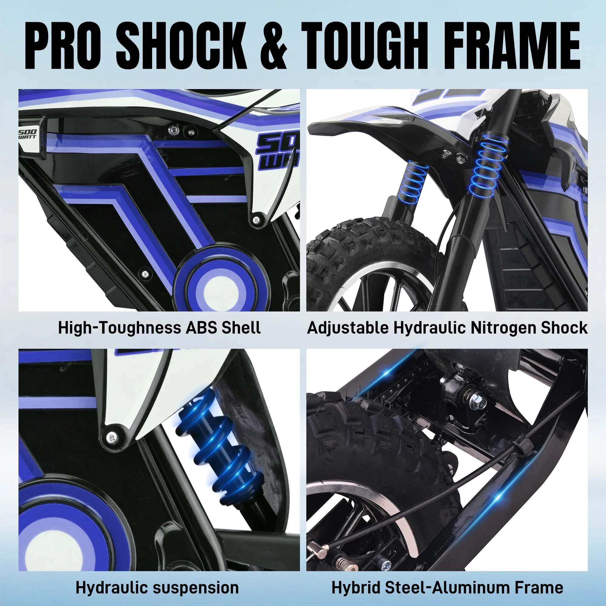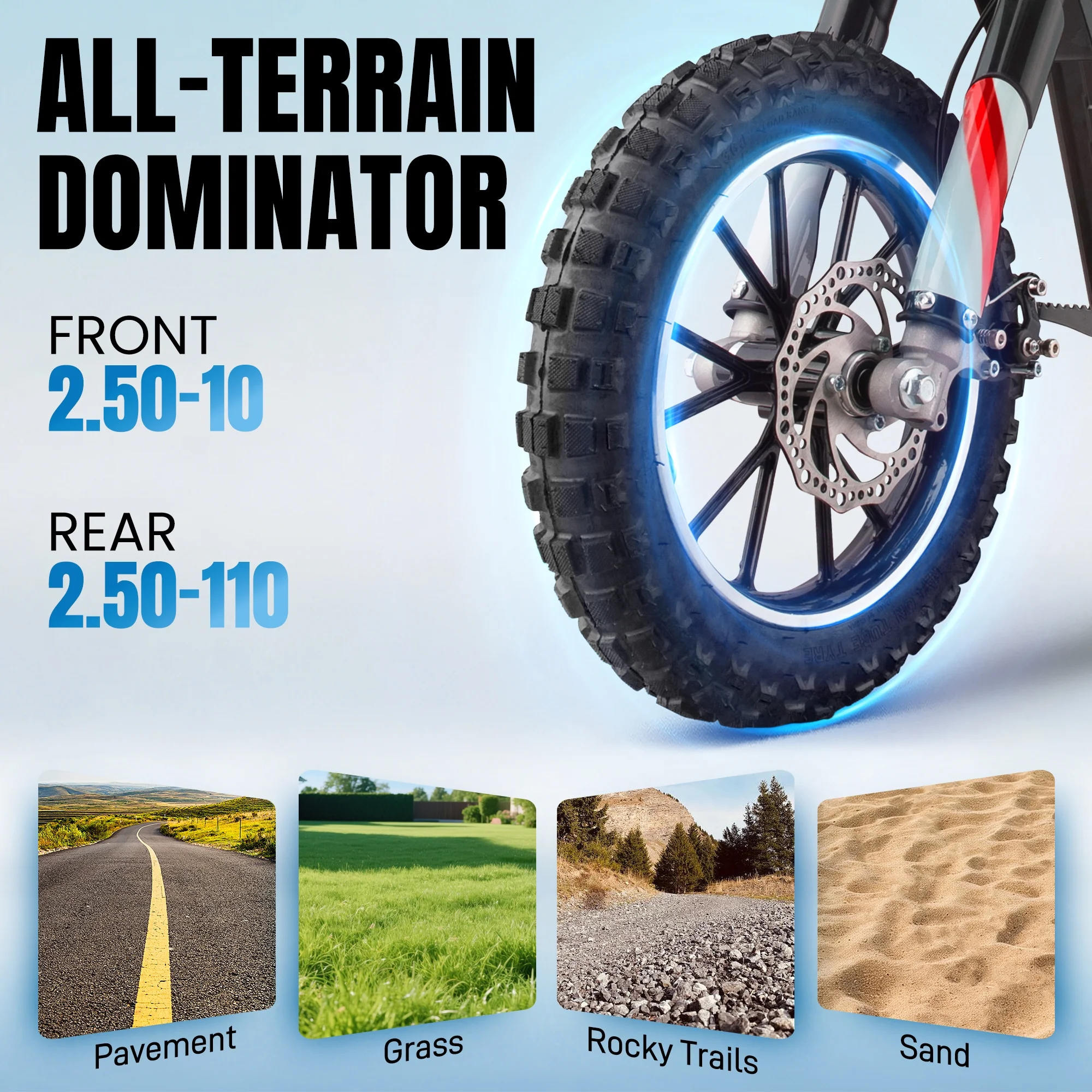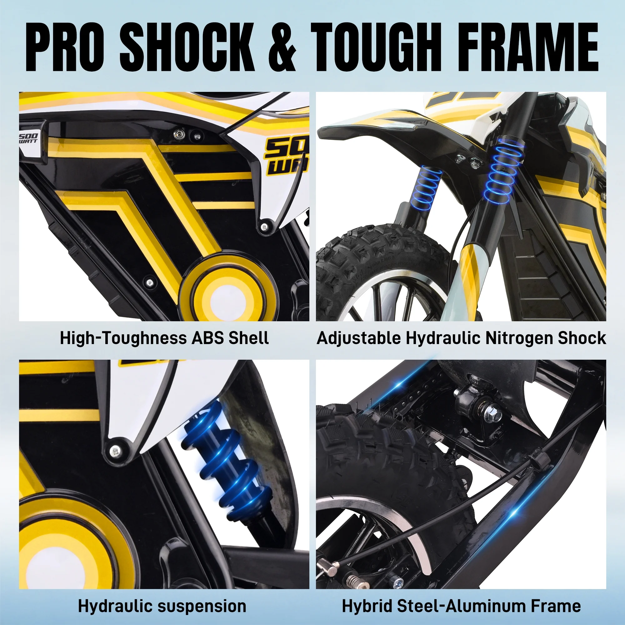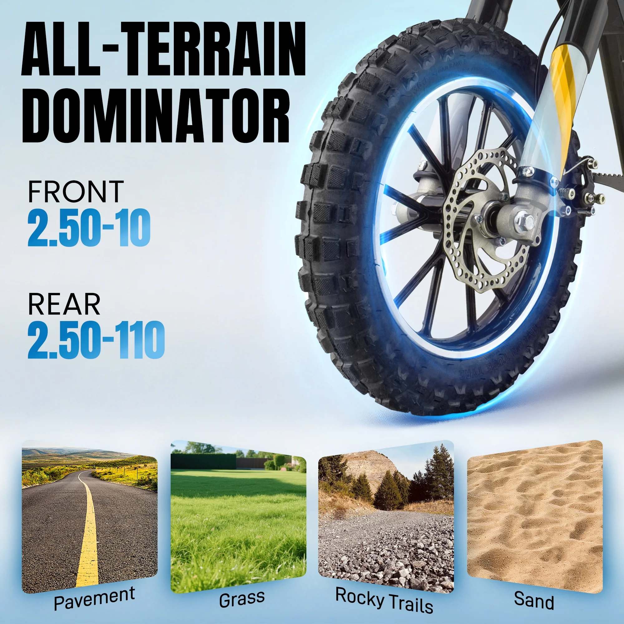 - Powered by a 36V 500W brushless motor that delivers up to 15 mph of off-road thrills